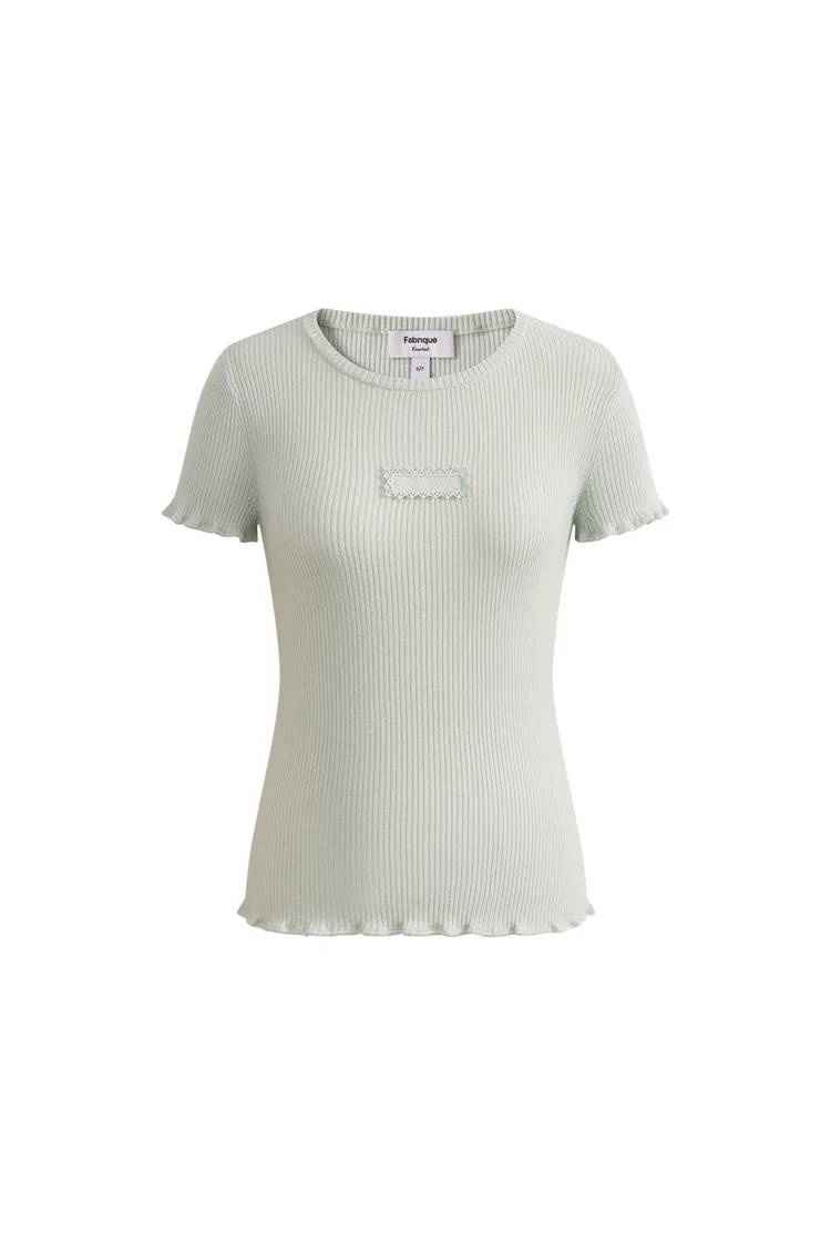 T-shirt Linnea Verde Menta con Volant e Scolpita in Maglia di Lana e Cotone