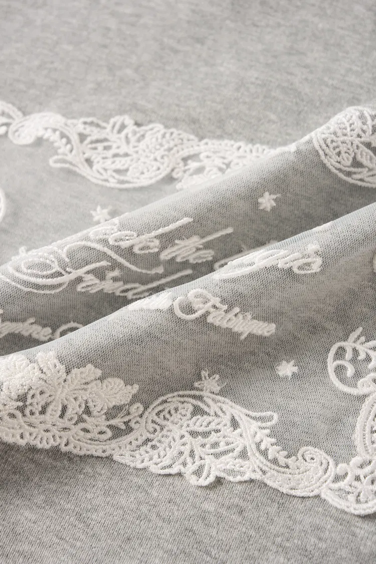 De slogan "Seek the Love" krijgt een frisse draai met handschrift van de ontwerper en op maat gemaakte geborduurde kantapplicaties. De ingewikkelde kantdetails geven de zachte katoenen basis een luxe uitstraling. Met zijn flatterende, slim-fit vorm is het een charmante keuze om gewone momenten speciaal te maken voor elke dag.