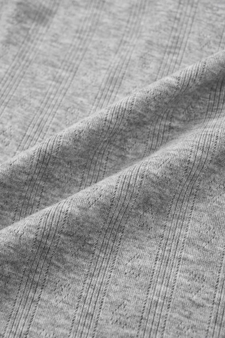 Rekbare brei met een gebalanceerd gewicht die ademend aanvoelt zonder te doorschijnend te zijn. De opengebreide textuur zorgt voor luchtcirculatie en dagelijks comfort.