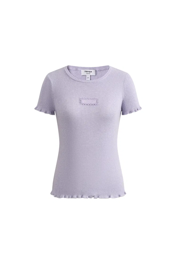 Deze lila gebreide top is gemaakt van een ademende katoen-wolmix met natuurlijke stretch. Golvende kruldetails en een op maat gemaakt kanten logo geven het een speelse, driedimensionale afwerking.