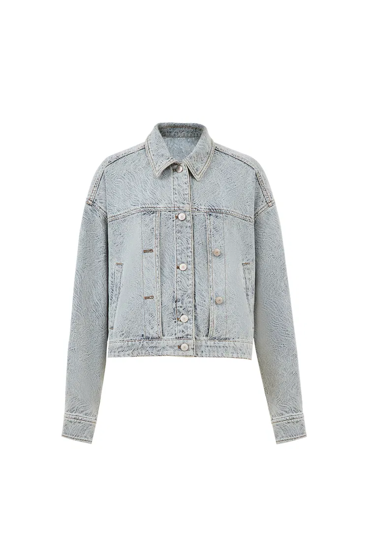 Ainsley Textured Cropped Jacket in Washed Jacquard Denim