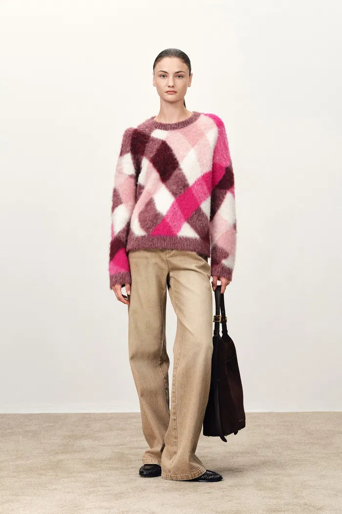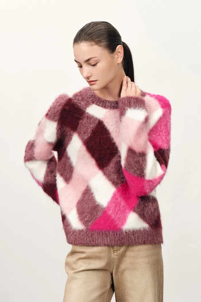 Alice Irregular Plaid Sweater in Wool Alpaca Blend