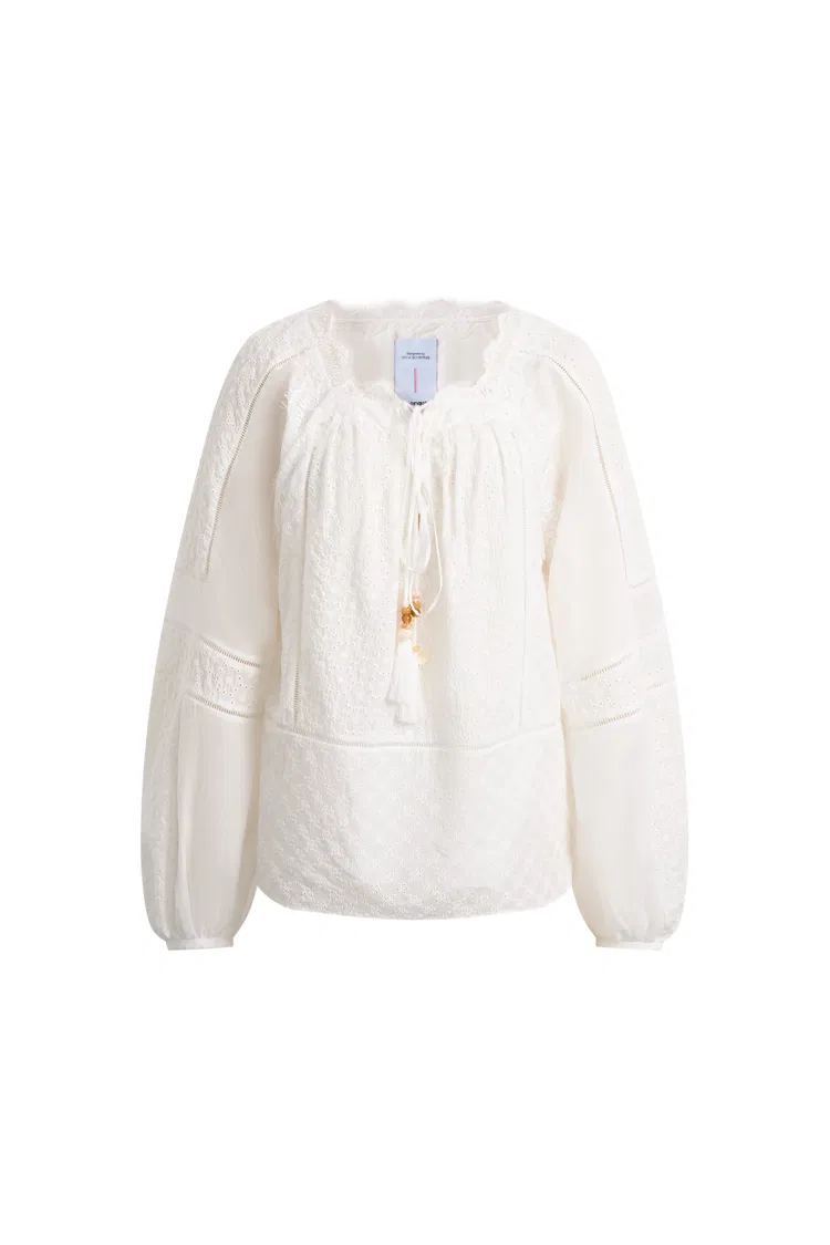 Amaya Puff-Sleeve Long Sleeve Top in Lace