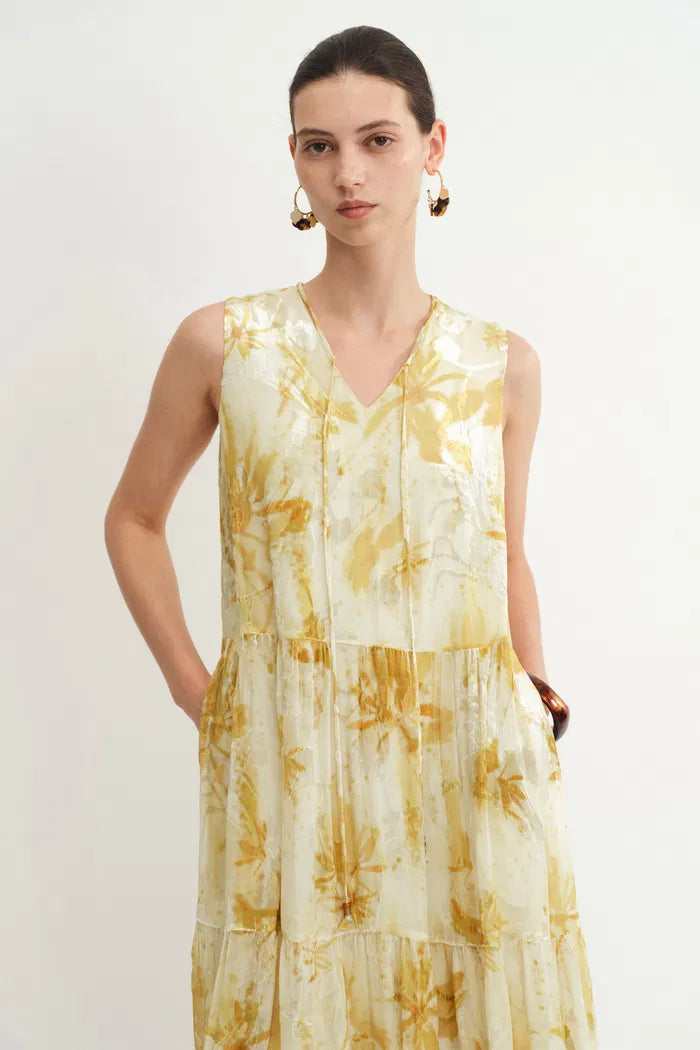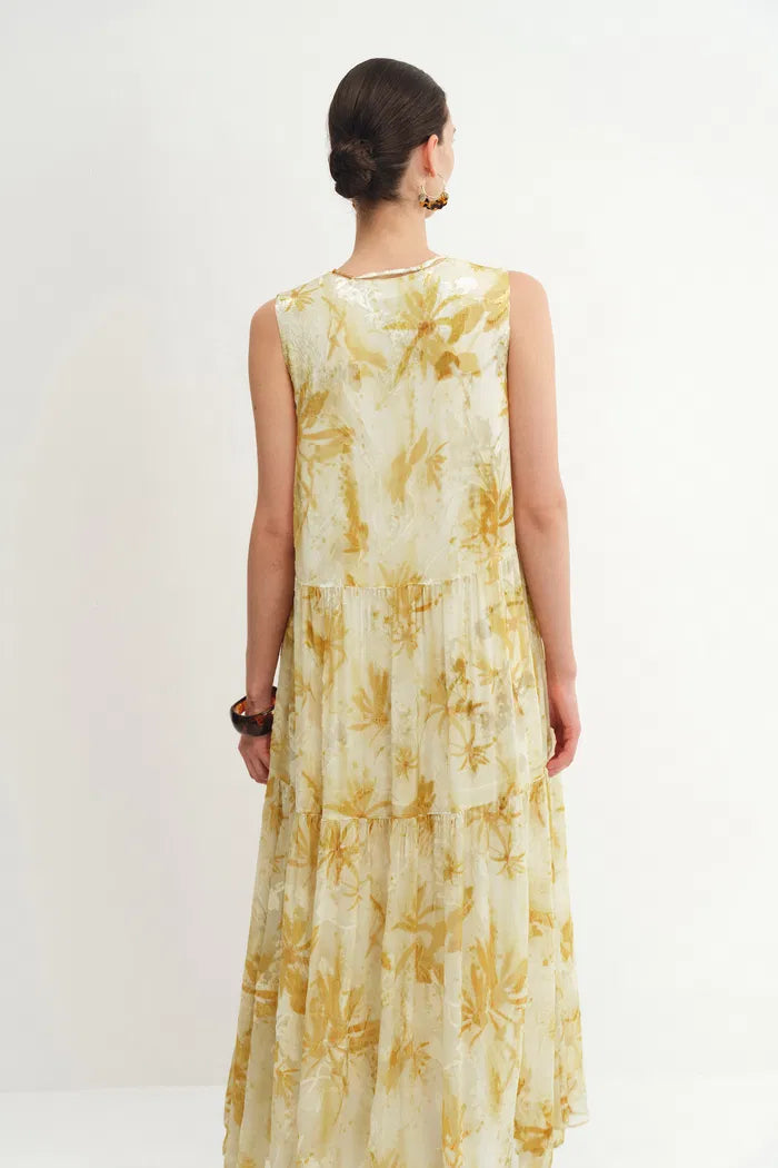 Amelia Sleeveless Maxi Dress in Burnout Silk Georgette