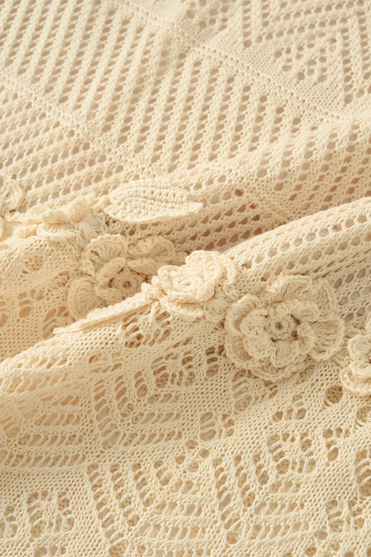 Angelica Floral Openwork Straight Maxi Skirt in Linen Knit