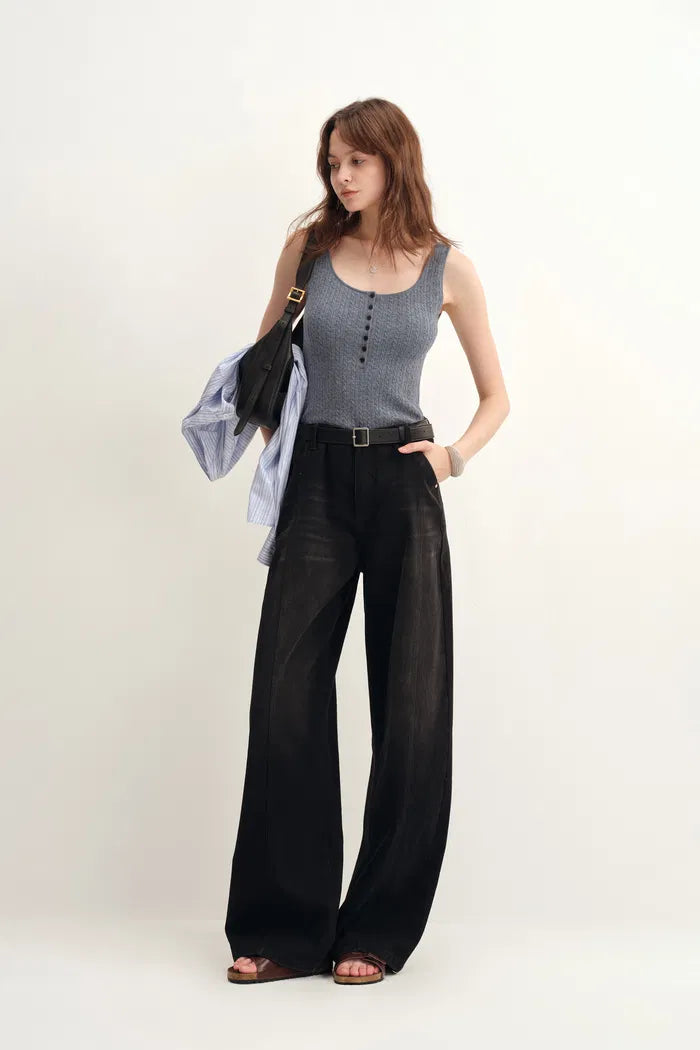 Anna Grey Henley Tank Top in Merino Wool with Stretch