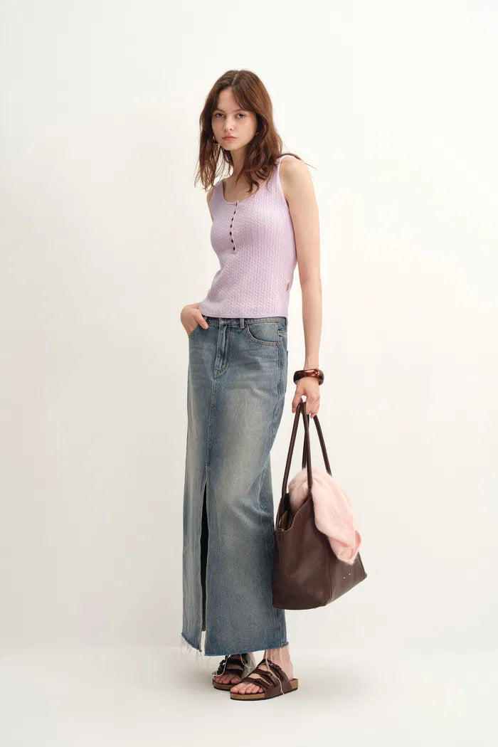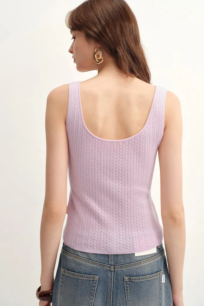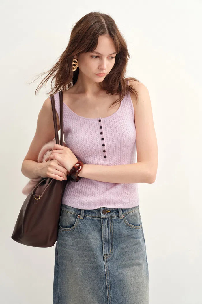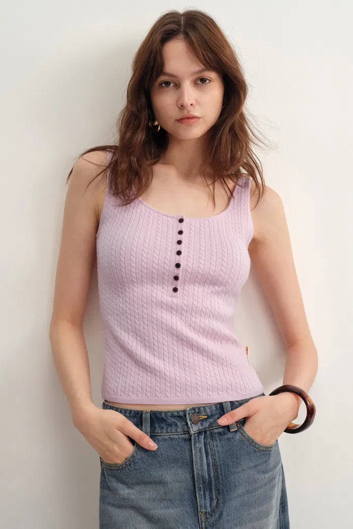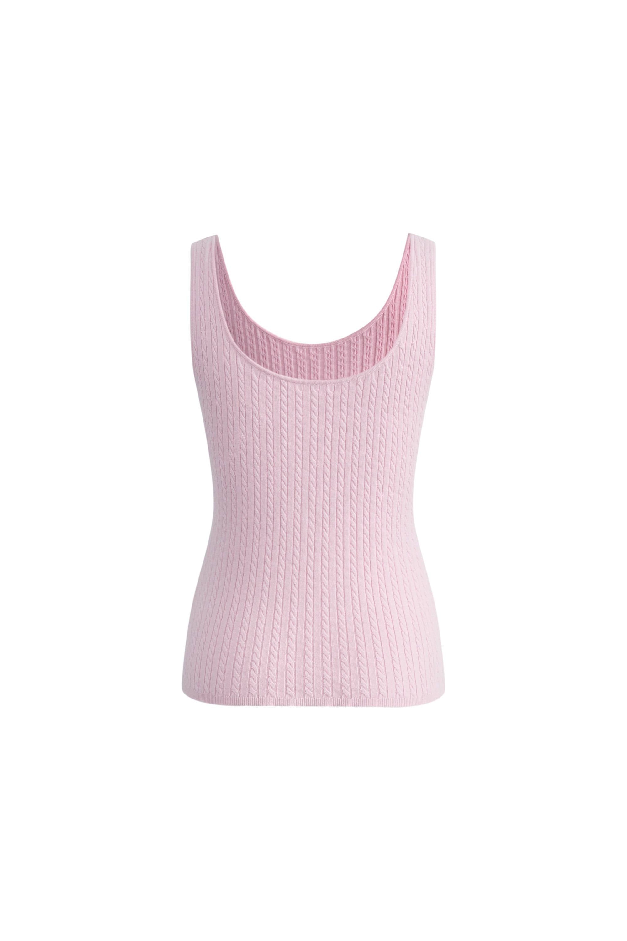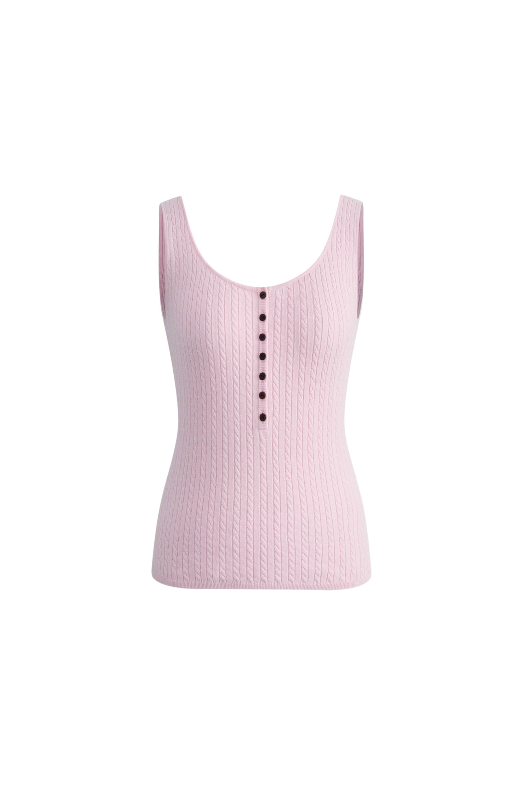 Anna Pink Henley Tank Top in Merino Wool with Stretch