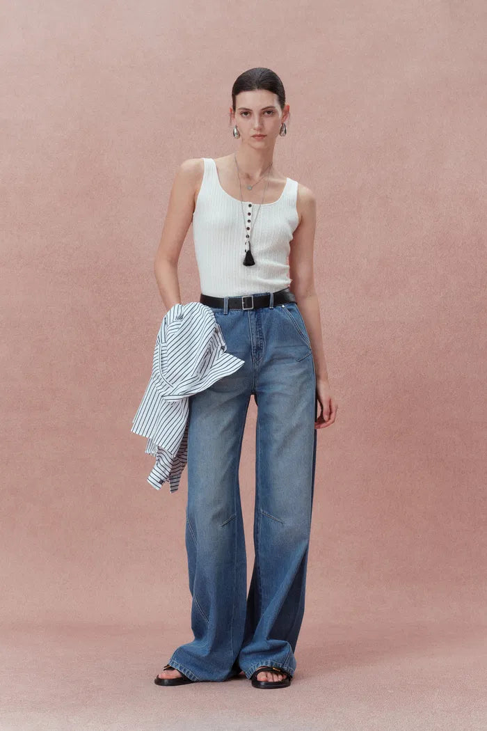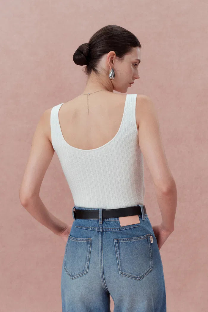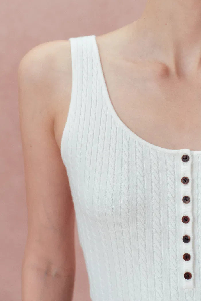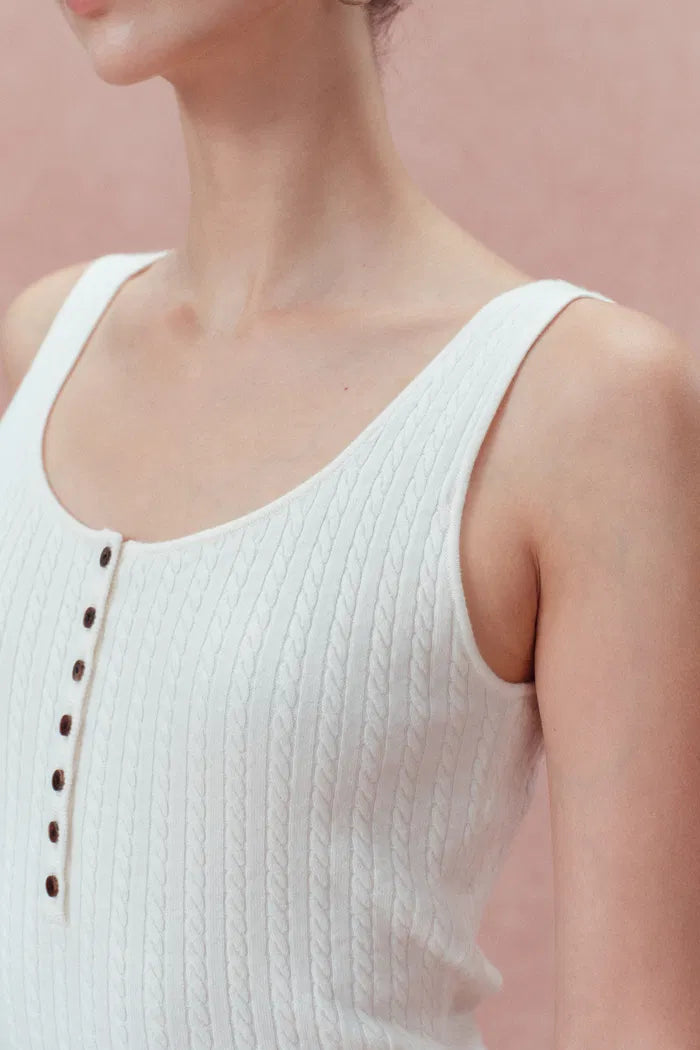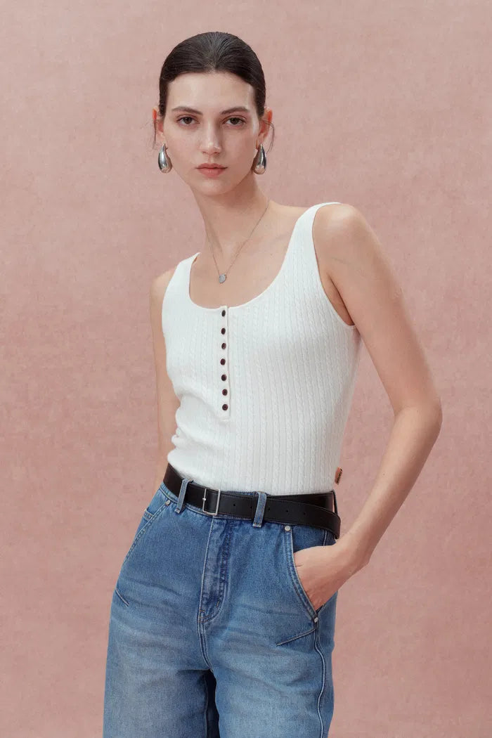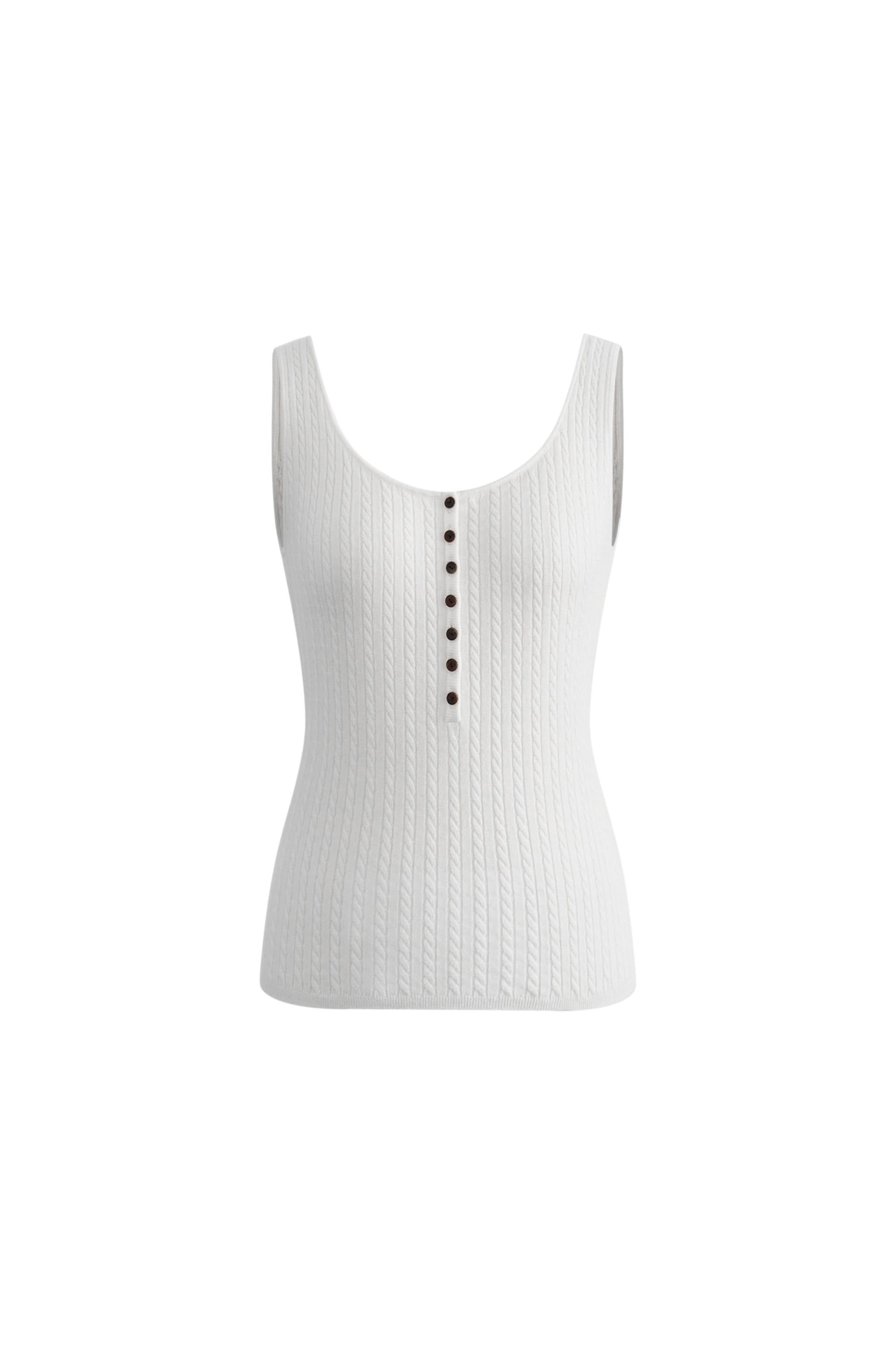 Anna White Henley Tank Top in Merino Wool with Stretch