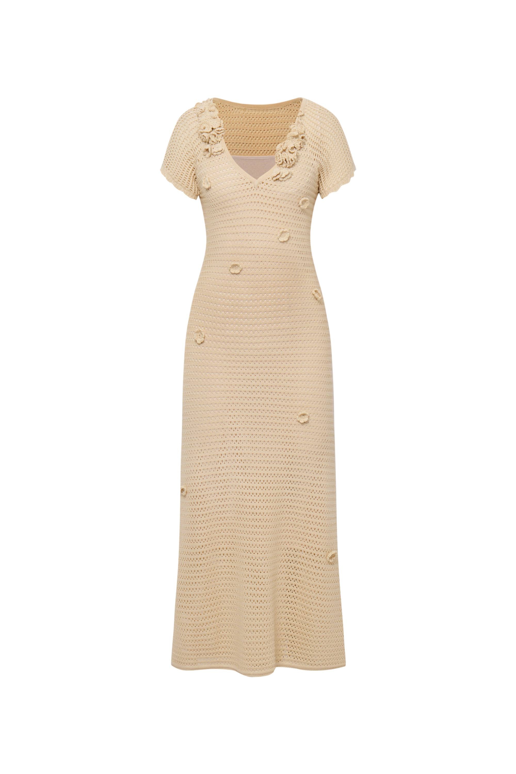 Arali Hand Crocheted Floral Applique Dress in Lyocell Cashmere