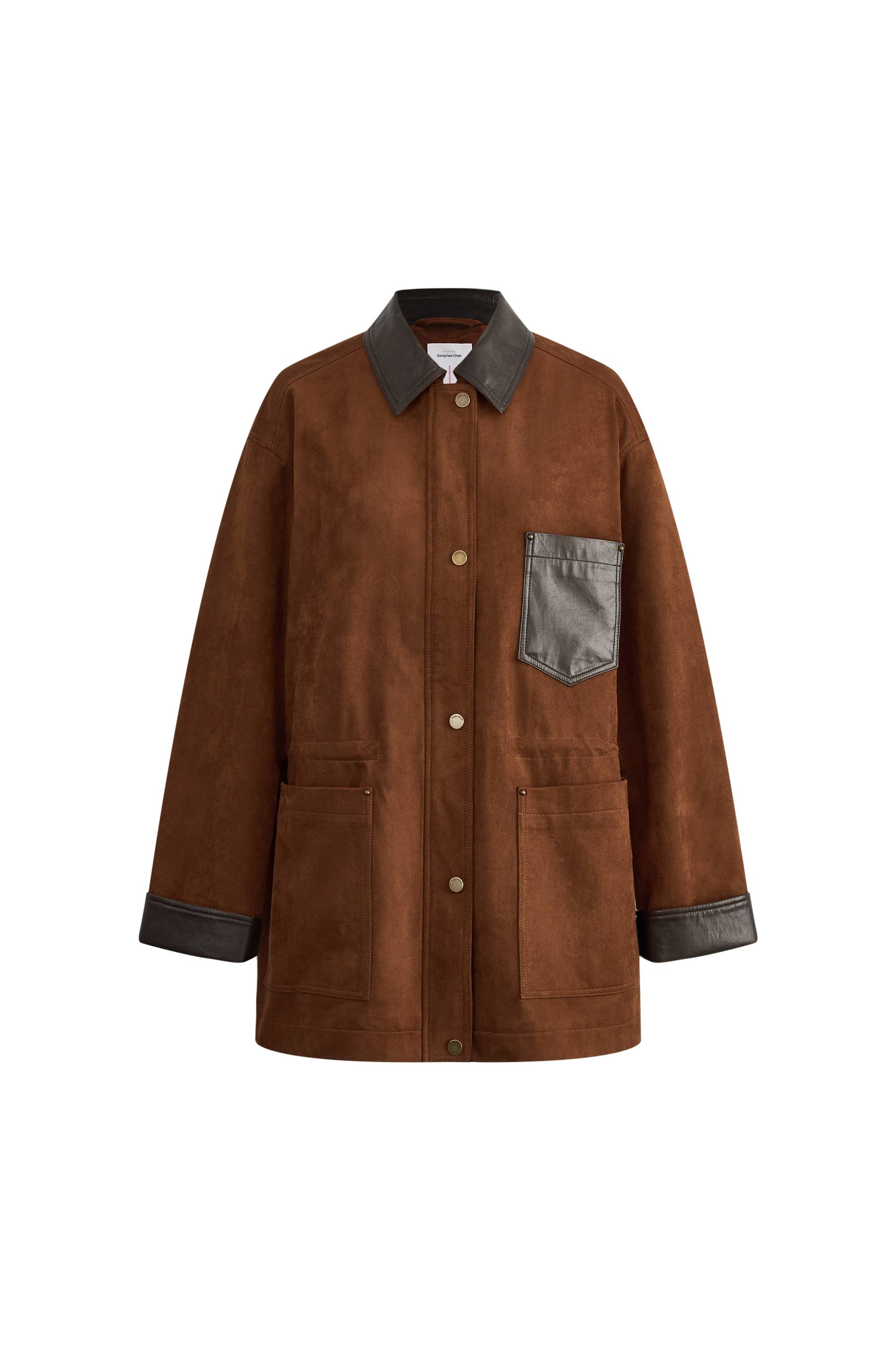 Faux suede meets supple leather in this loose-fitting barn jacket that moves with you. The adjustable waist cord lets you play with proportions, while oversized flap pockets keep the practical details you actually use.