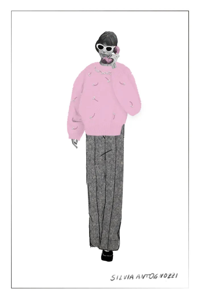 Silvia draws inspiration from Ettore Sottsass, the revolutionary architect and designer behind Memphis Group's iconic 1980s aesthetic. Known for his ironic touch, innovative materials, and bold colors against minimal shapes, Sottsass's influence comes through in every piece of this collection. Silvia translates his signature style into wearable designs, where structural basics meet vibrant patterns.