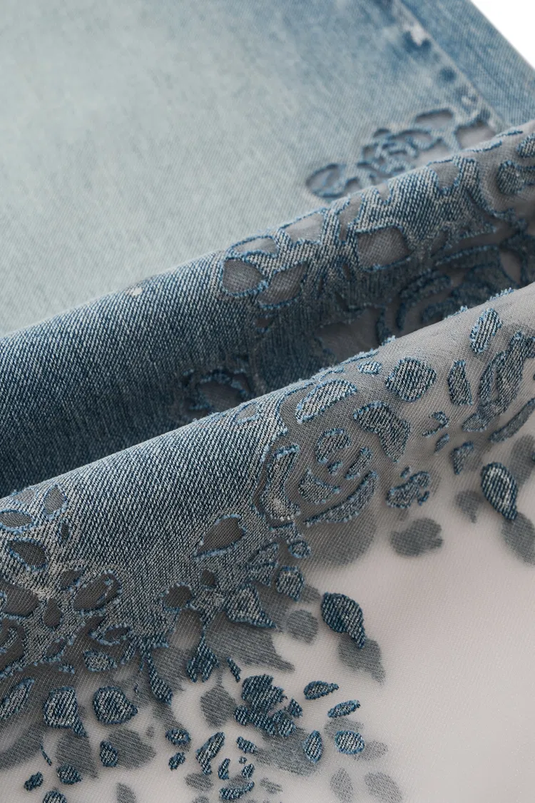 Ariel Transparent Burnout Straight Cropped Jeans in Composite Burnout Denim