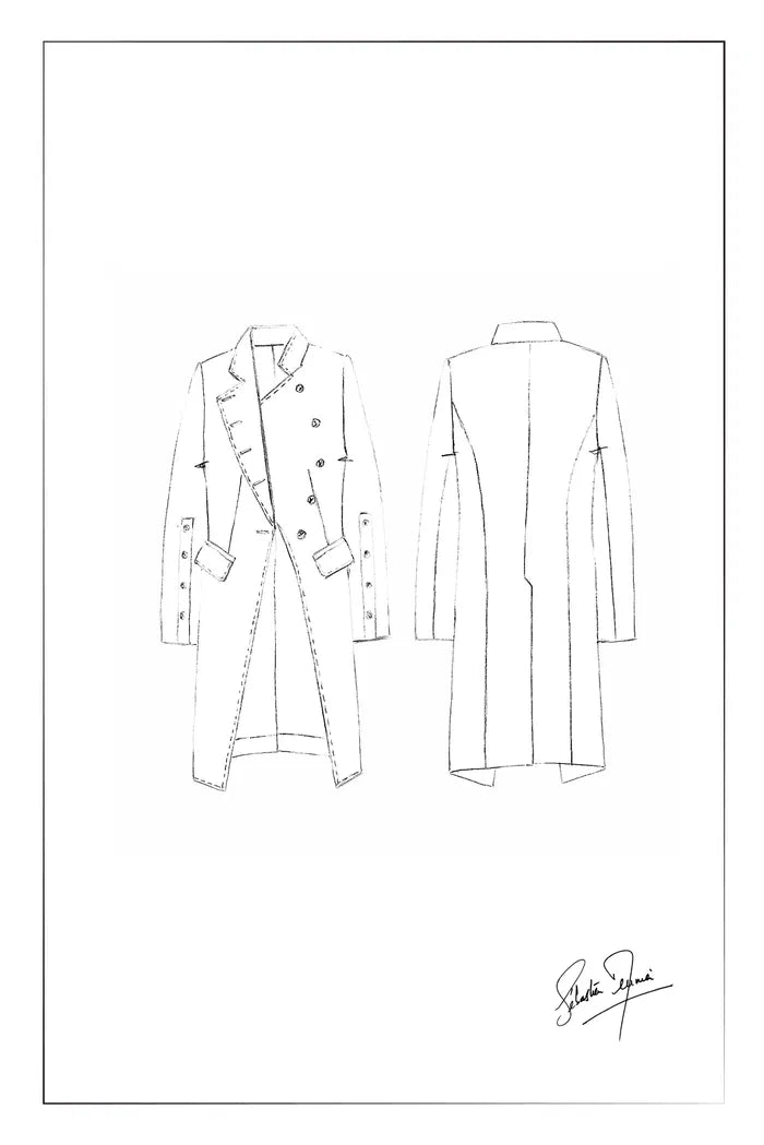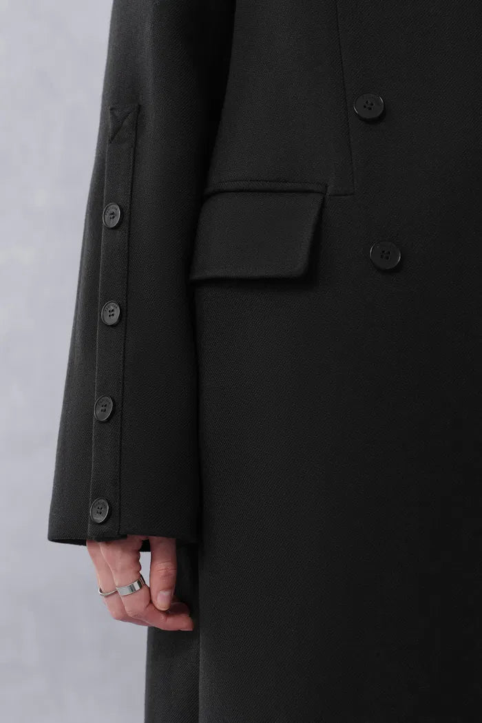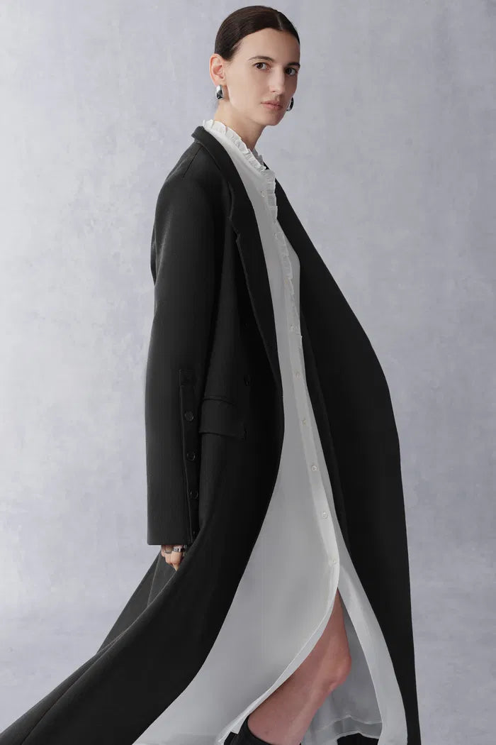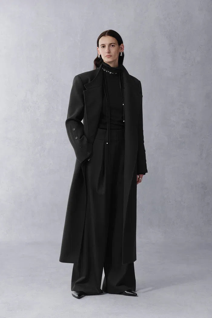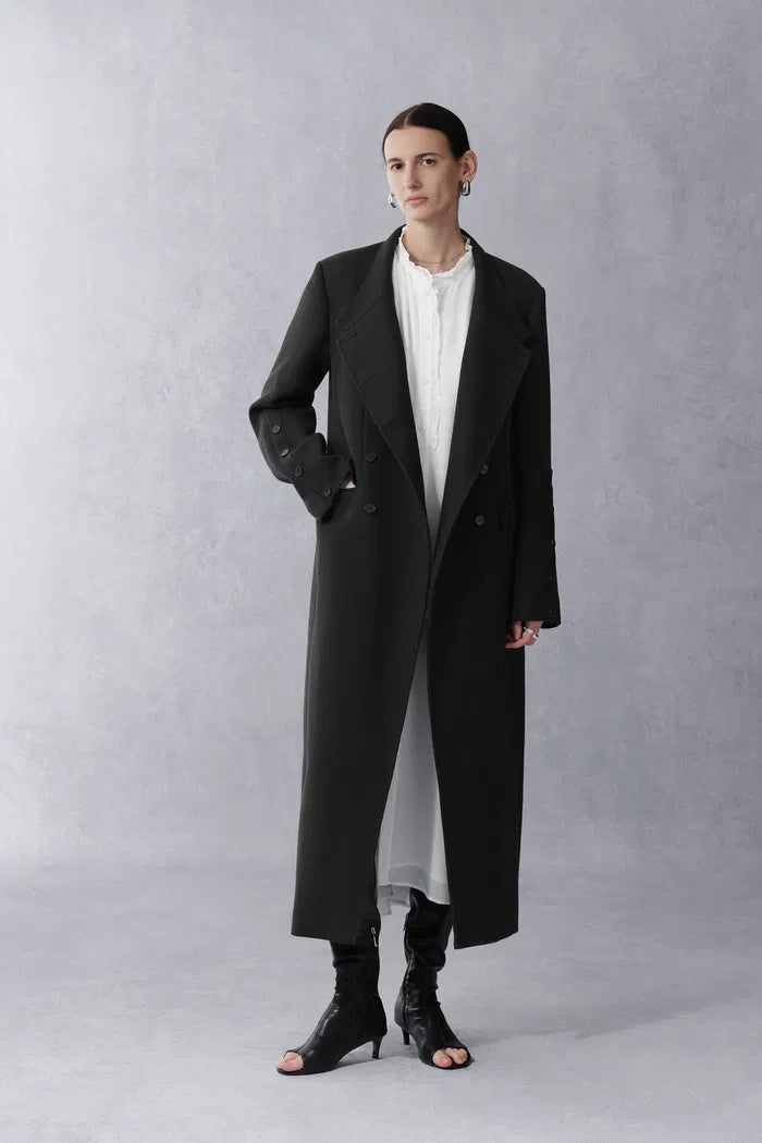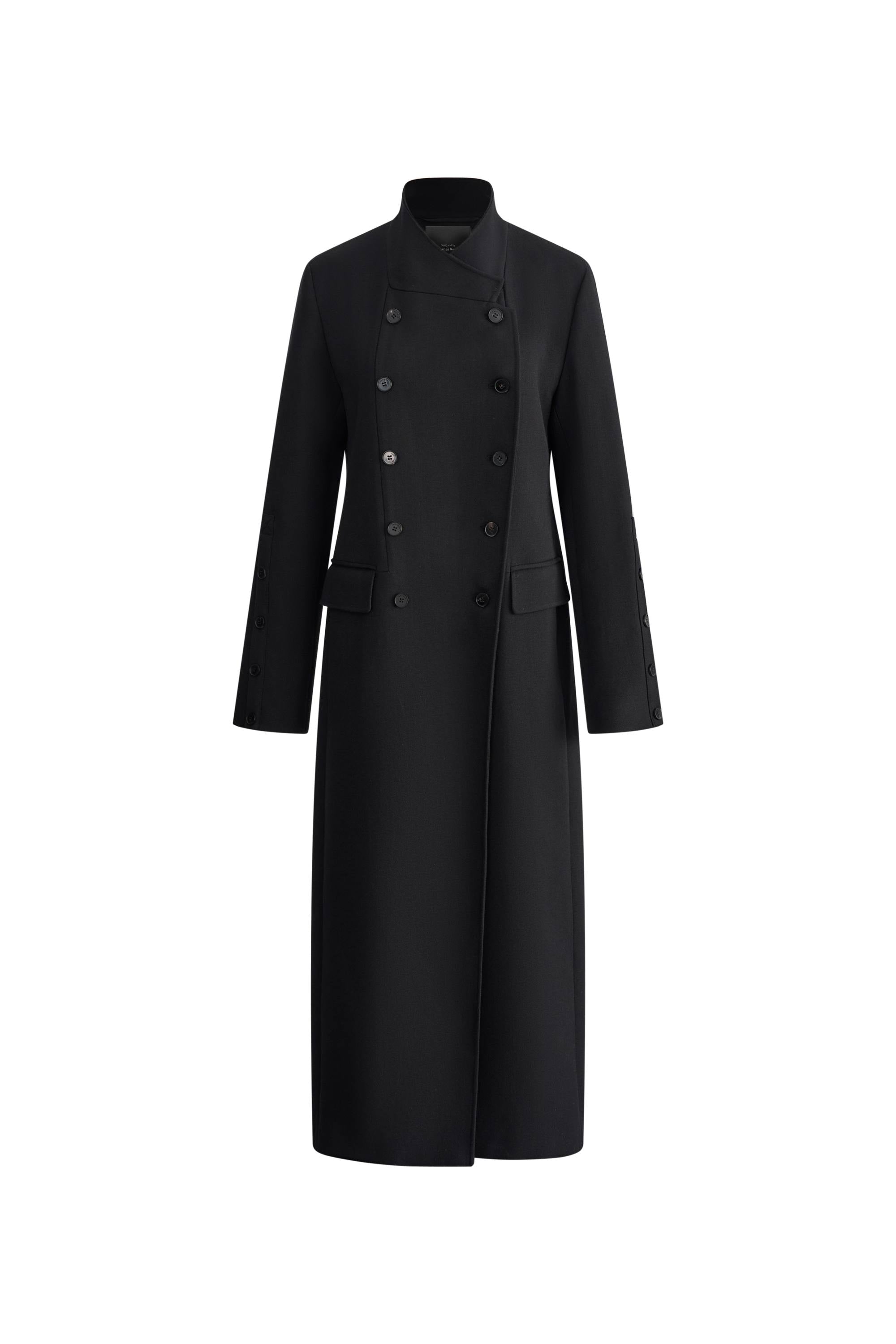 Artemise Long Wool Coat in Structured Merino Wool Twill