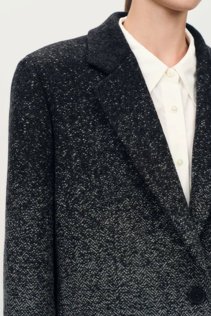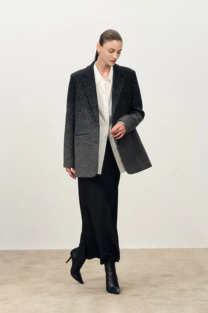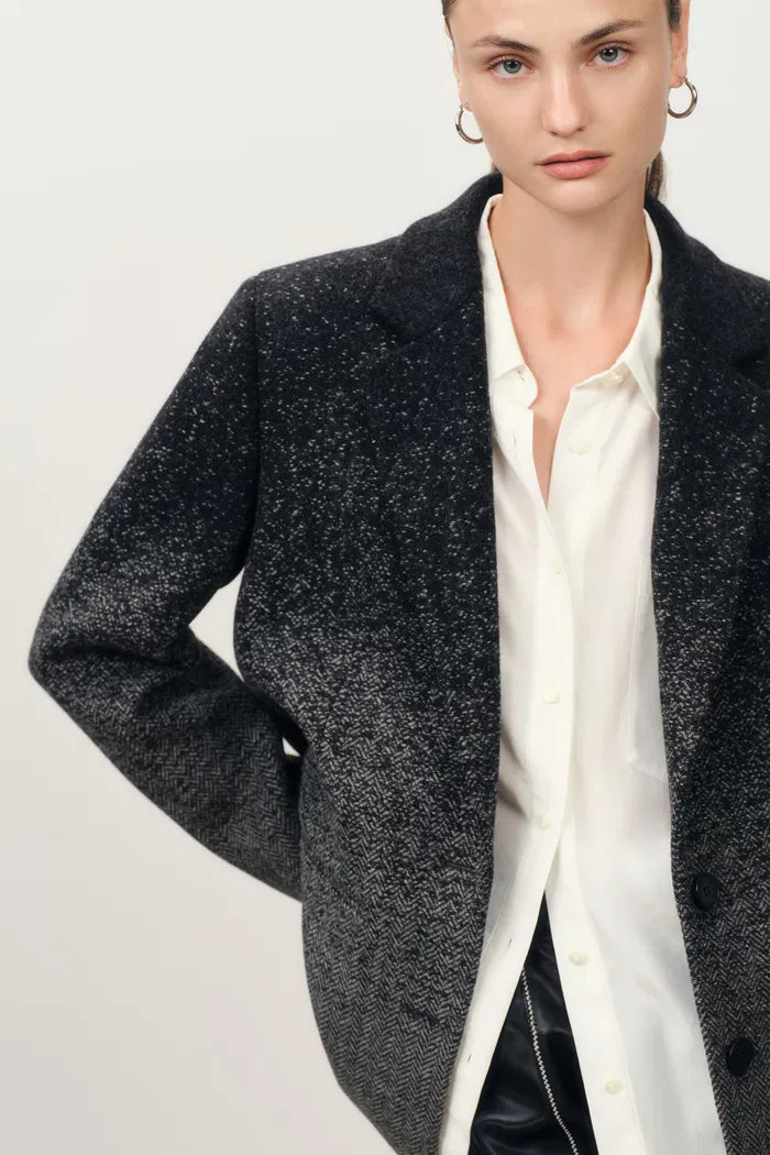 Aurora Gradient Herringbone Long Blazer in Merino Wool