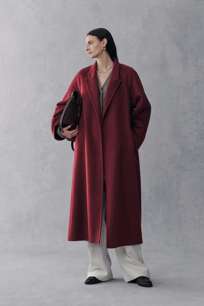 Ava Peaked Lapel Coat in Merino Cashmere Blend