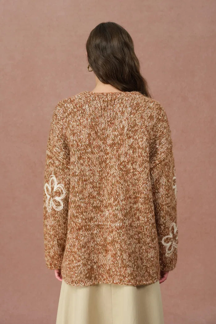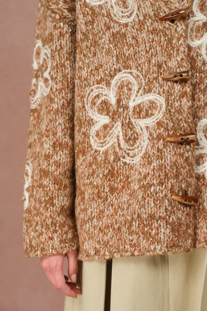 Ayanna Floral Embroidered Cardigan in Merino Wool Multi-Yarn