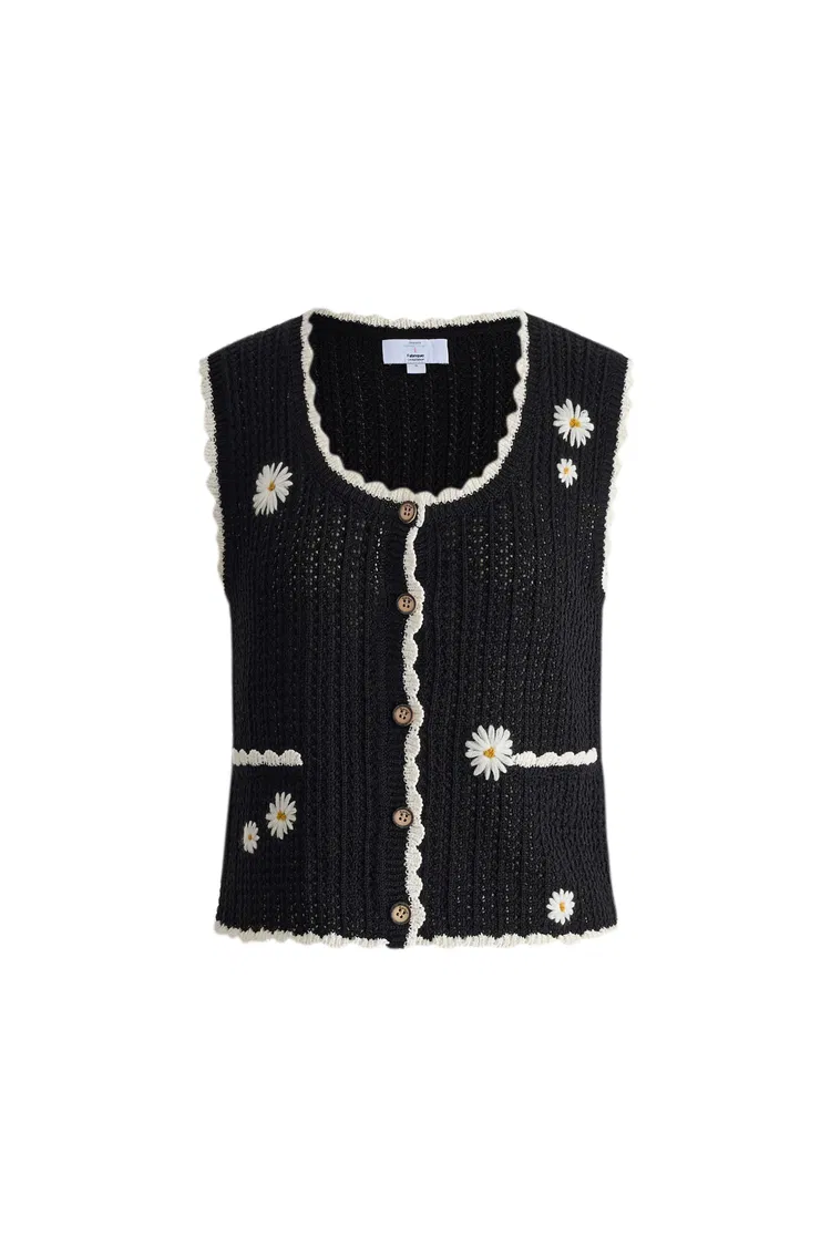 Azores Crochet Daisy Knit Top in Cotton-Linen Blend