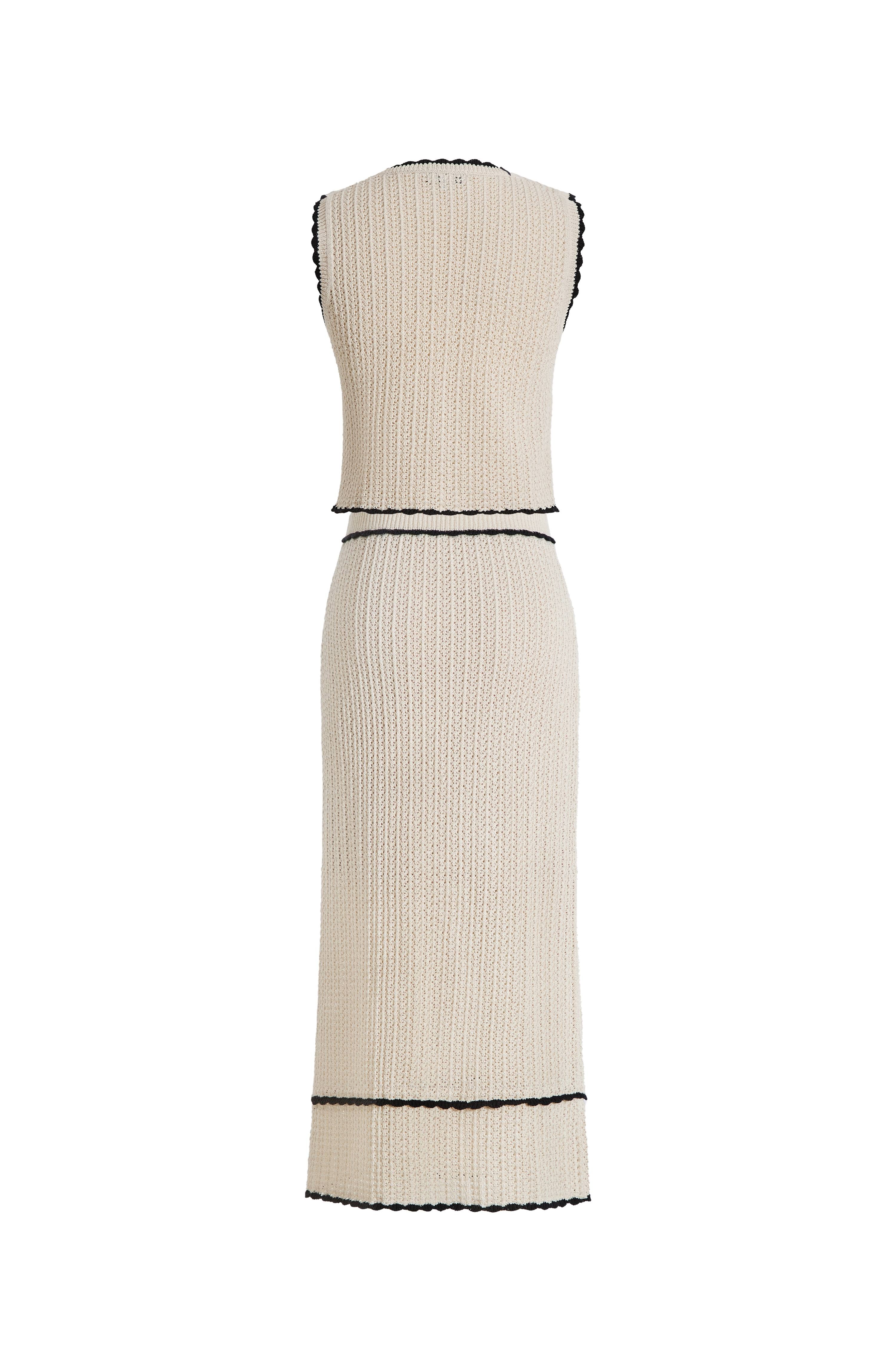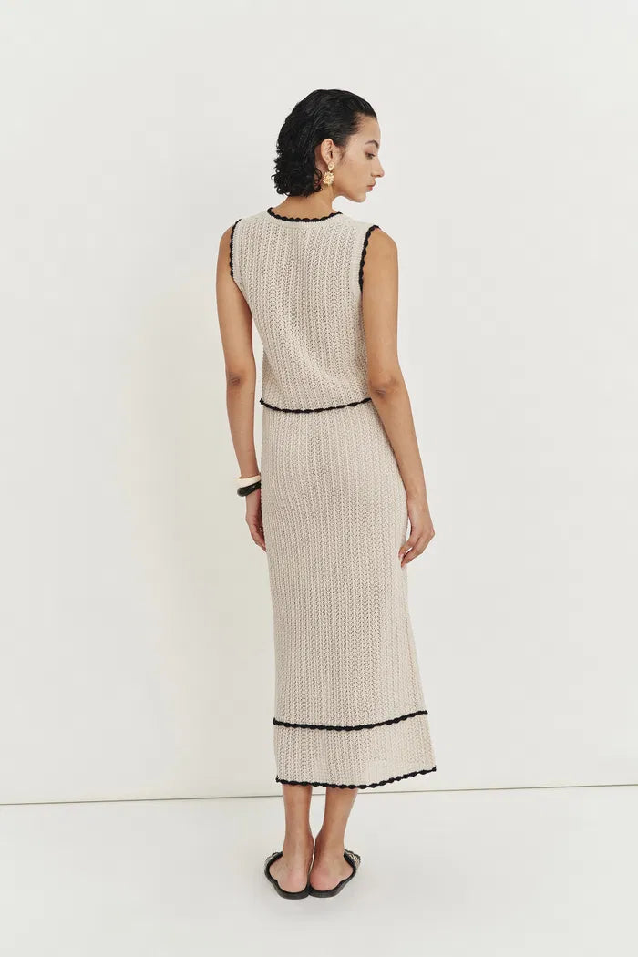 Azores Handcrafted Daisy Crochet Sleeveless Top and Palma Midi Skirt Set in Cotton-Linen Blend