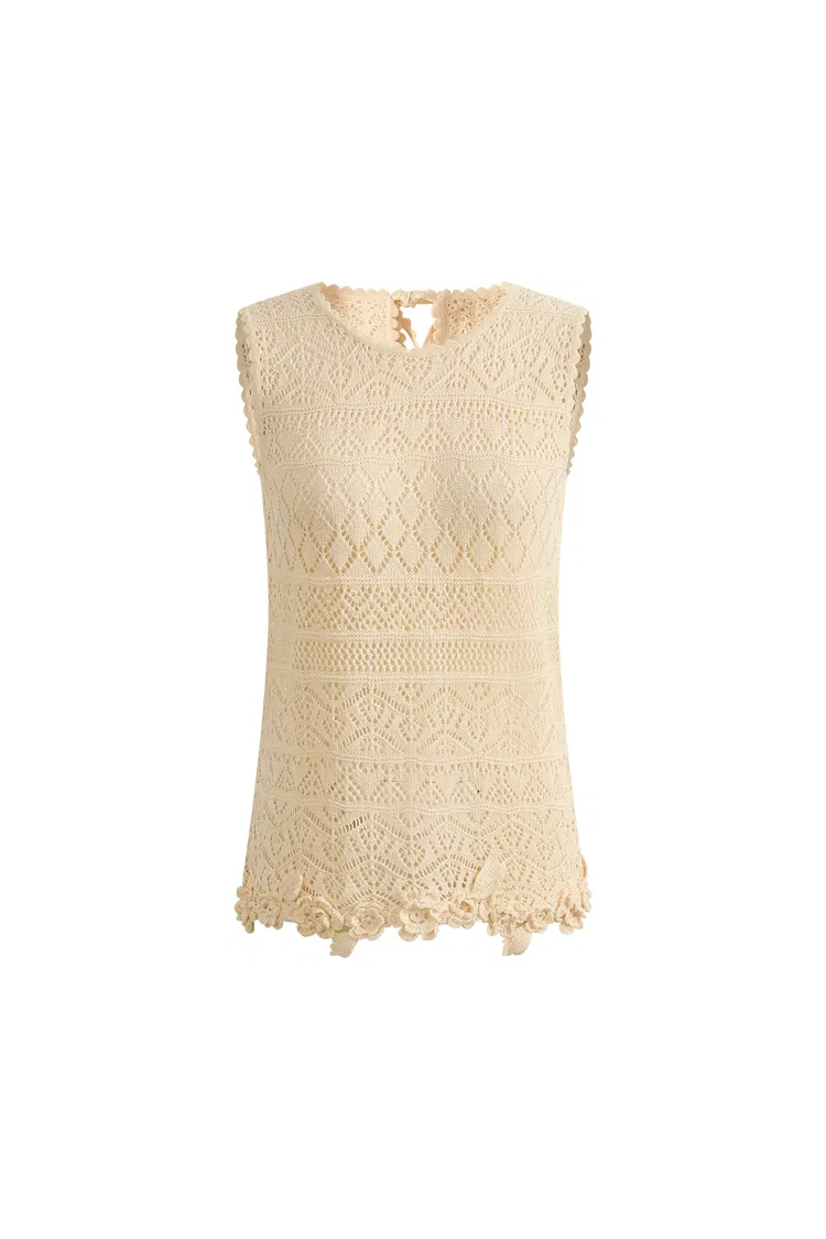 Beatrice 3D Floral Openwork Top in Linen Knit