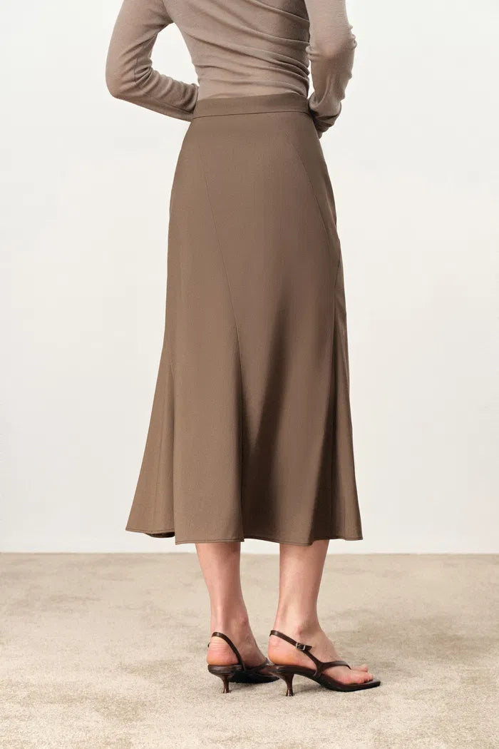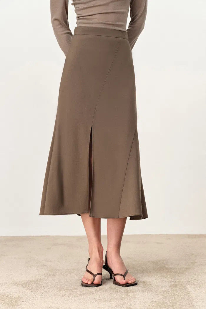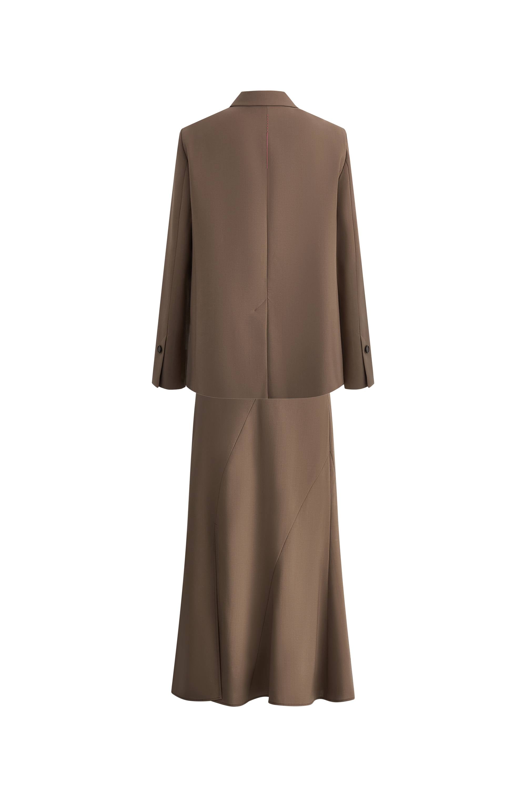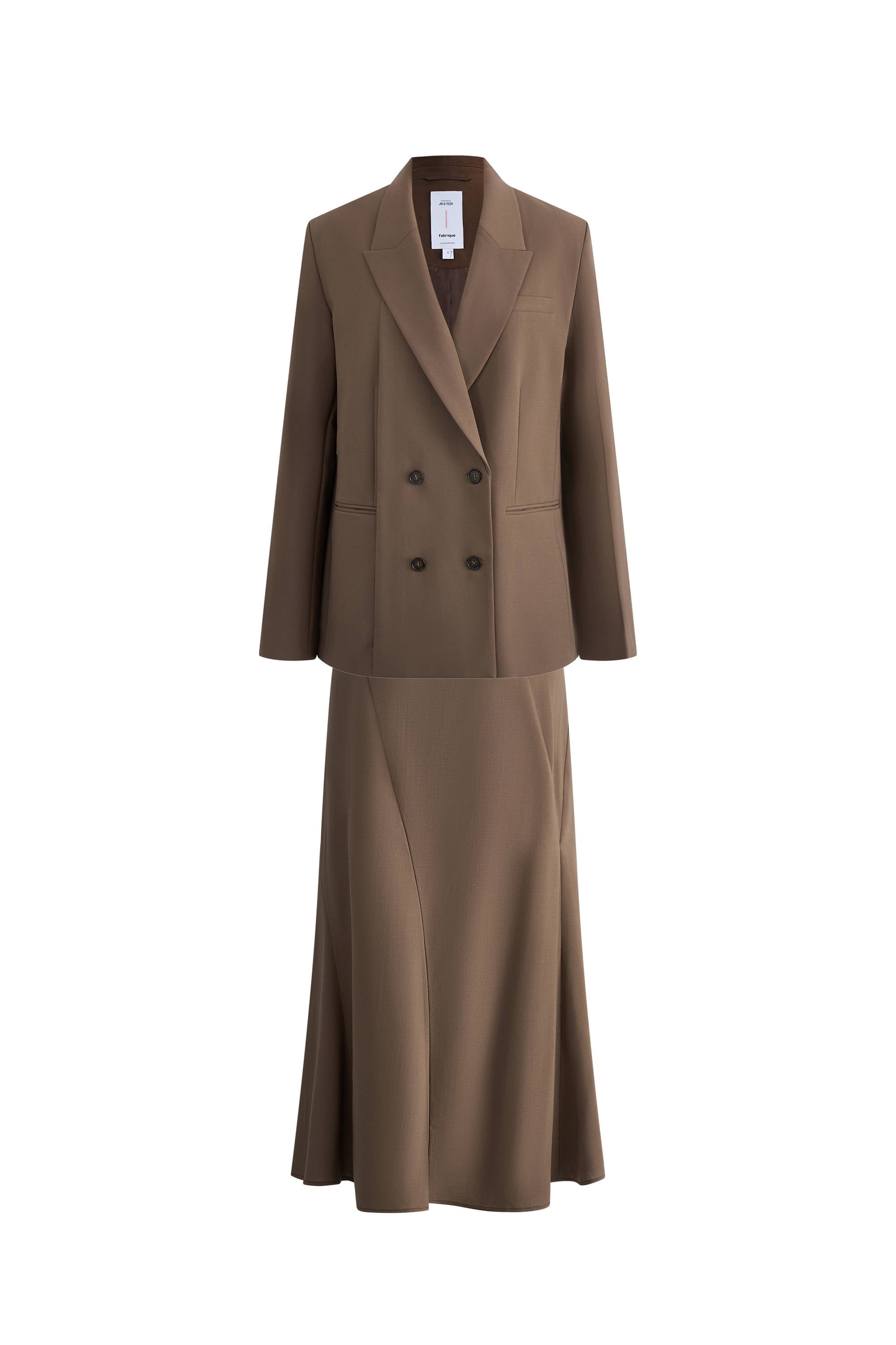 Bonnie Peak Lapel Suit Blazer and Skirt Matching Set in Fine Wool Blend