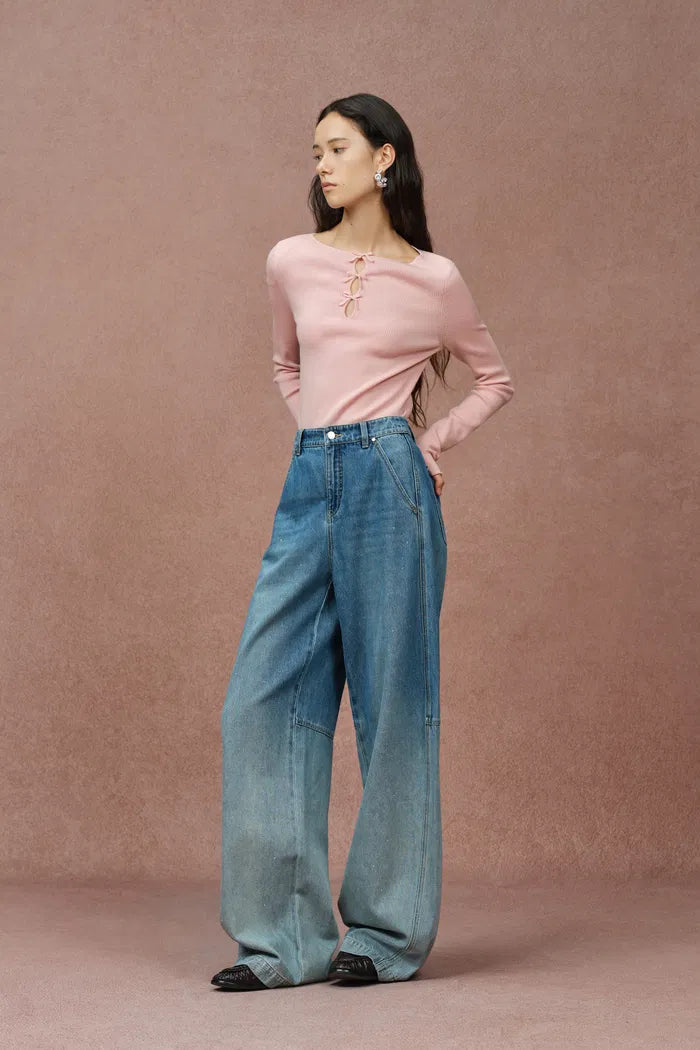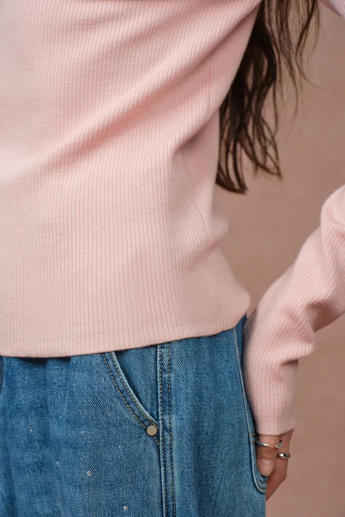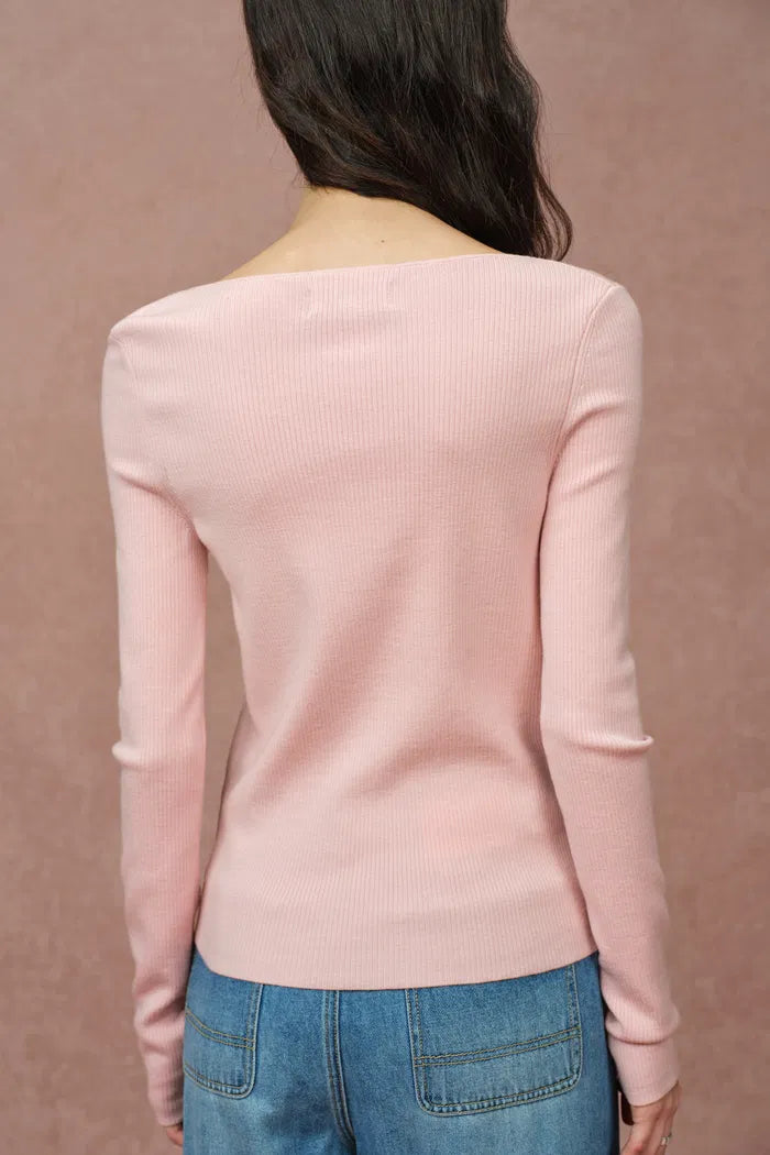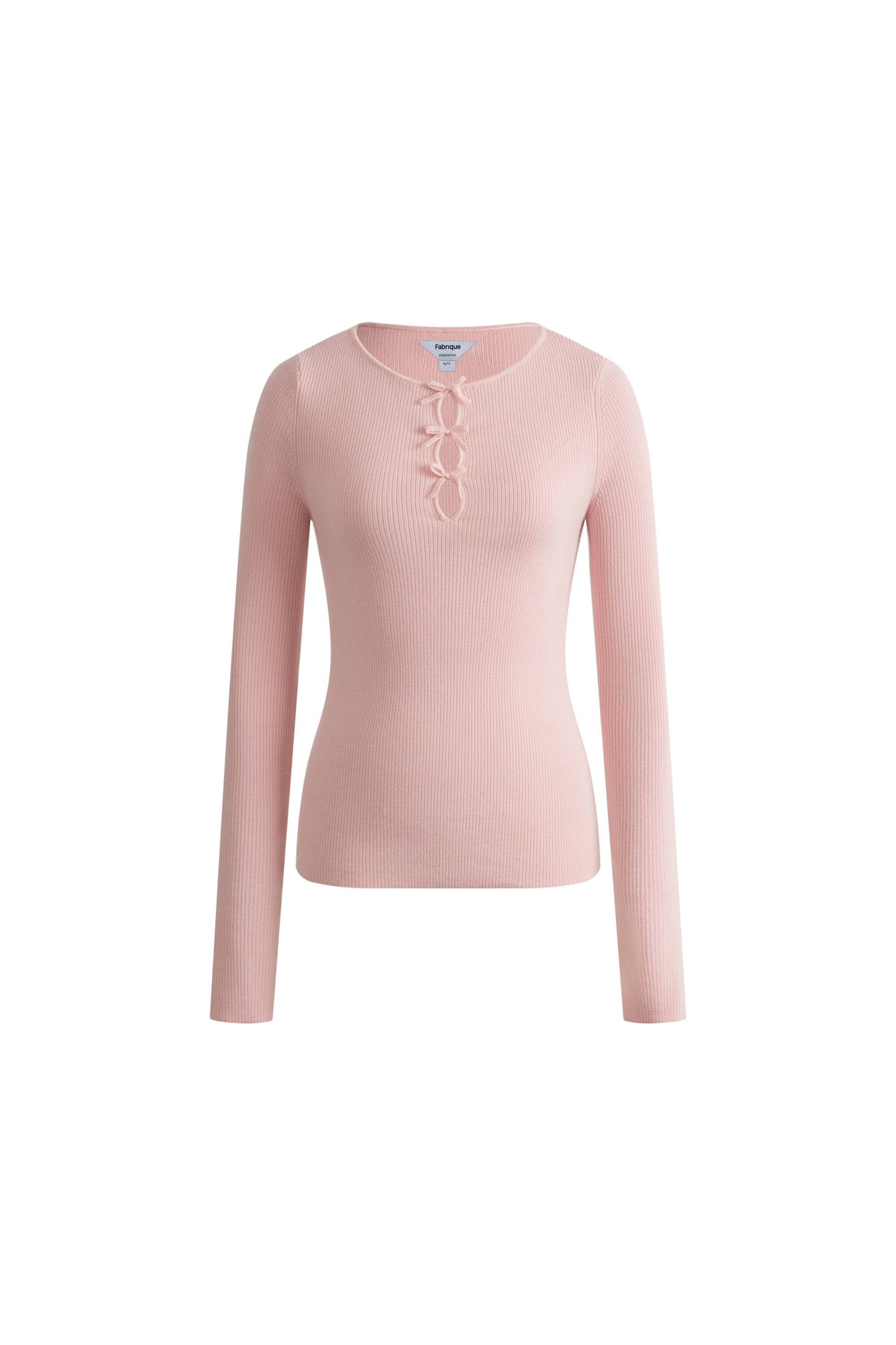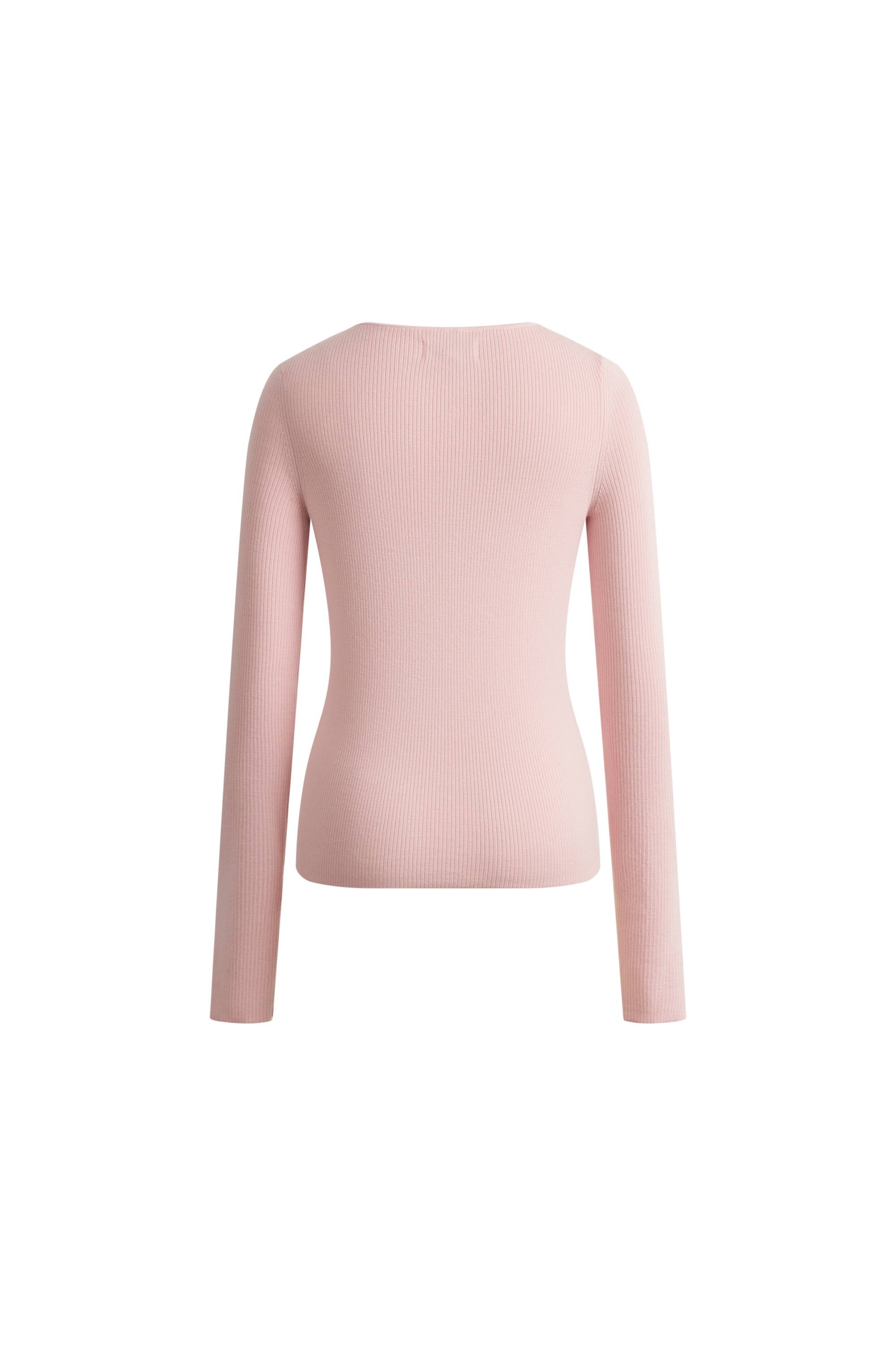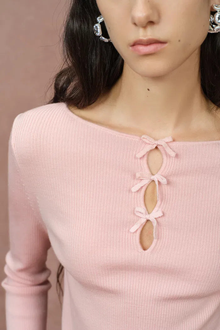 Bow Cutwork Fitted Sweater in Stretchy Merino Wool Knit