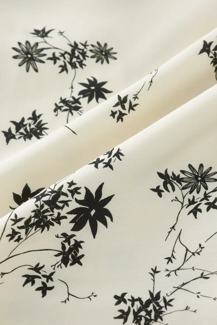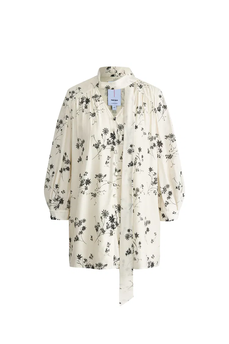 Brooke Hand Painted Flora Scarf Neck Blouse in Silk Blend Satin