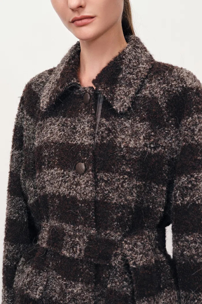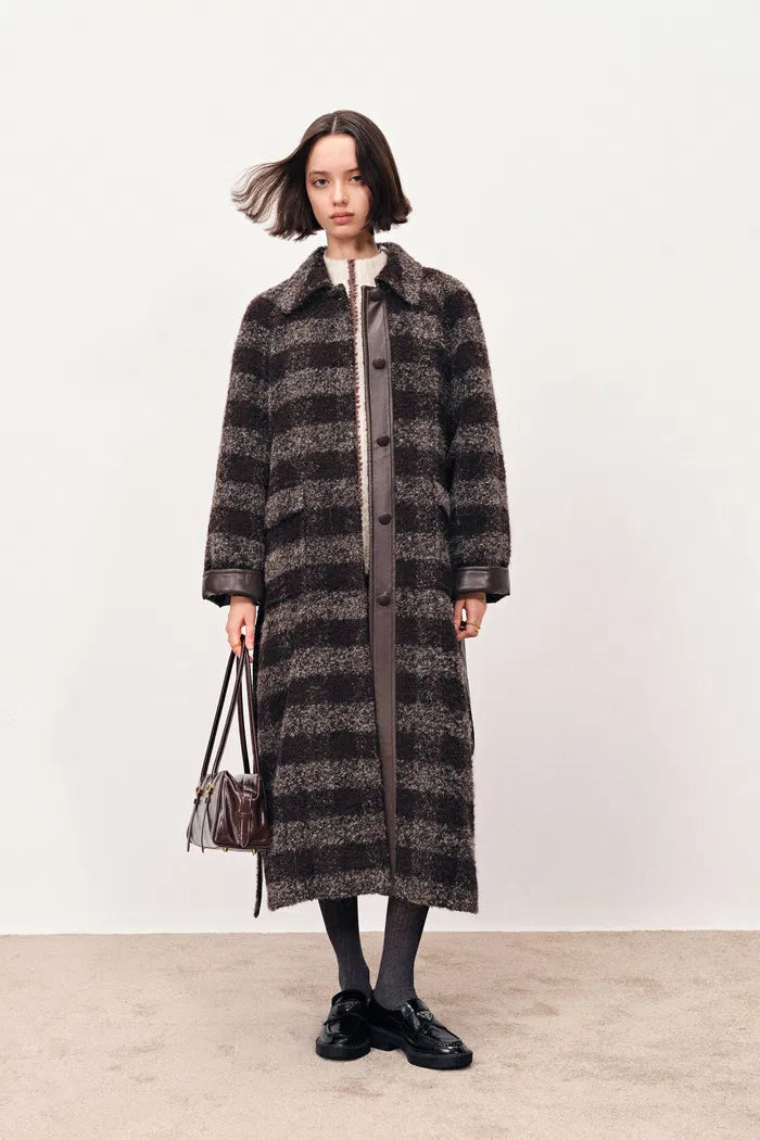 Camila Leatehr Accent Checkered Coat in Bouclé Wool