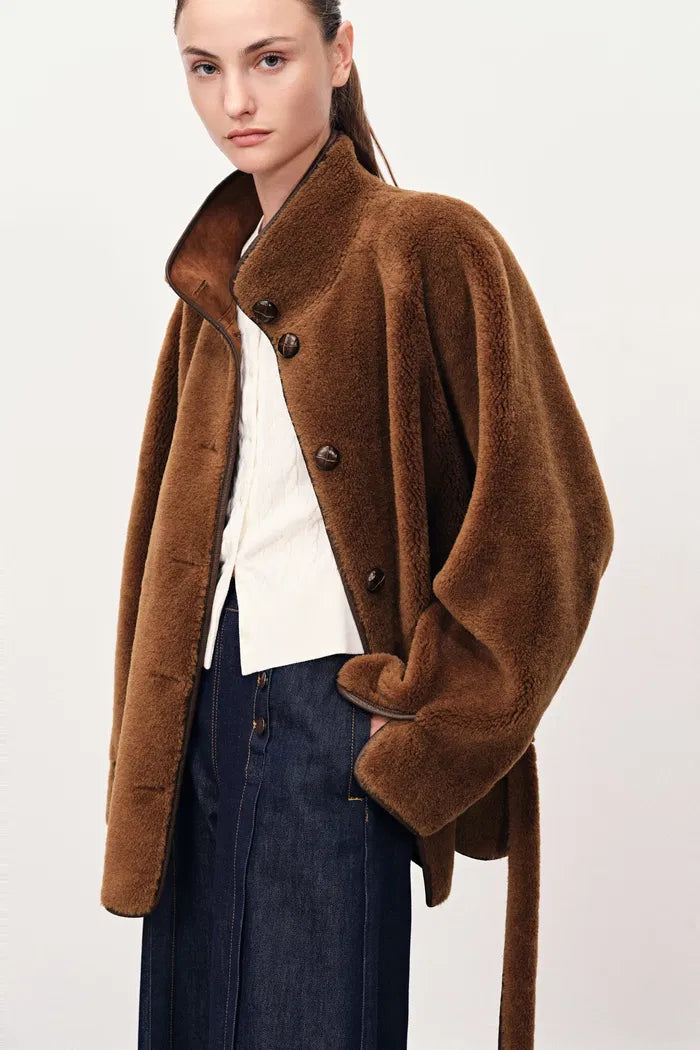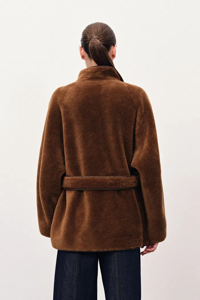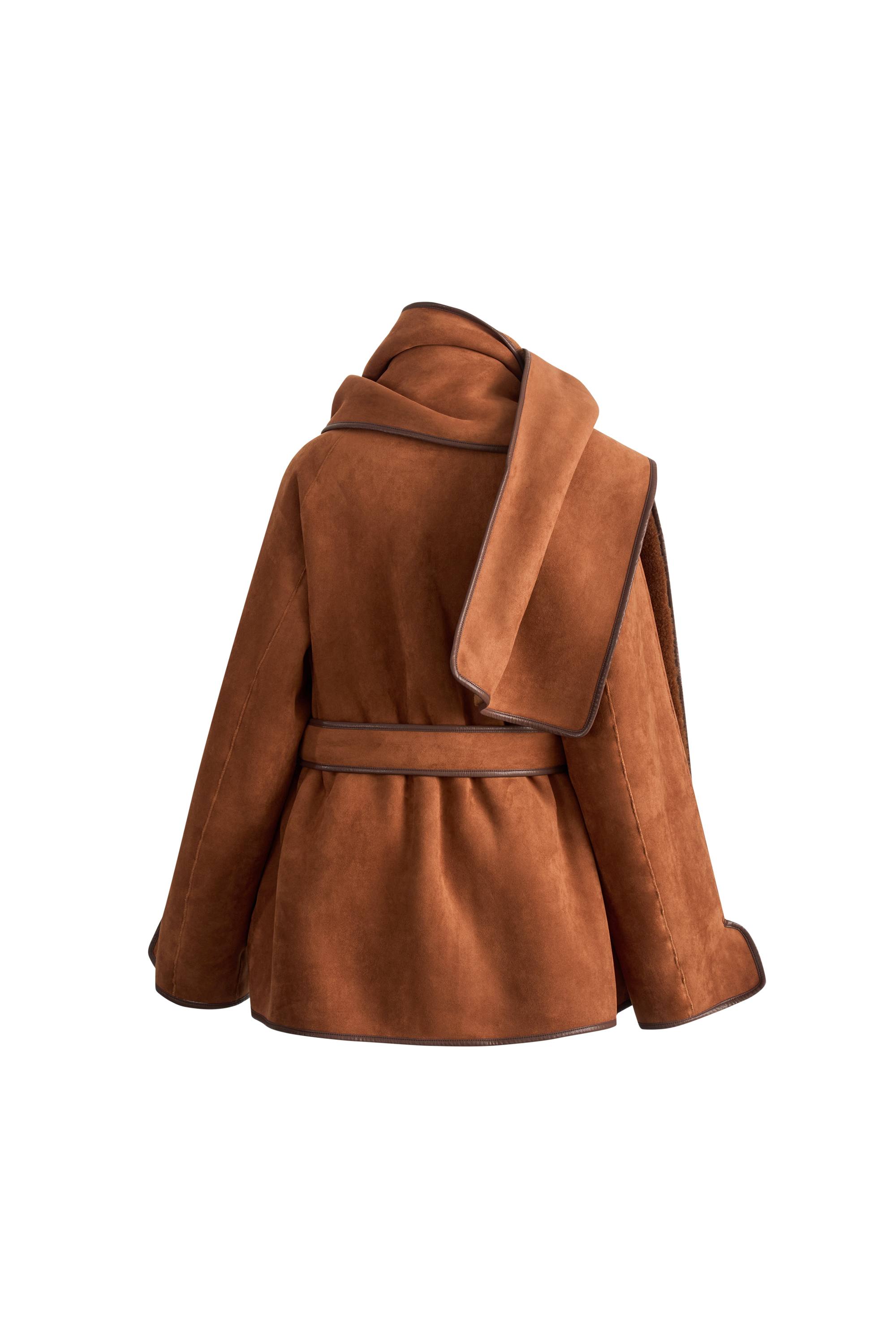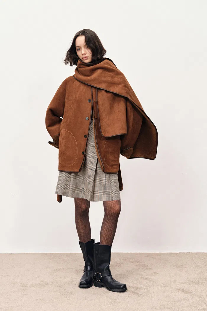 Carla Reversible Scarf Short Fur Coat in Merino Wool with Faux Suede