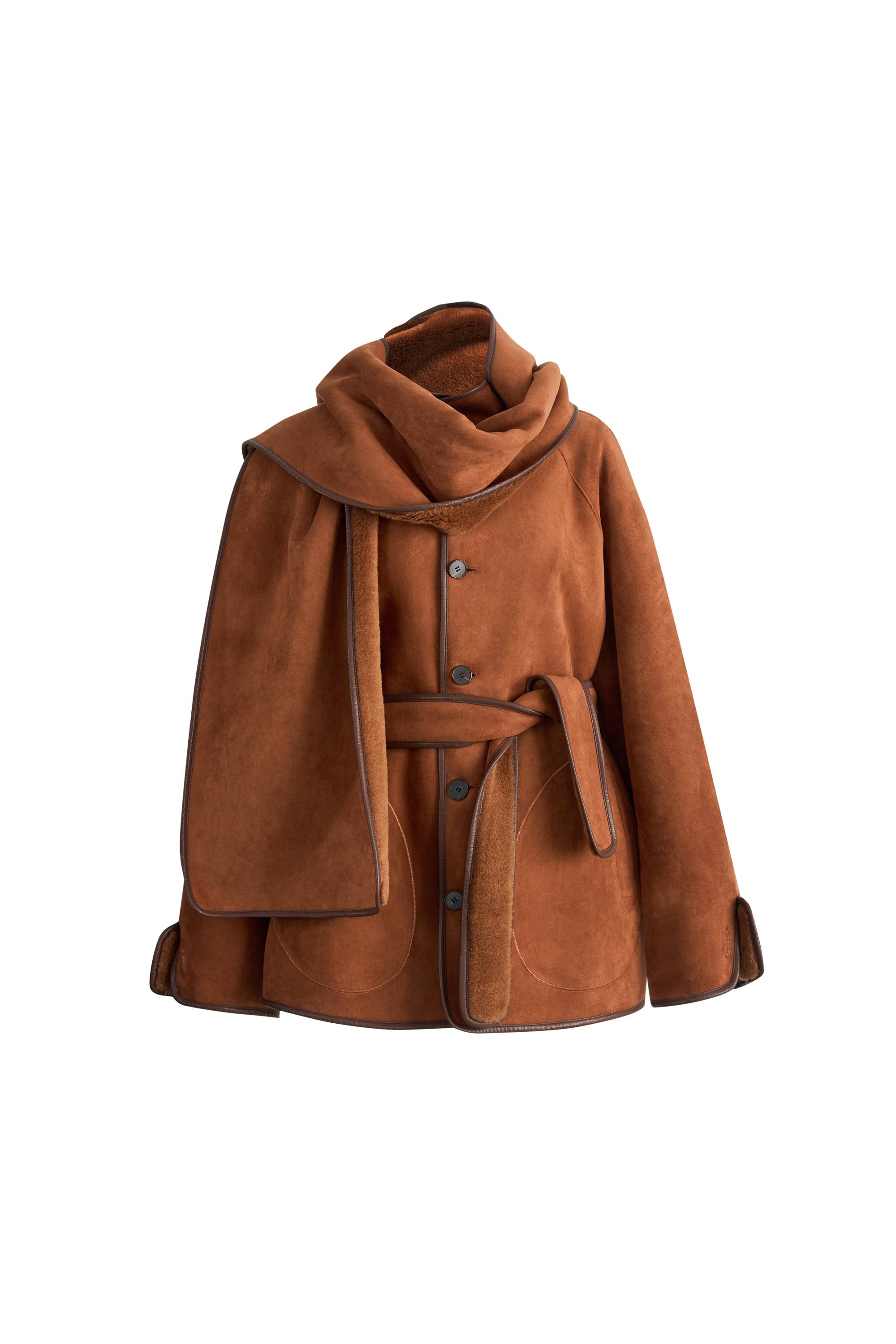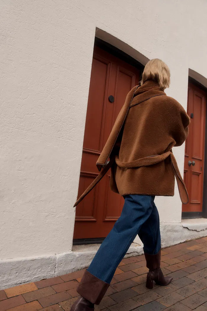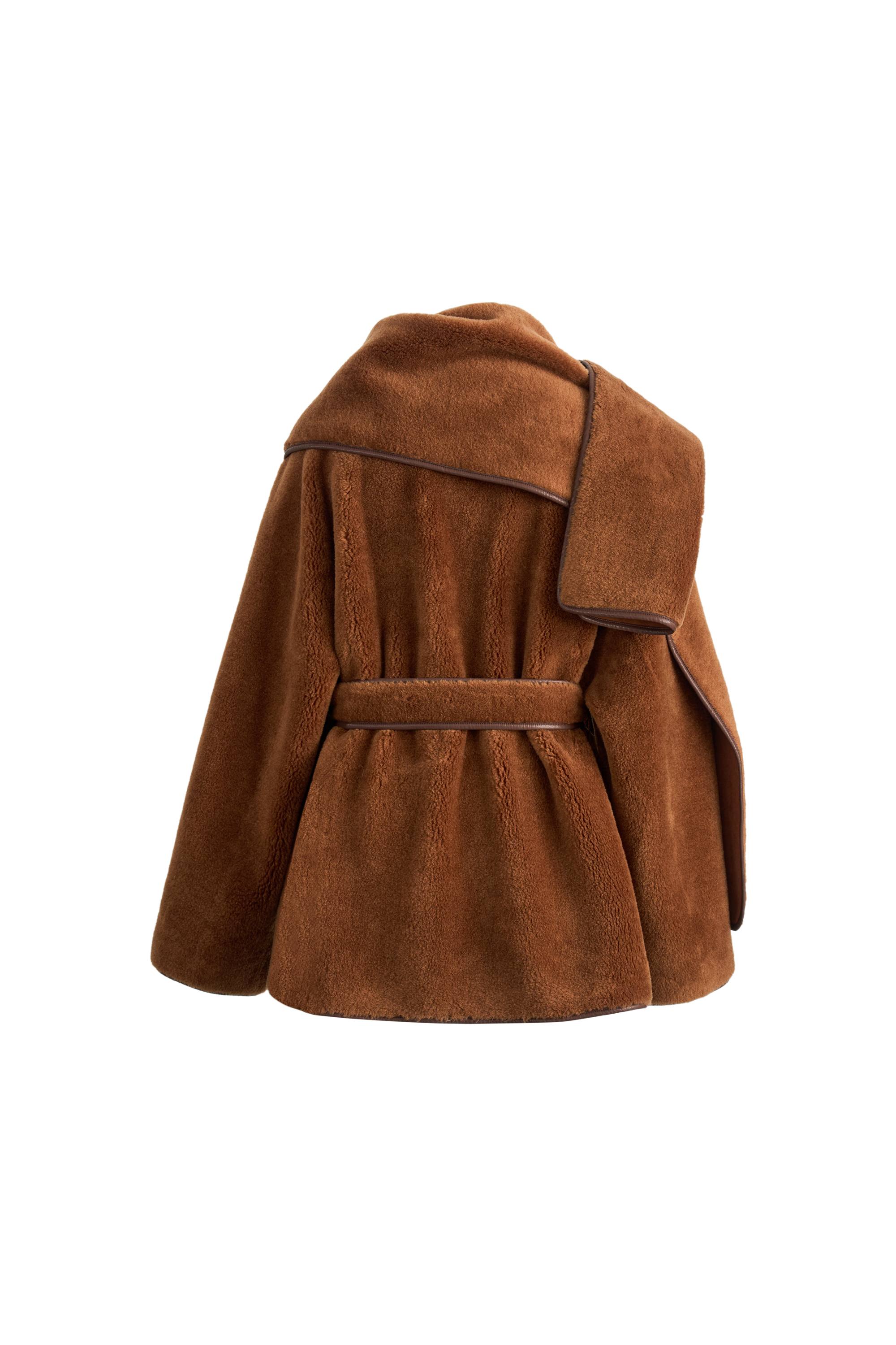 Carla Reversible Scarf Short Fur Coat in Merino Wool with Faux Suede