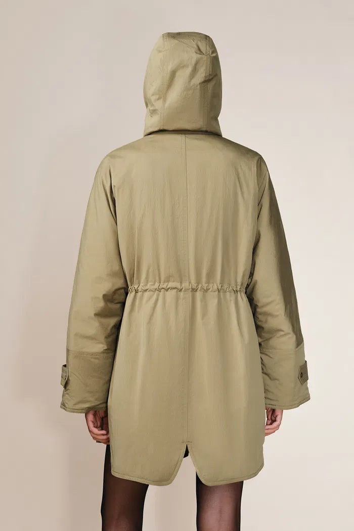 Casey Hooded Drawstring Lightweight Down Jacket in Crinkle Cotton Blend