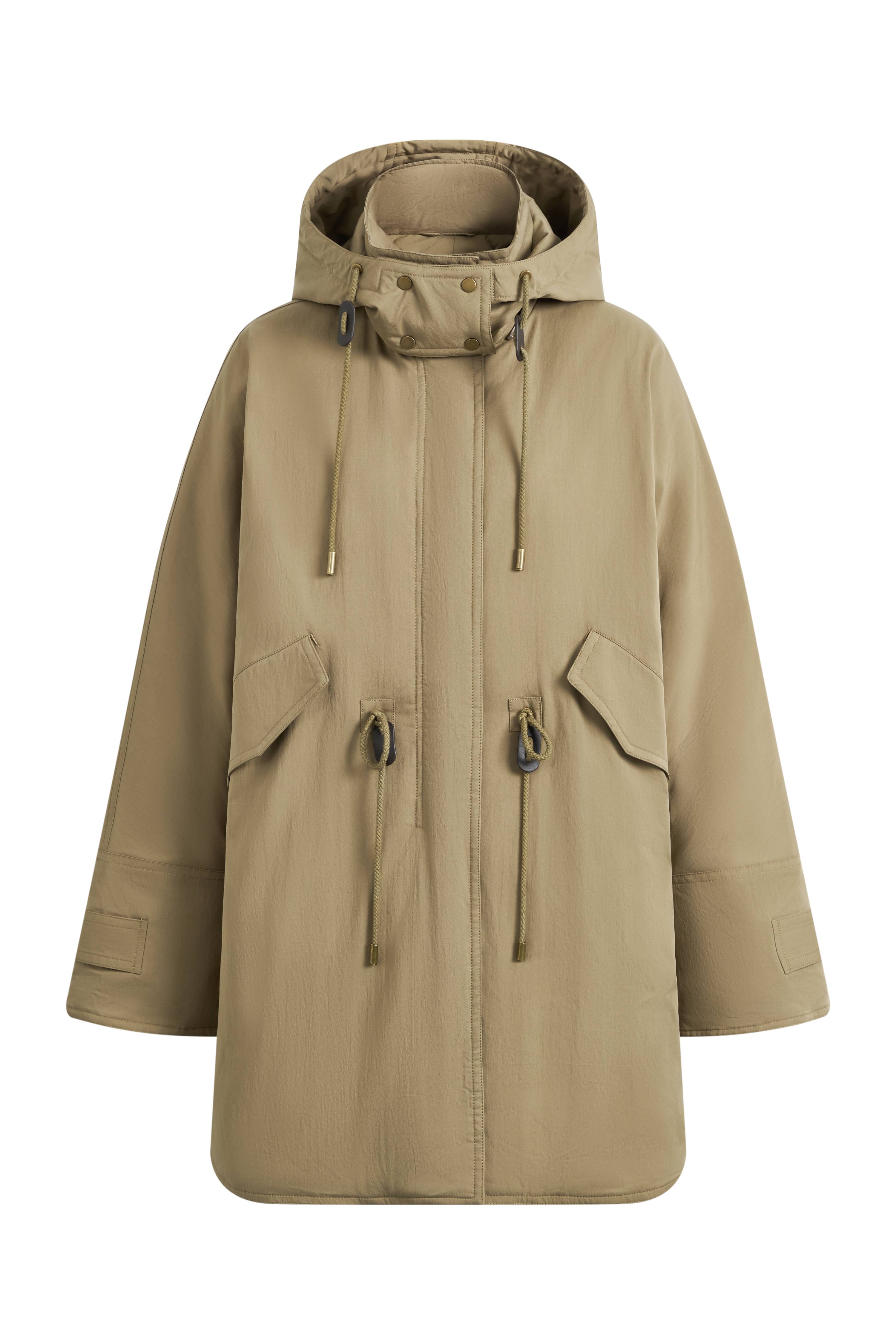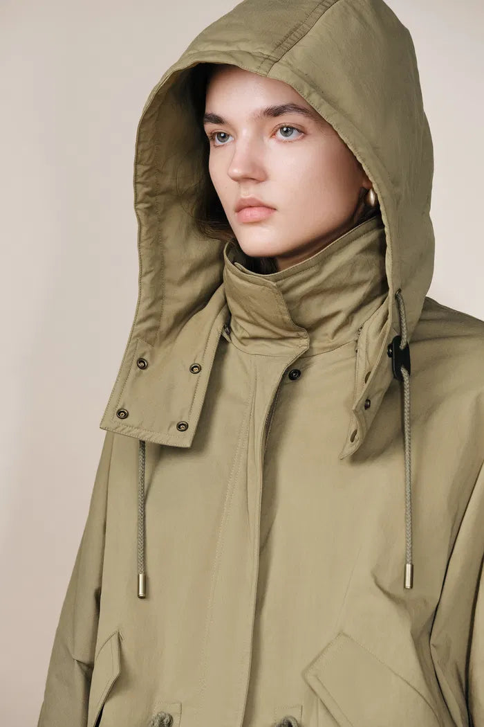 Casey Hooded Drawstring Lightweight Down Jacket in Crinkle Cotton Blend