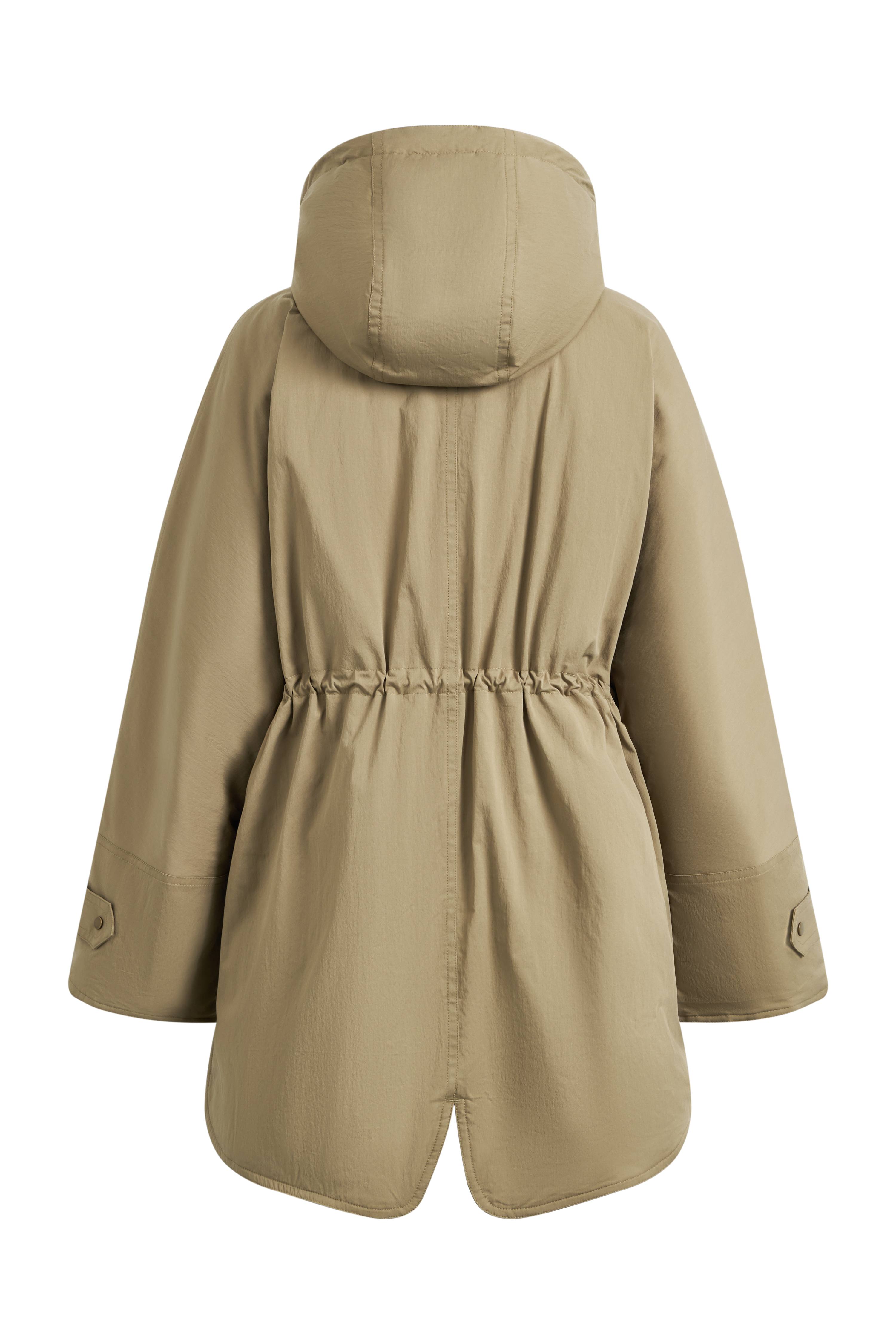 A hooded down jacket designed for movement. Lightweight yet full in shape, it’s fitted with drawstrings and soft curves that let you play with proportion. Effortless layering that feels both cozy and directional.