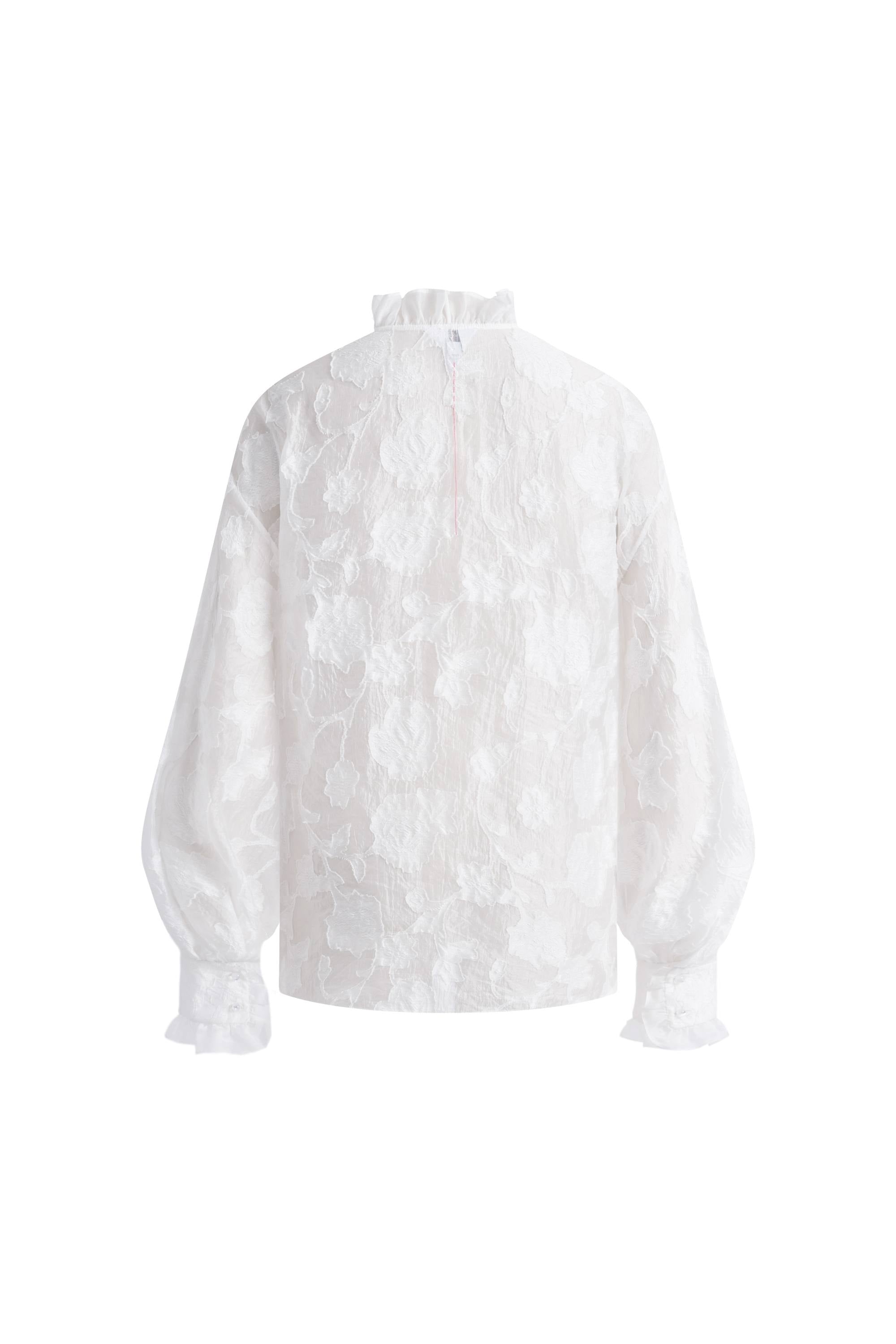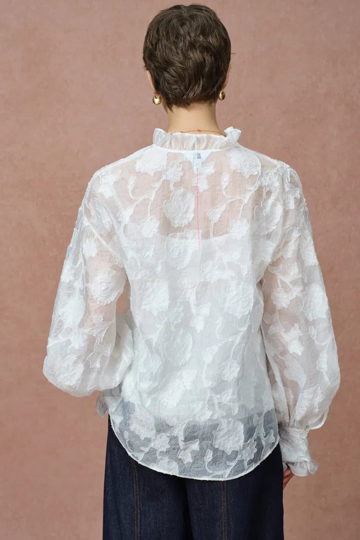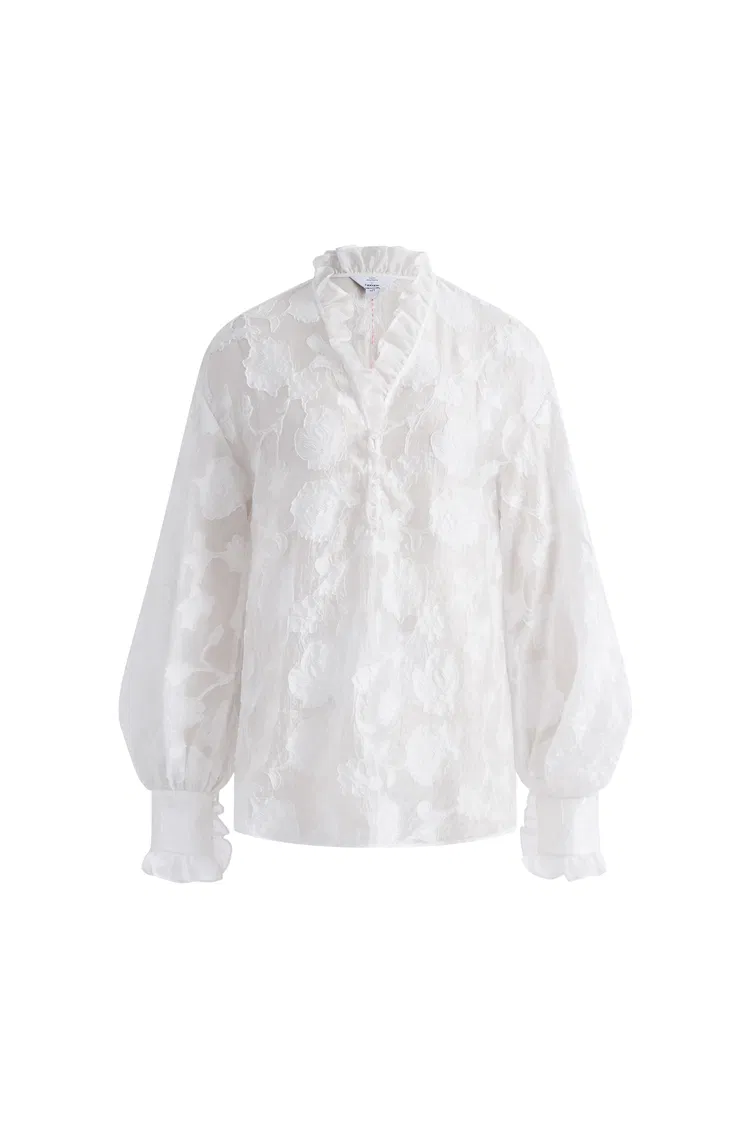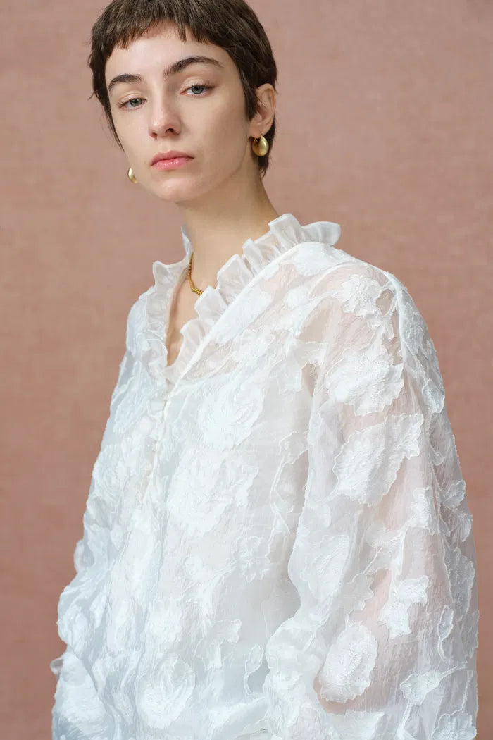 Cecilia Ruffle V Neck Blouse in Burnout chiffon