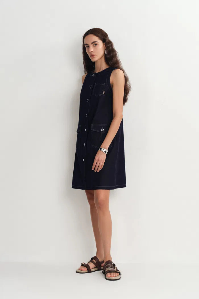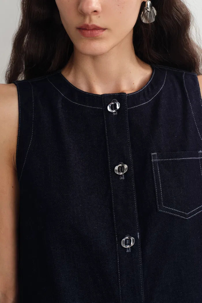 Cecilia Sleeveless Dress in Raw Denim