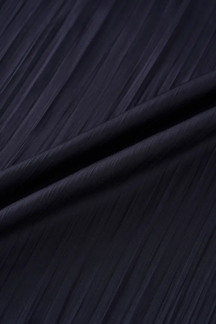 Celeste Sleeveless Navy Dress in Pleated Satin