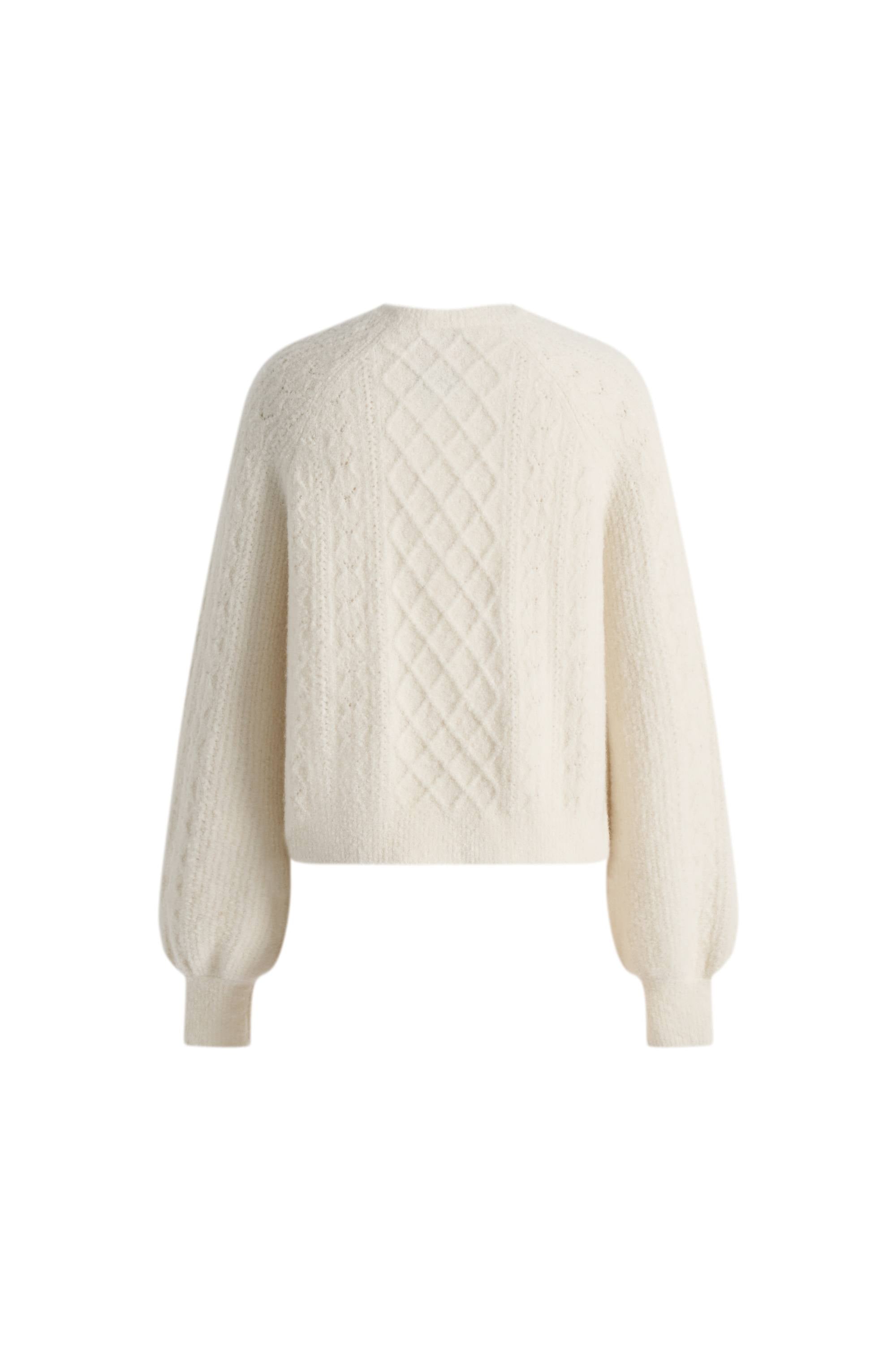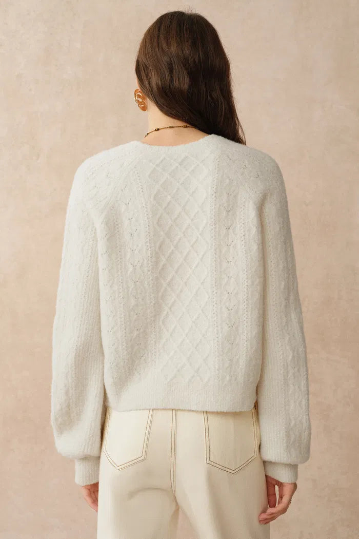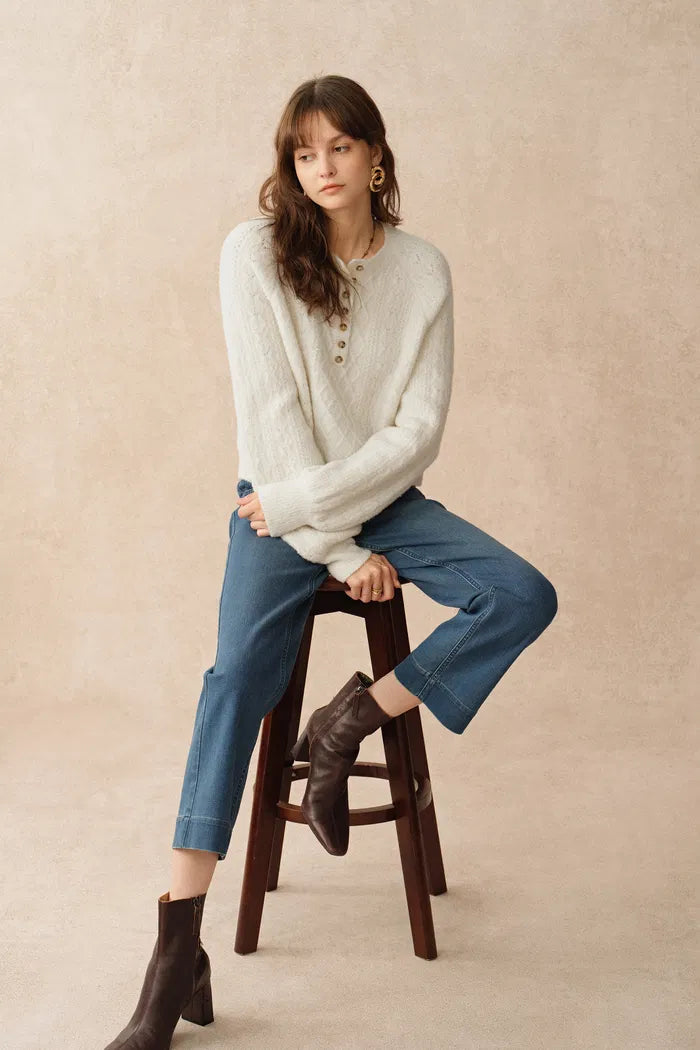 Cersei Hand Work Henley Cable Pattern Sweater in Merino Wool