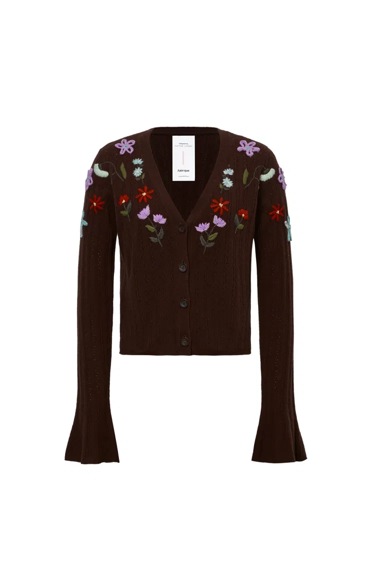 Christabel Floral Fitted Cardigan in Merino Wool Knit