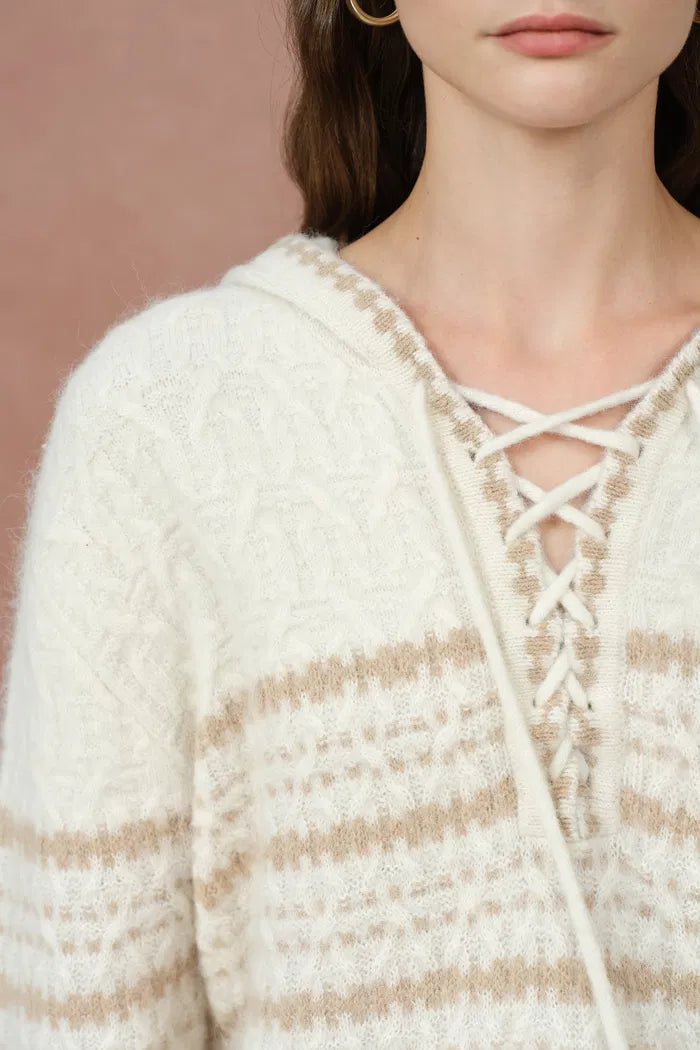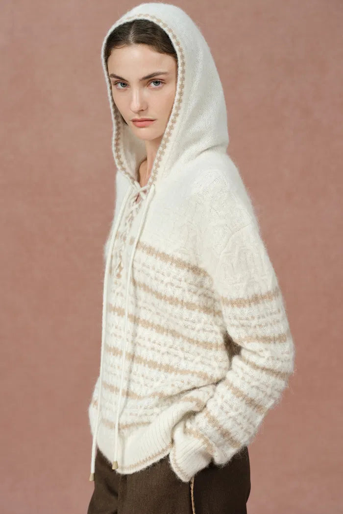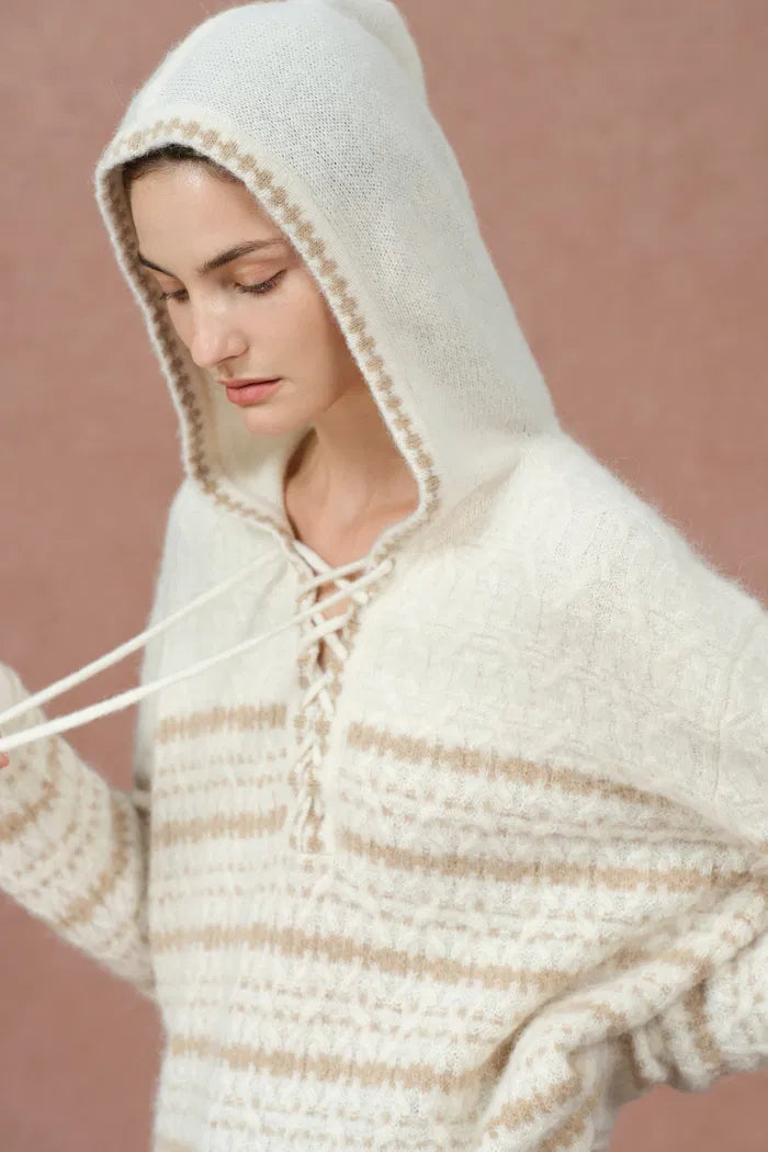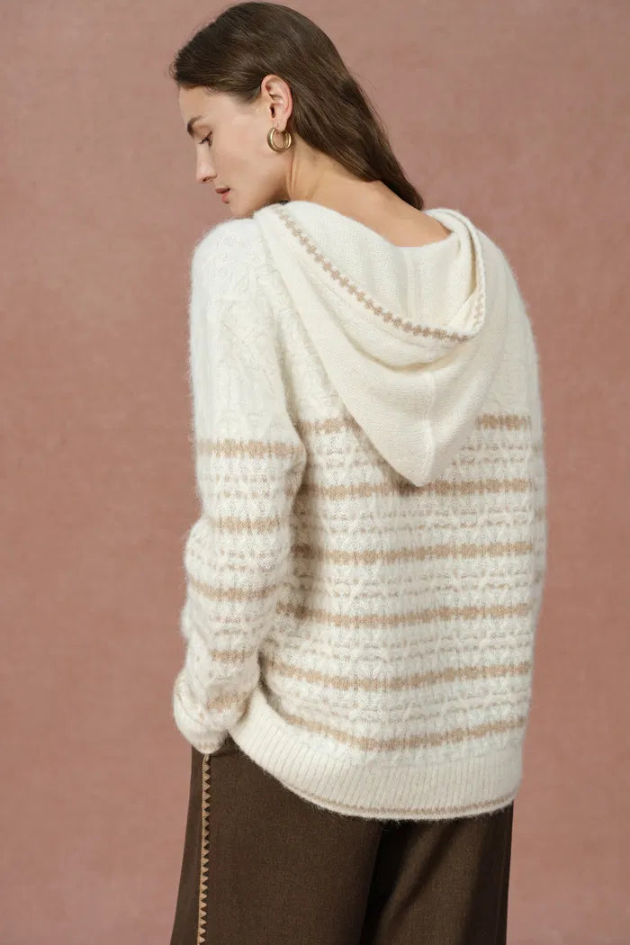 Clara Striped Cable Hoodie Sweater in Wool-Alpaca Blend Knit