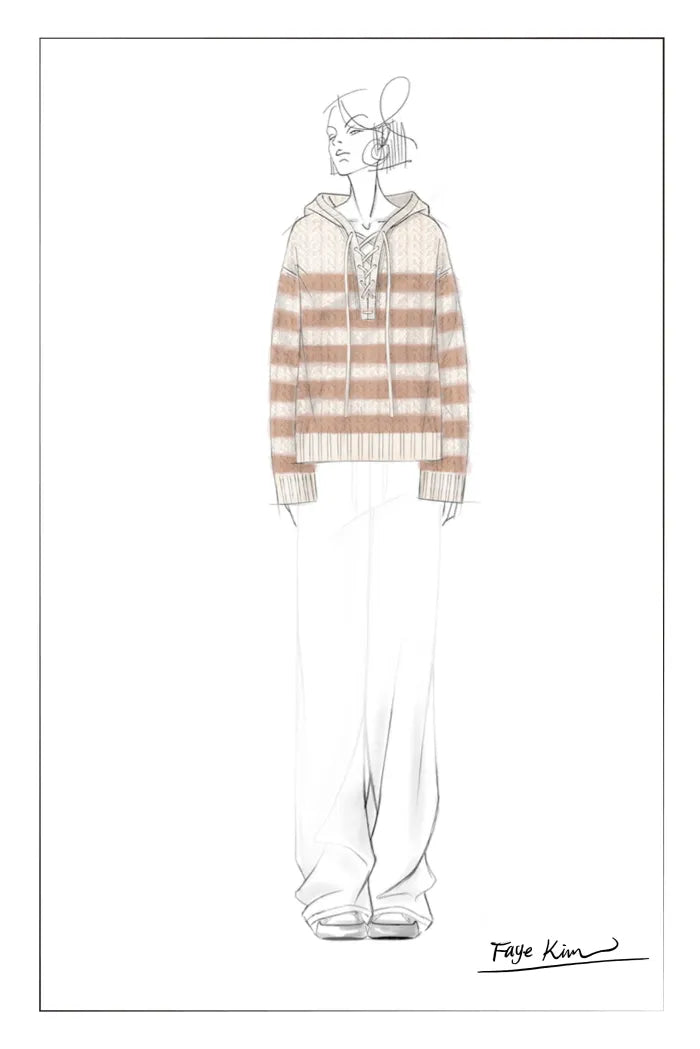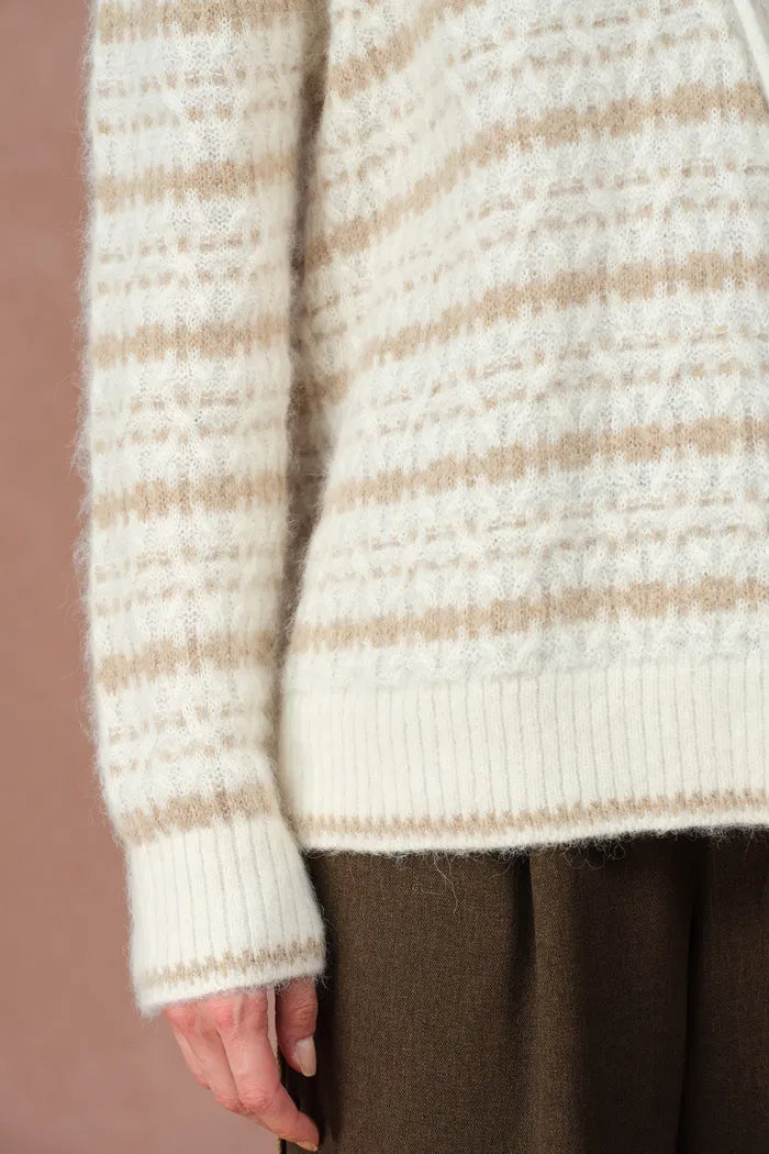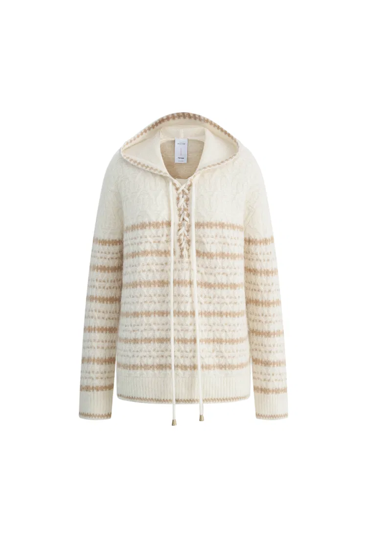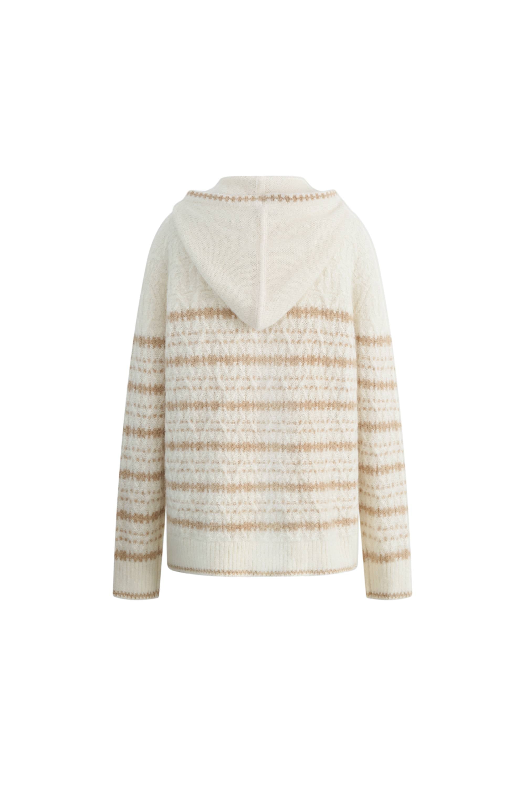 Clara Striped Cable Hoodie Sweater in Wool-Alpaca Blend Knit