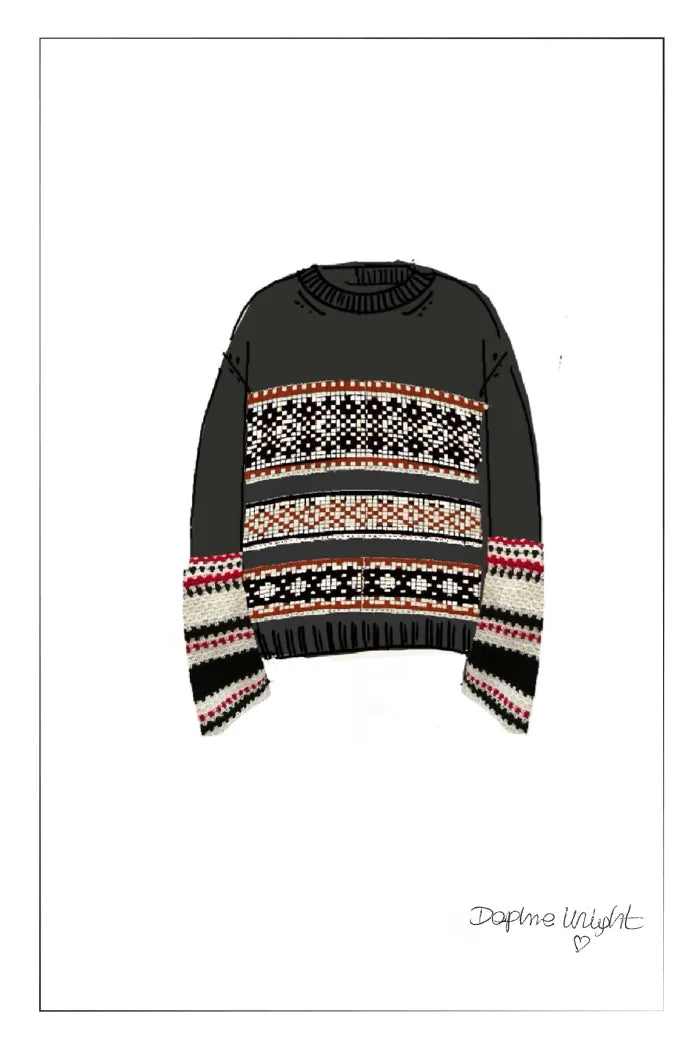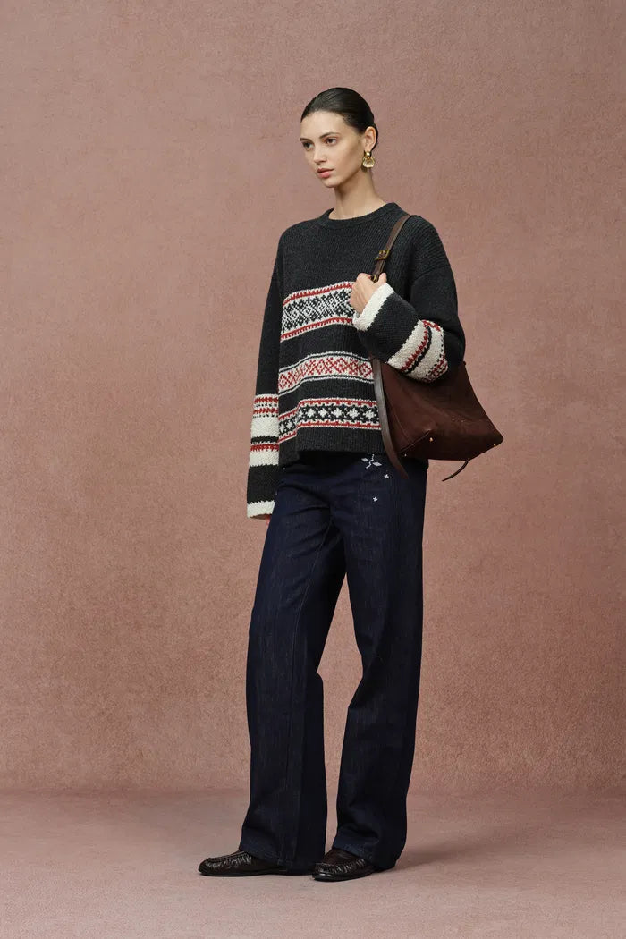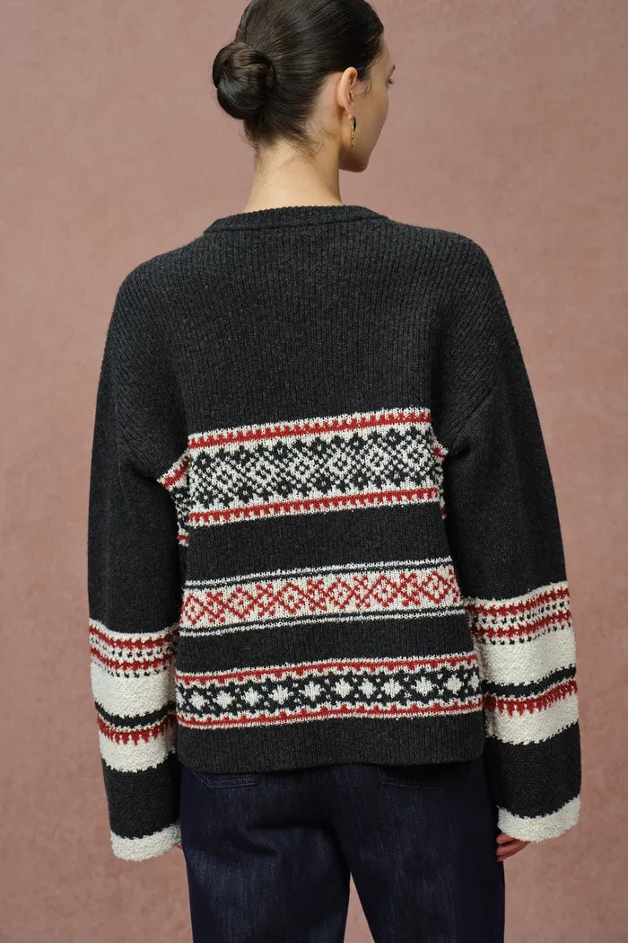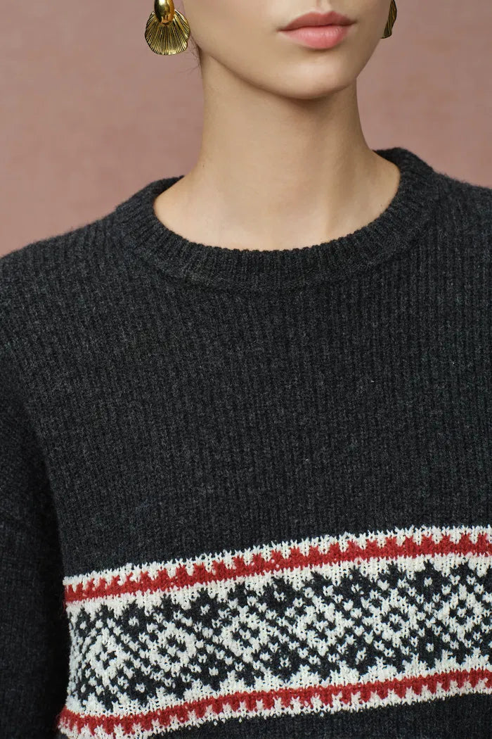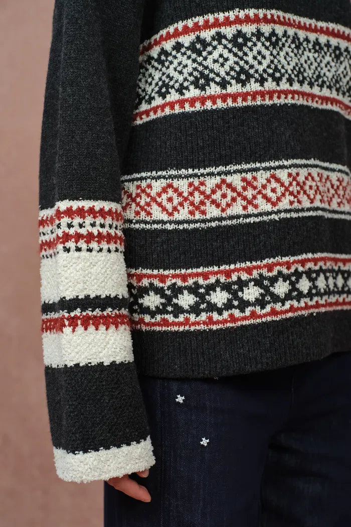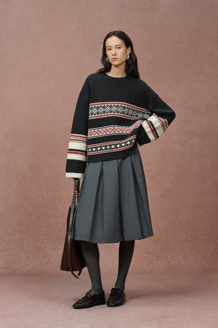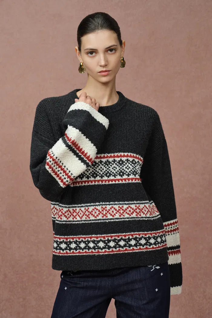 Corvara Nordic Fair Isle Roomy Sleeve Sweater in Merino Wool