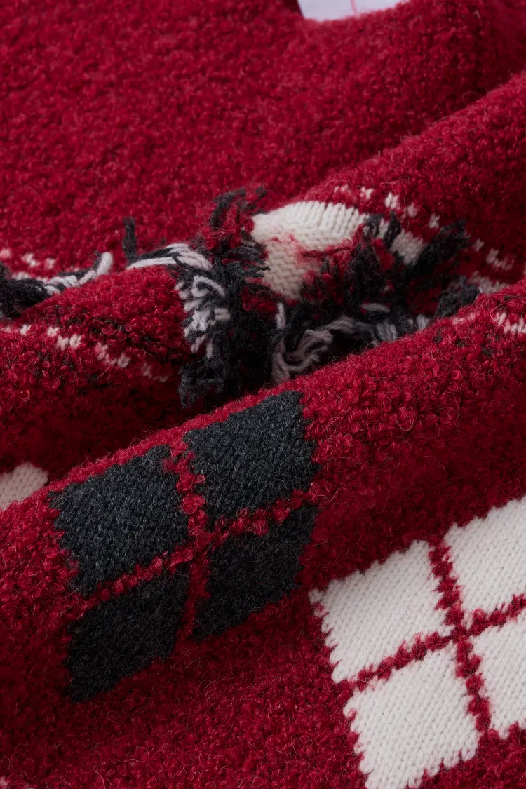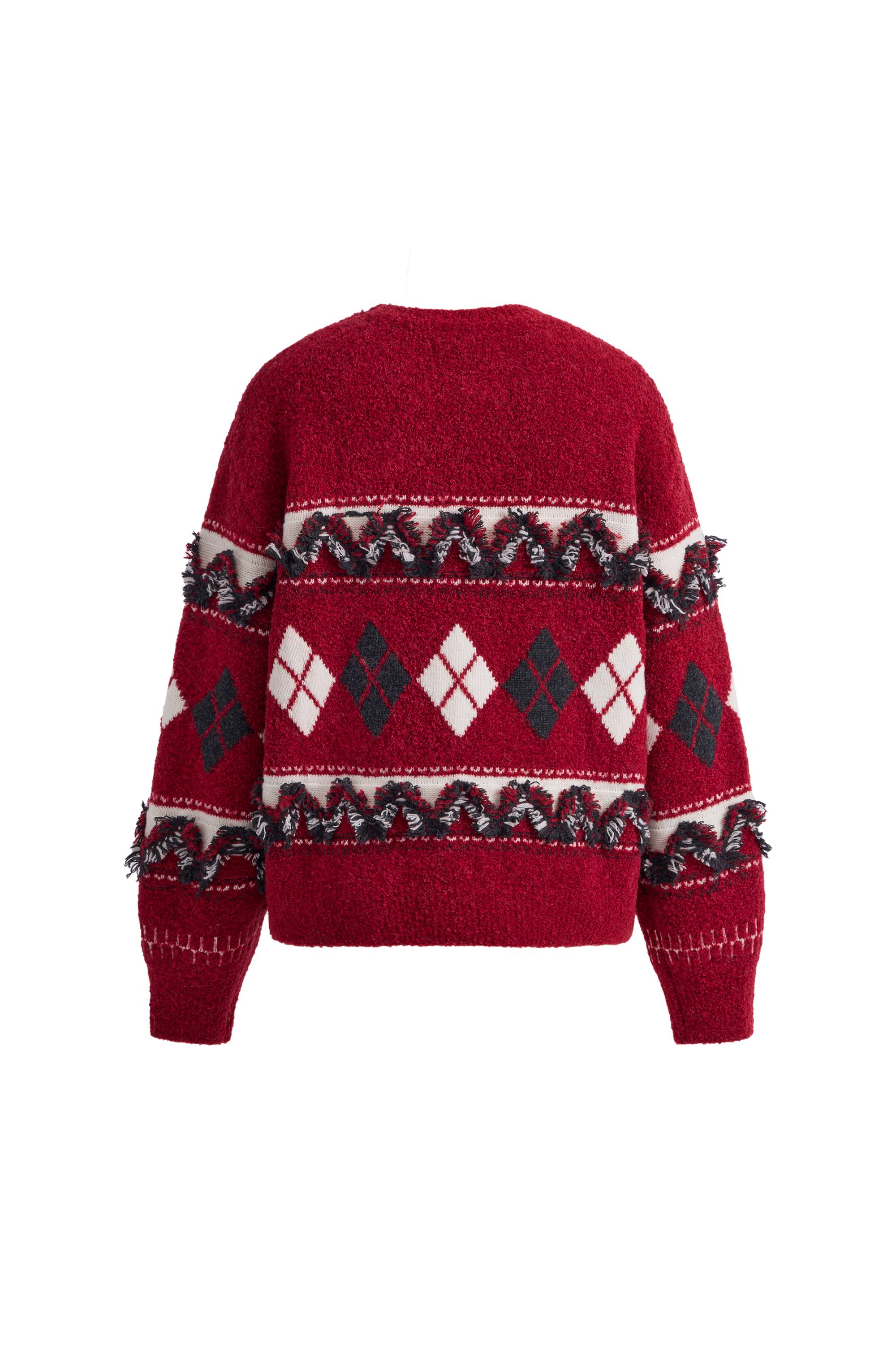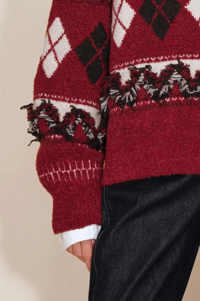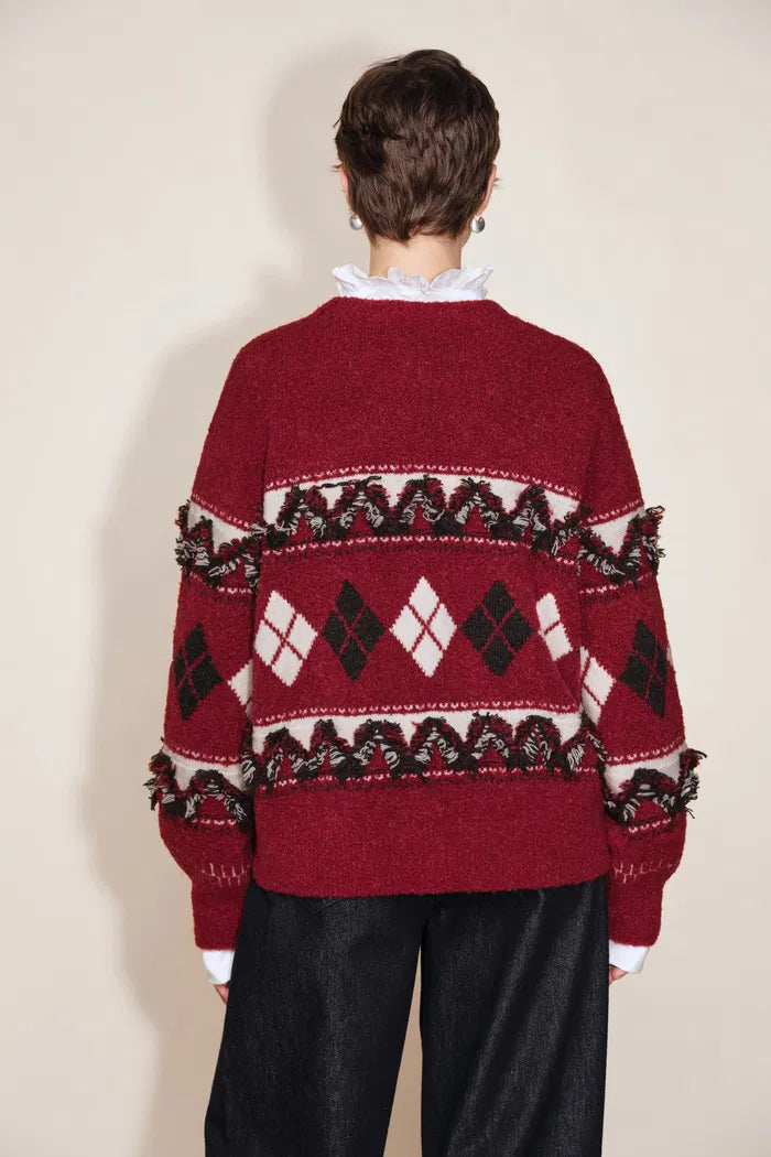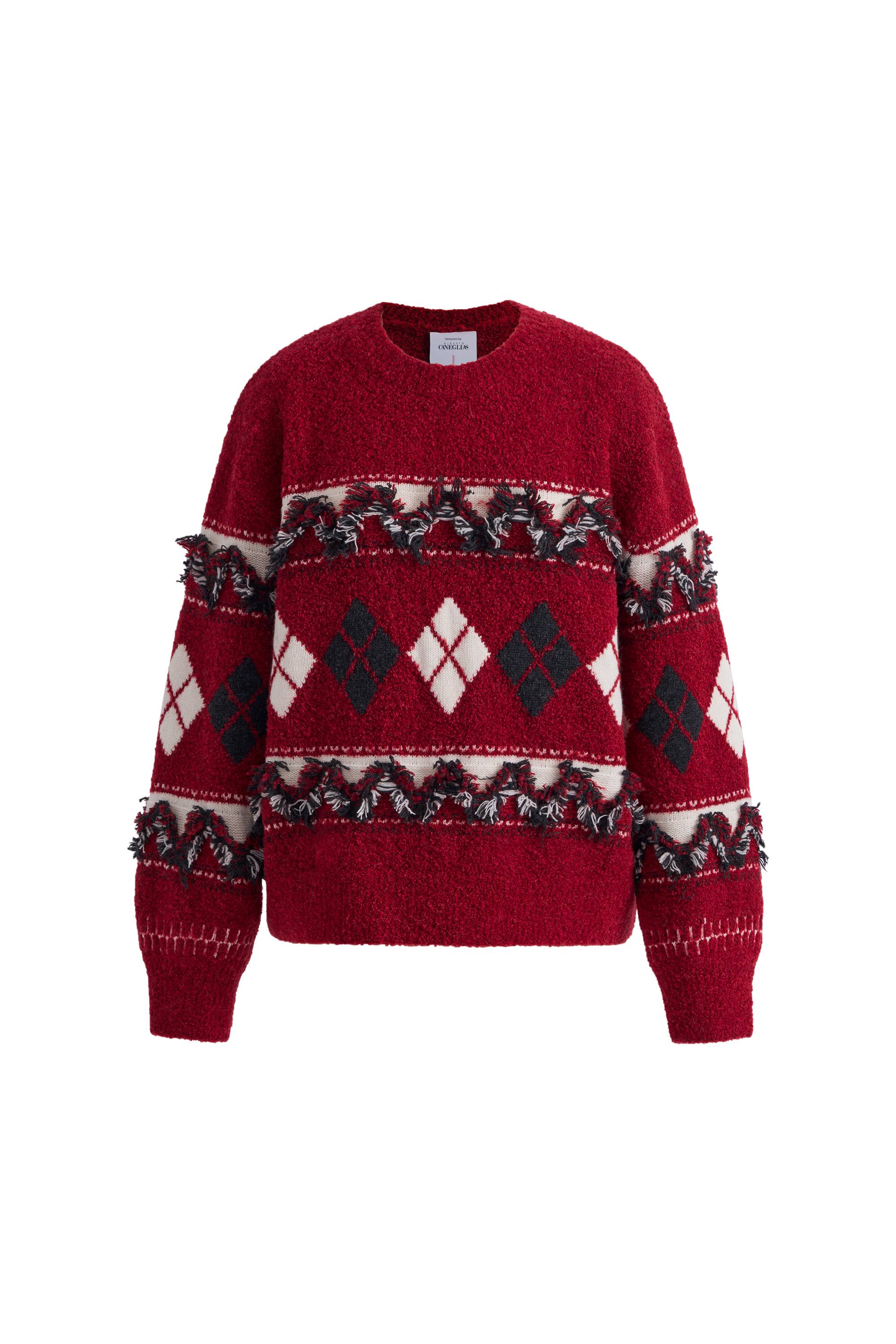Crimson 3D Argyle Sweater in Merino Wool Loop Bouclé Yarn