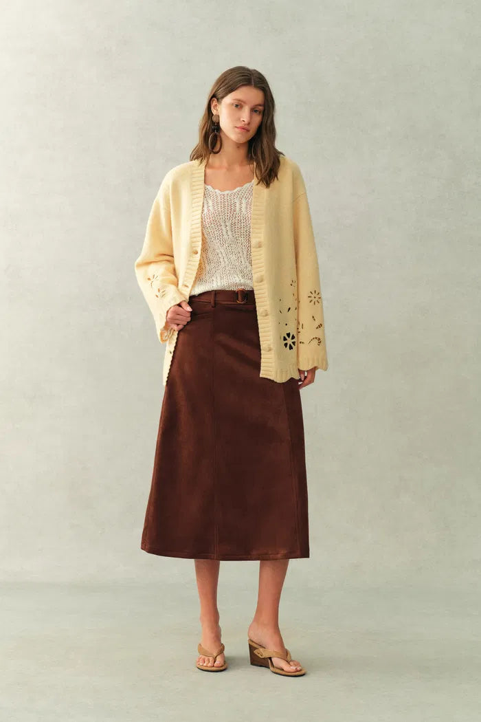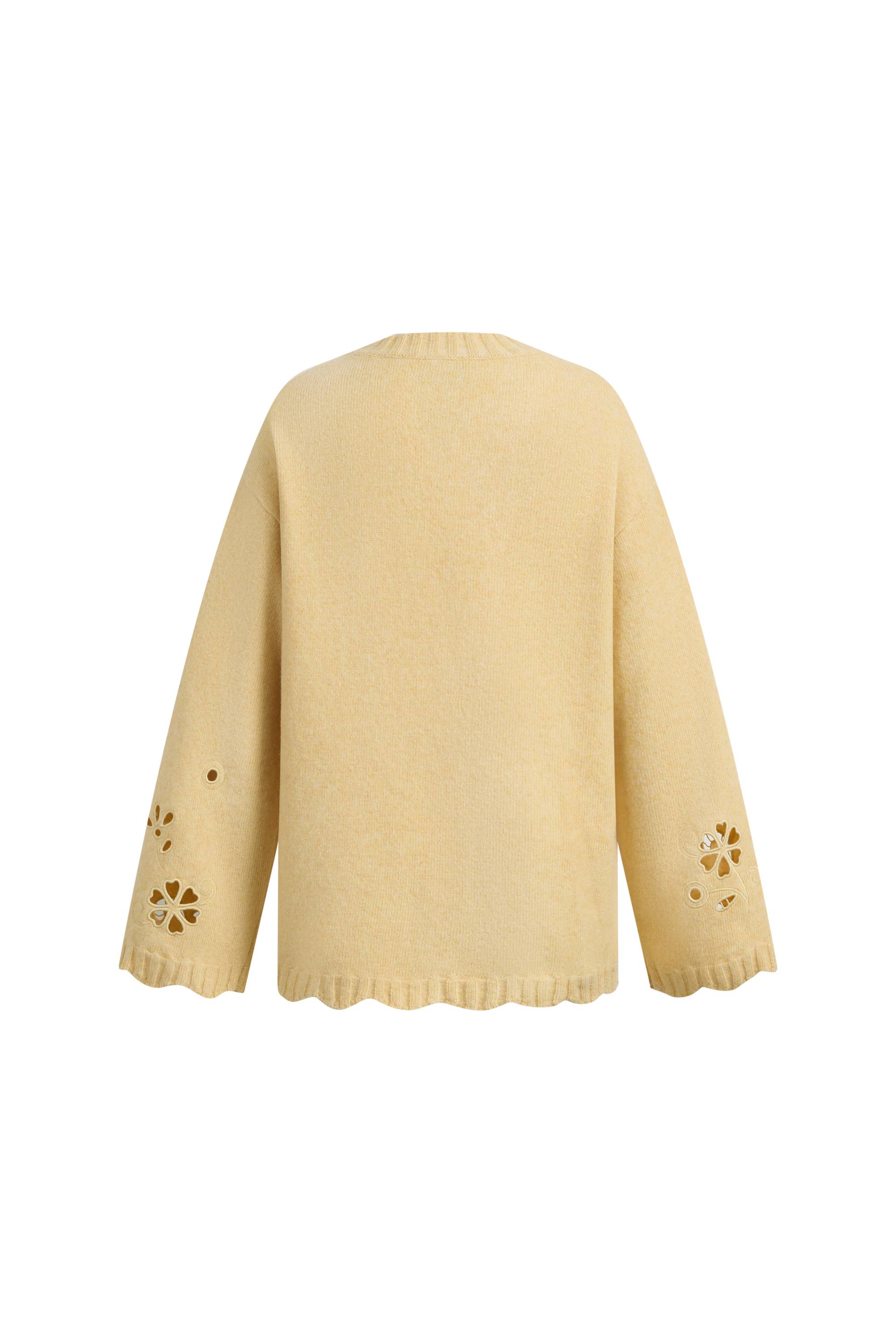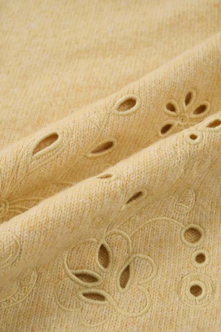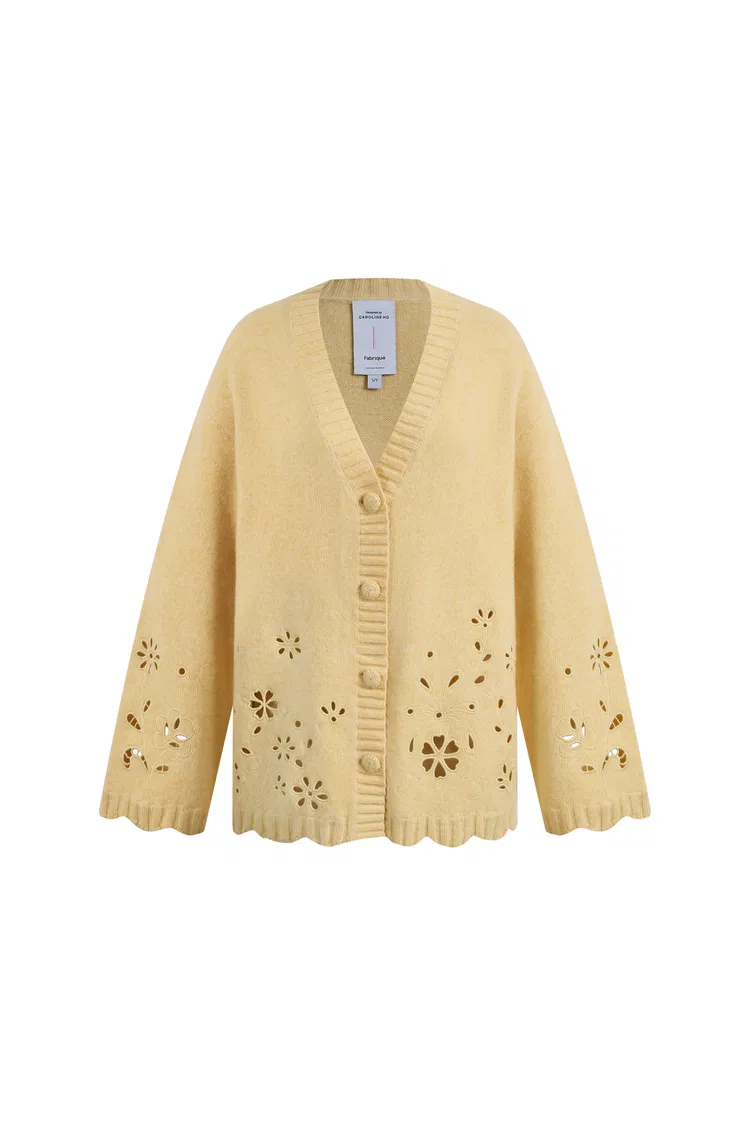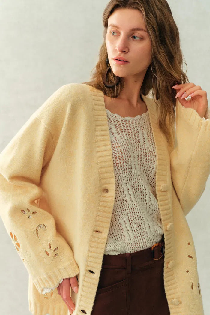 Daisy Openwork Embroidered Cardigan in Cotton Merino Wool Blend Knit