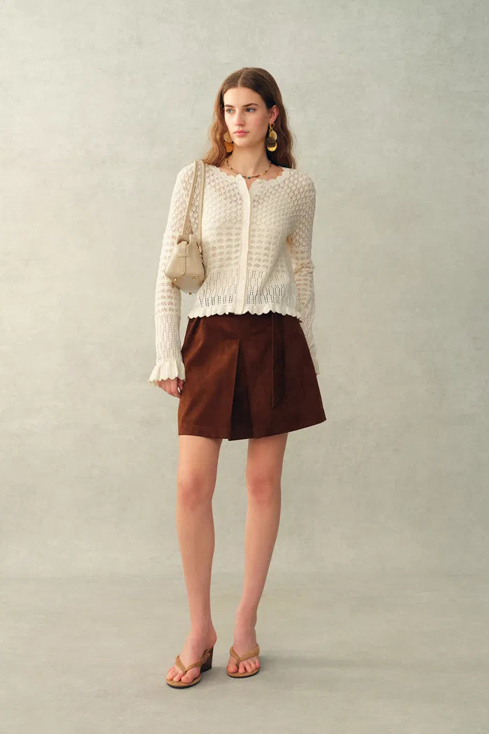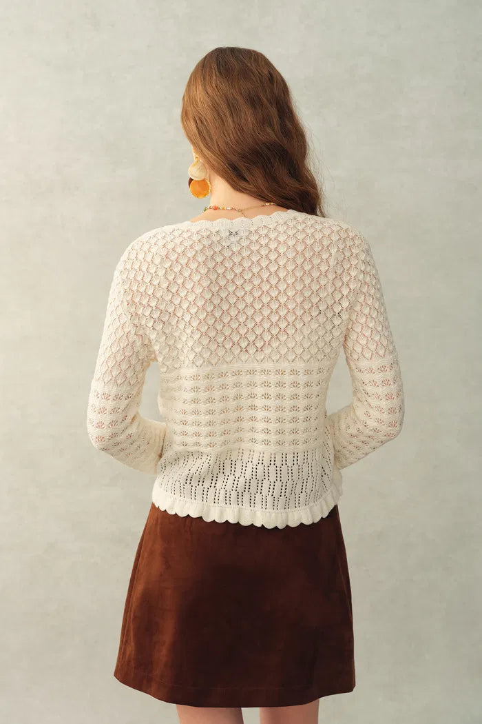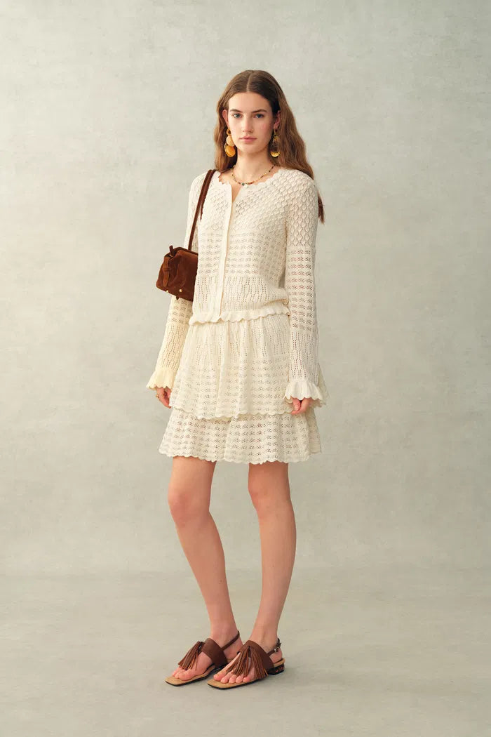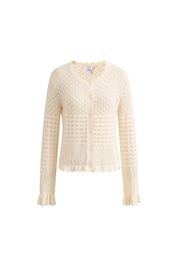 Daisy Ruffle-Trim Cardigan in Cotton Knit