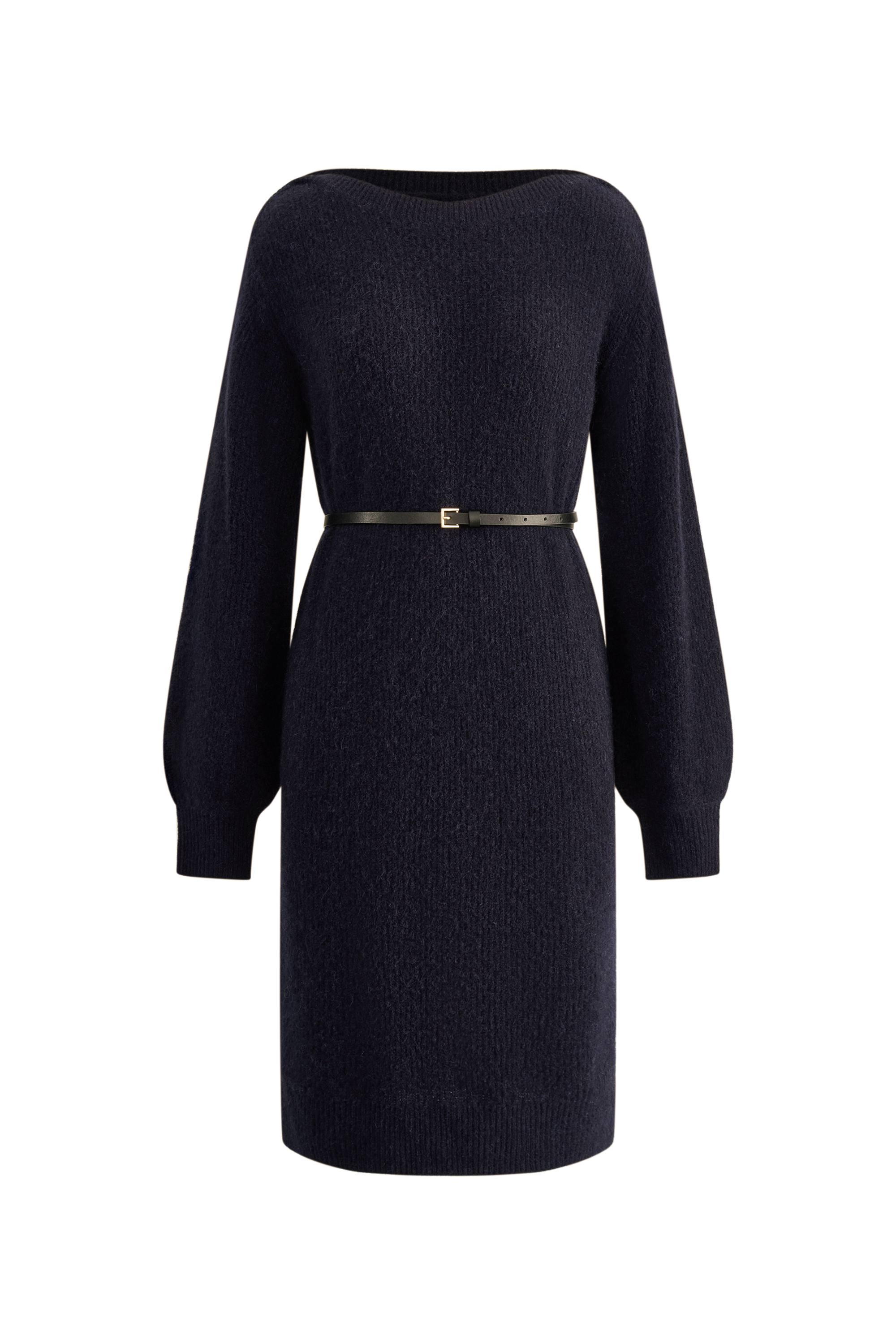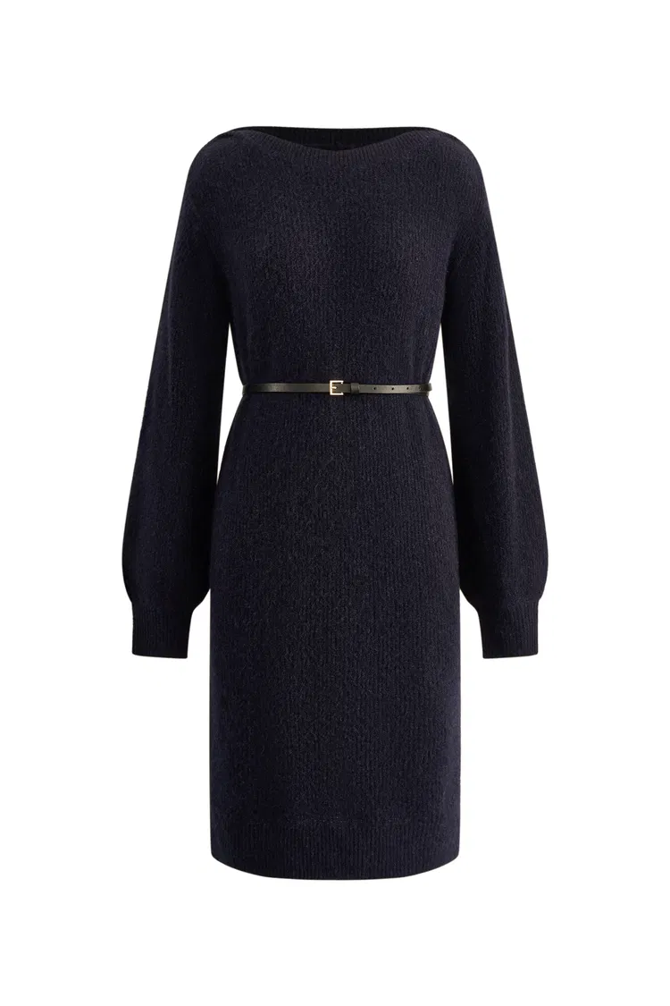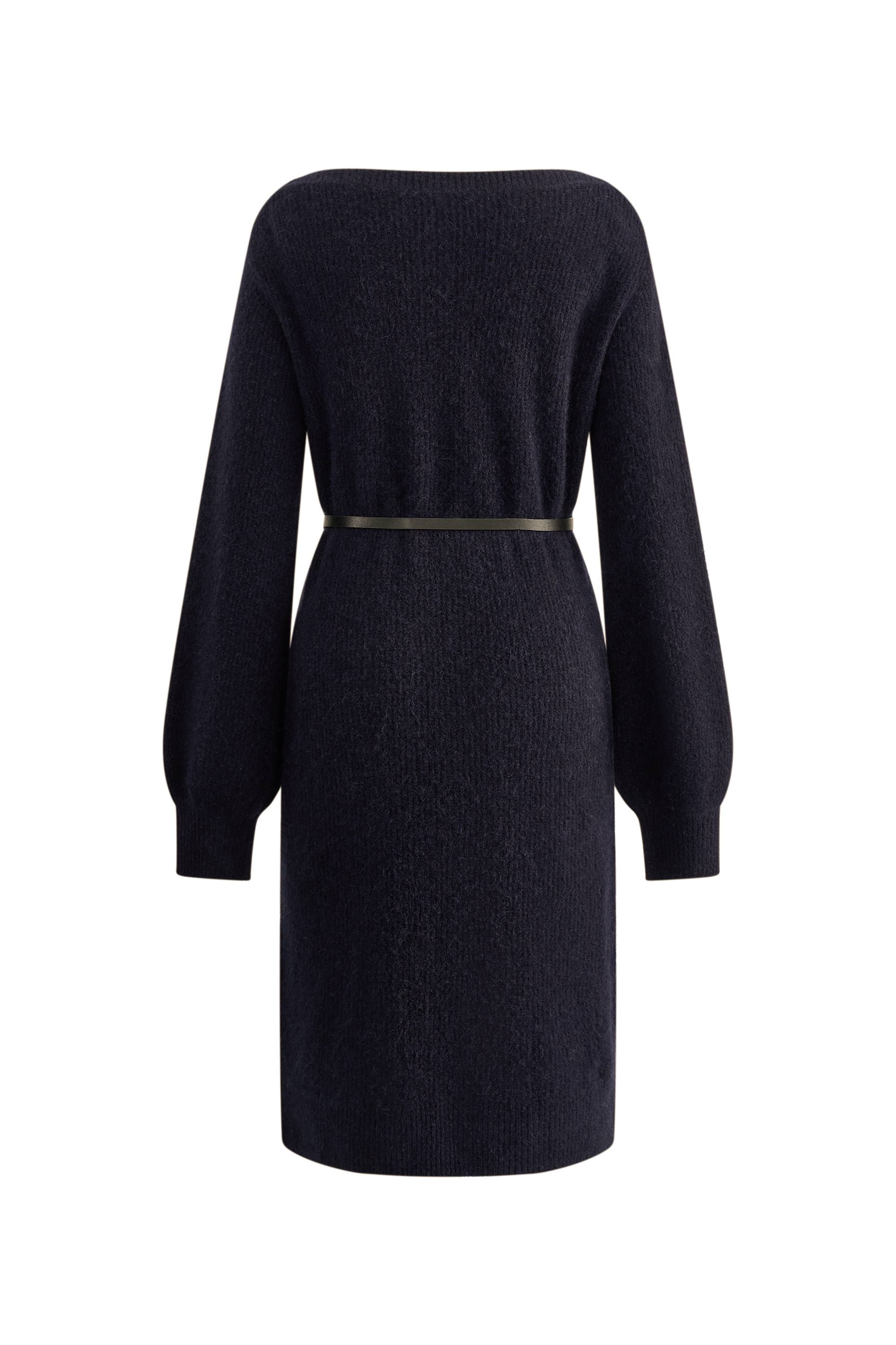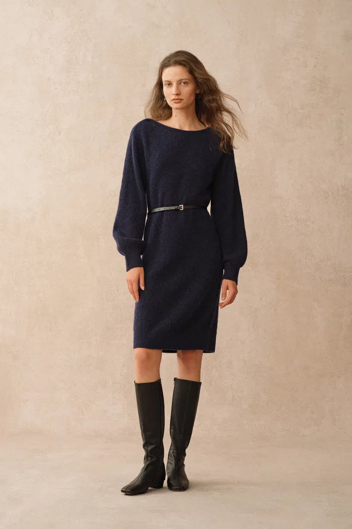 Danni Navy Boat Neck Knit Dress in Merino Wool Knit