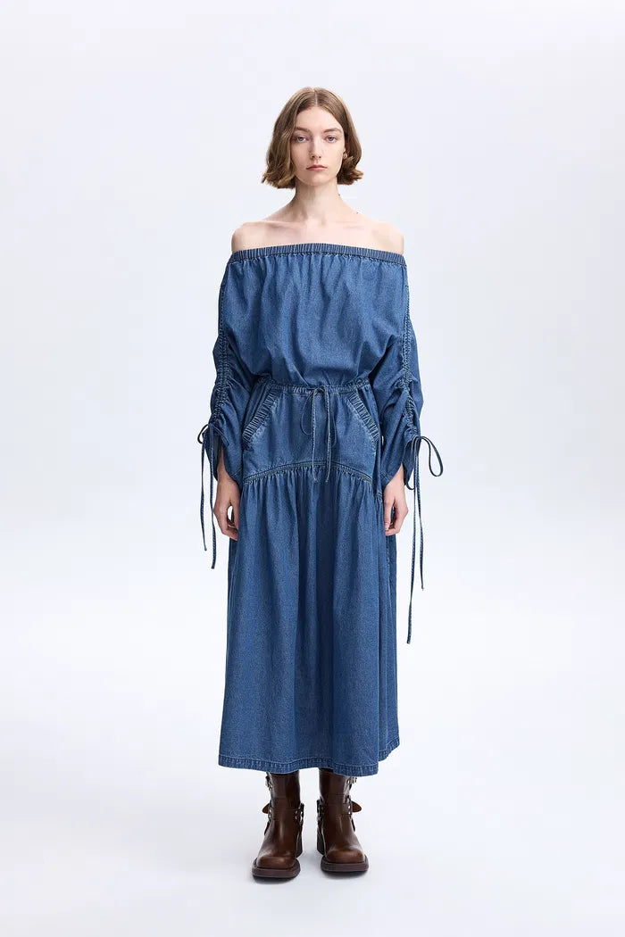 Diane Drawstring Dress in Tencel Denim
