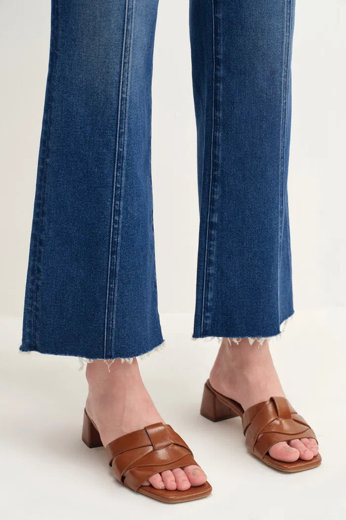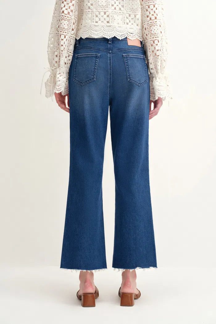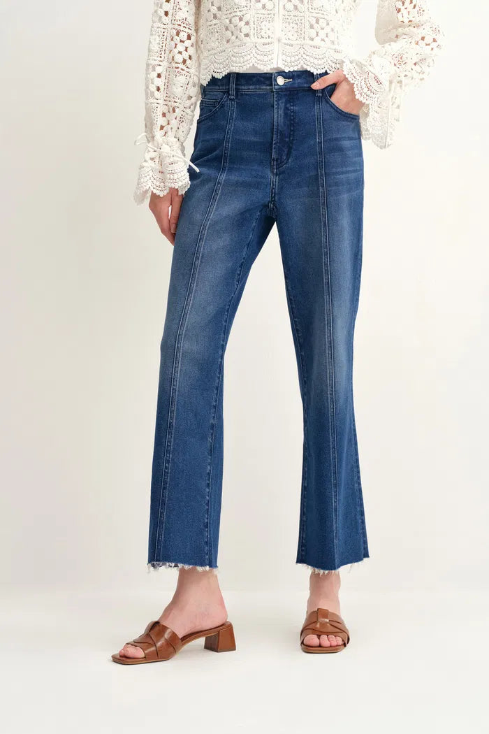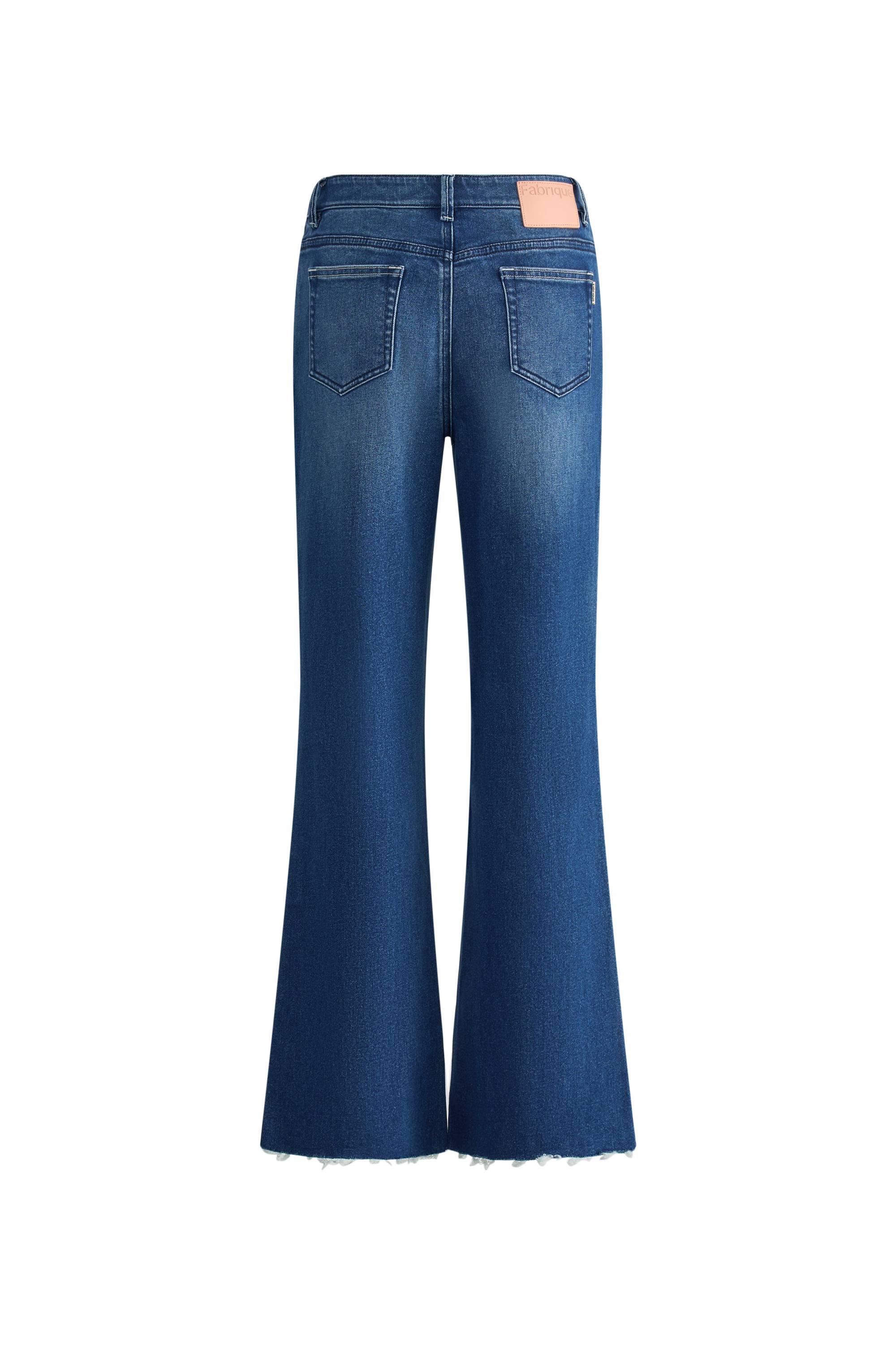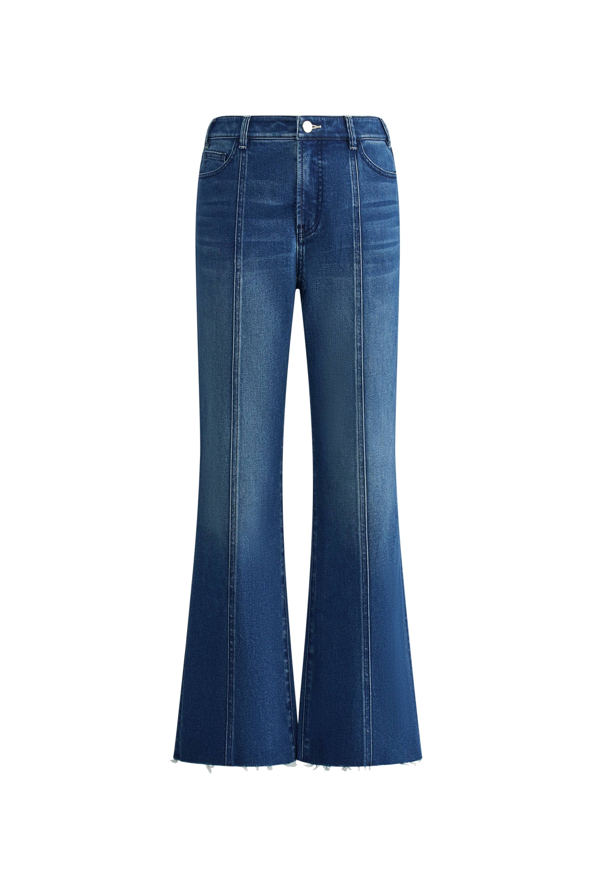 - Fitted through the thighs and gradually flaring out to the leg openings, lengthening your frame