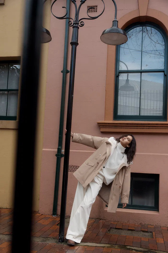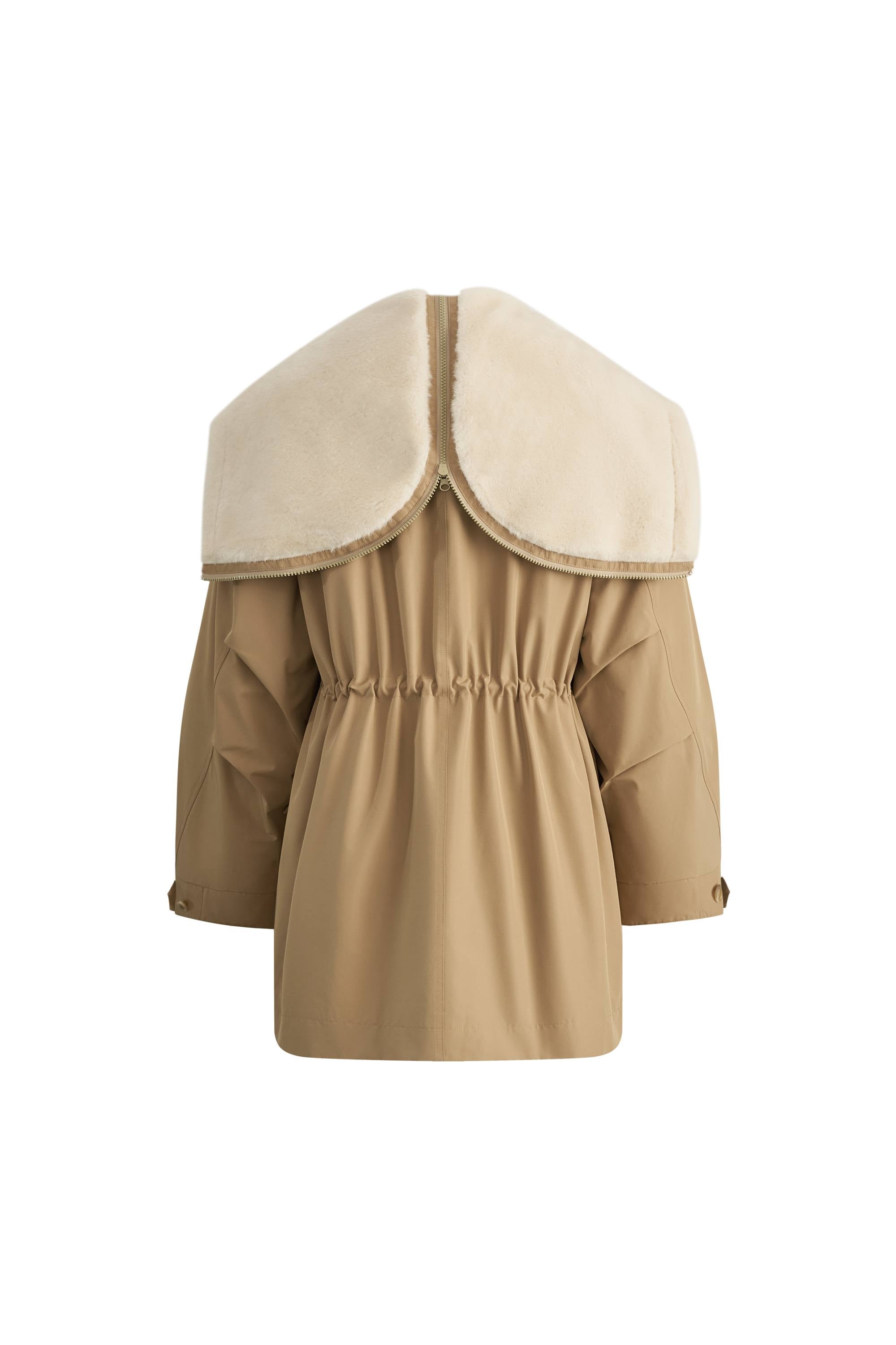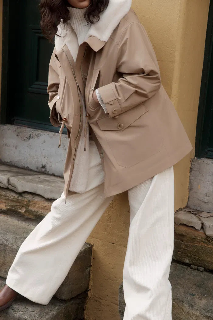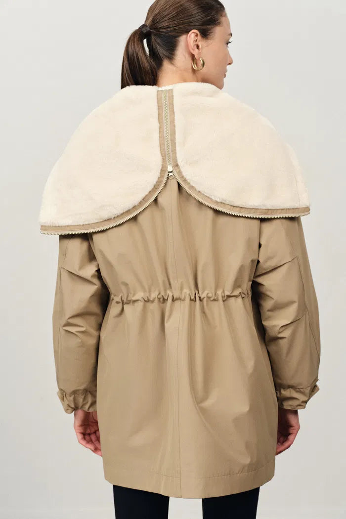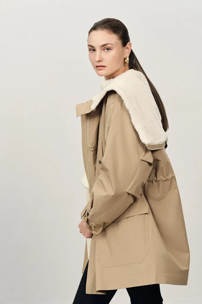 Doris Detachable Quilted Lining Fur Collar Parka in Lightweight Blend
