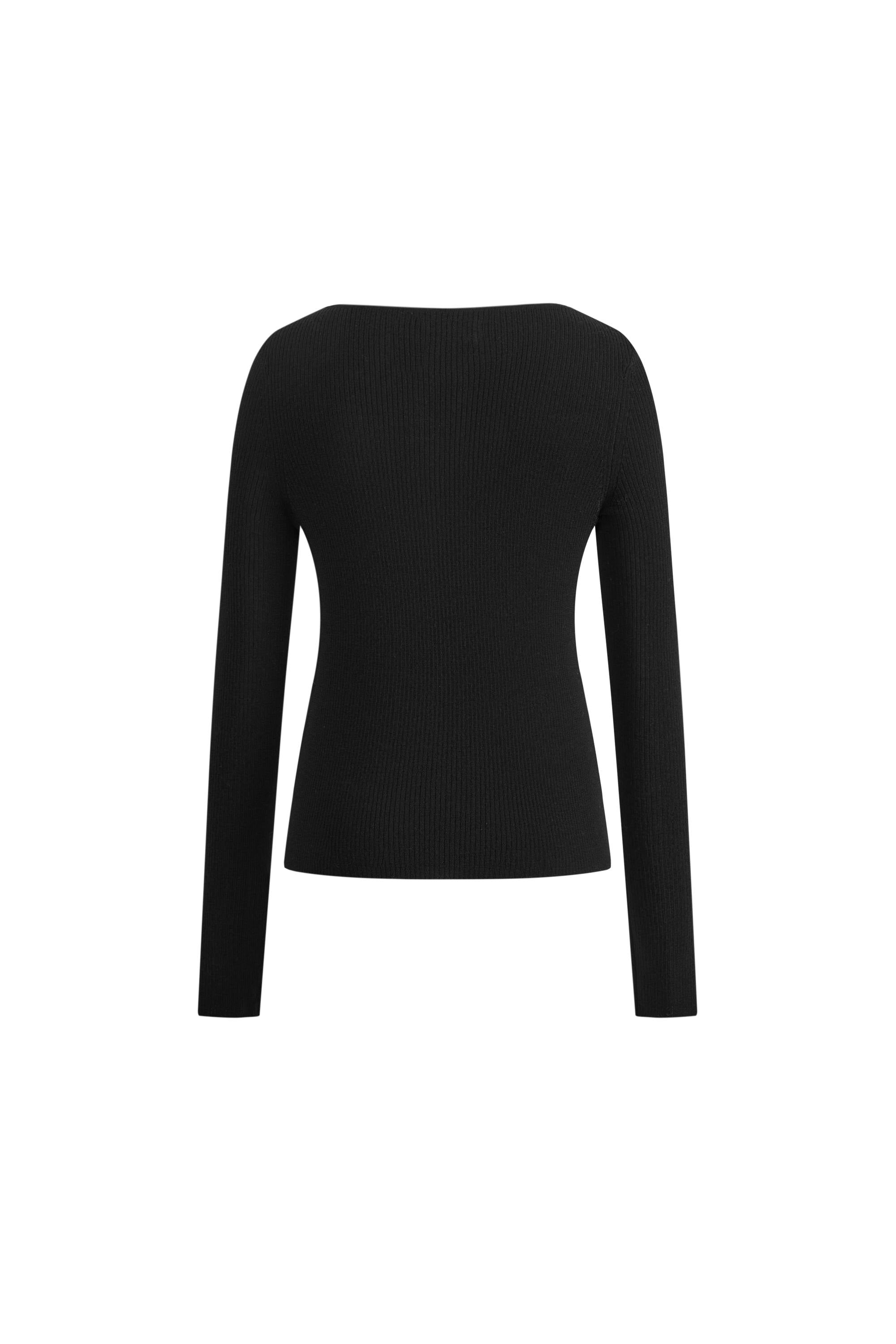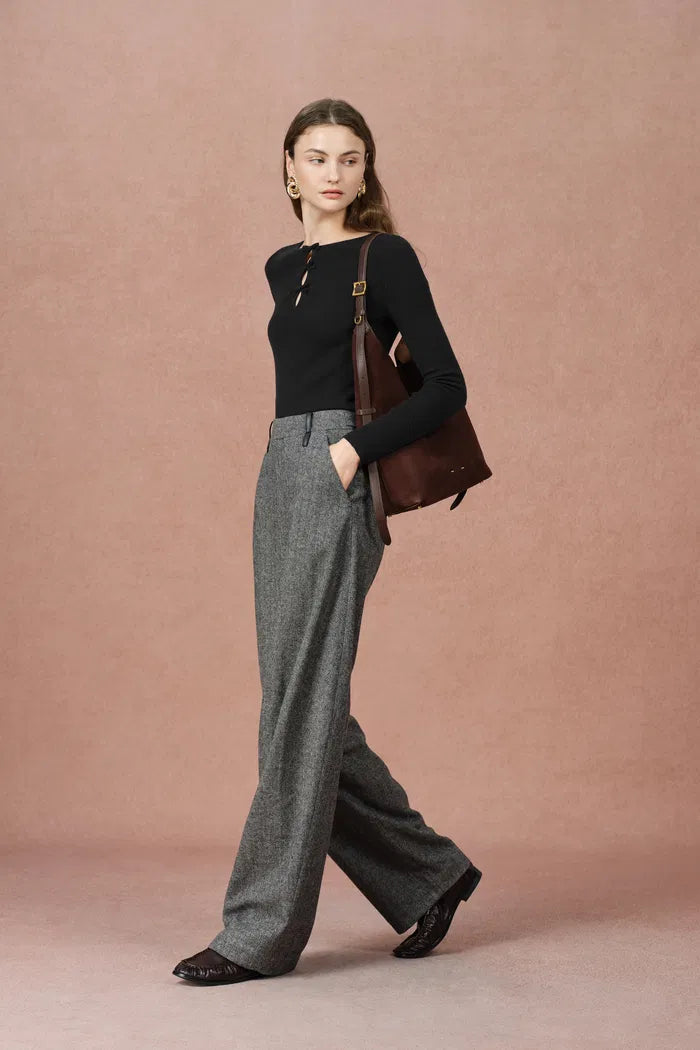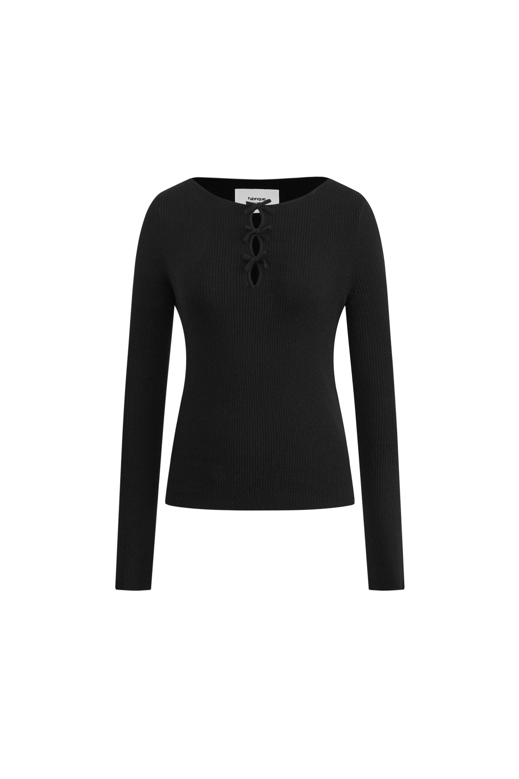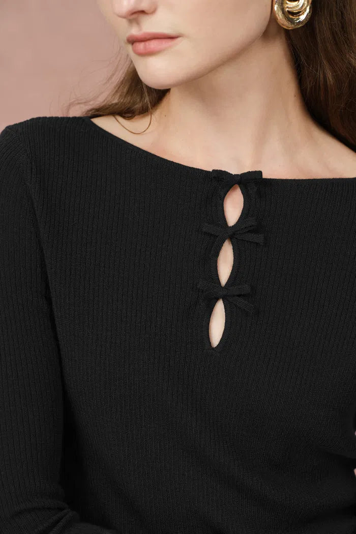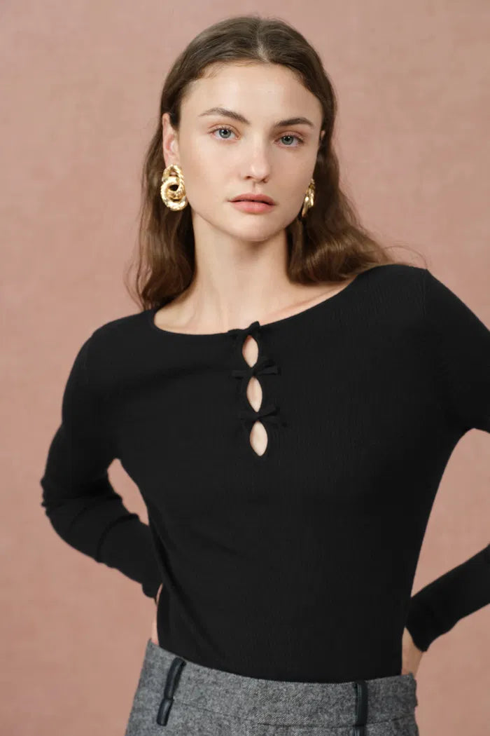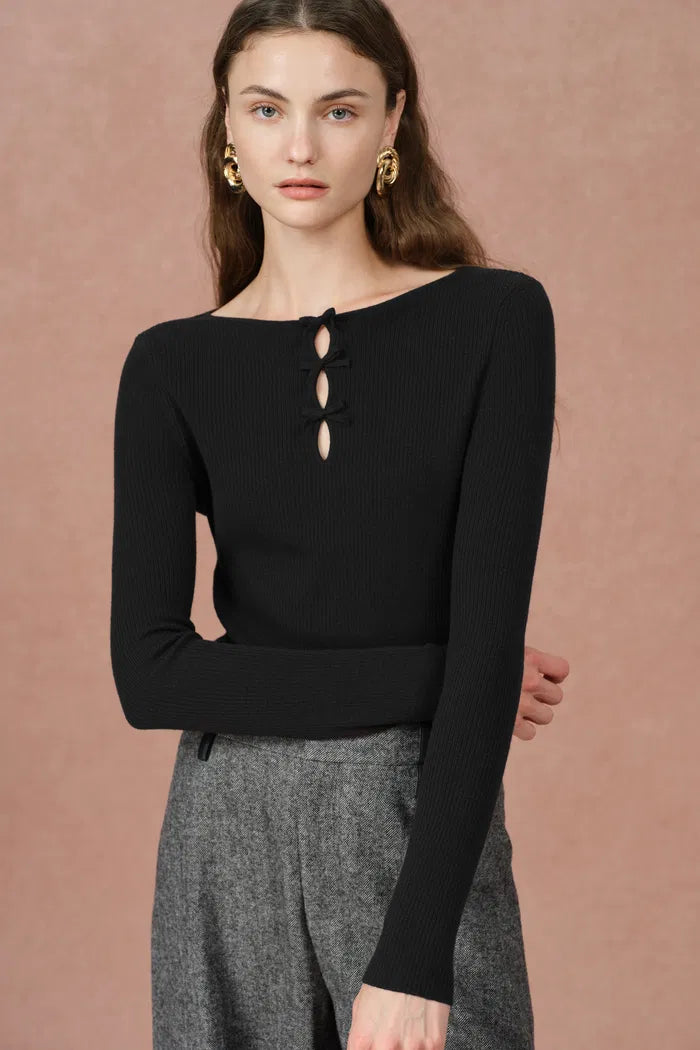 Eden Bow Tie Fitted Top in Merino Wool with Stretch Knit