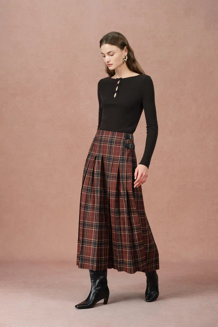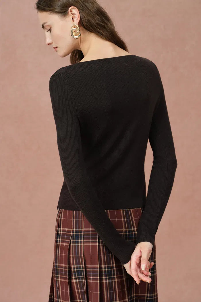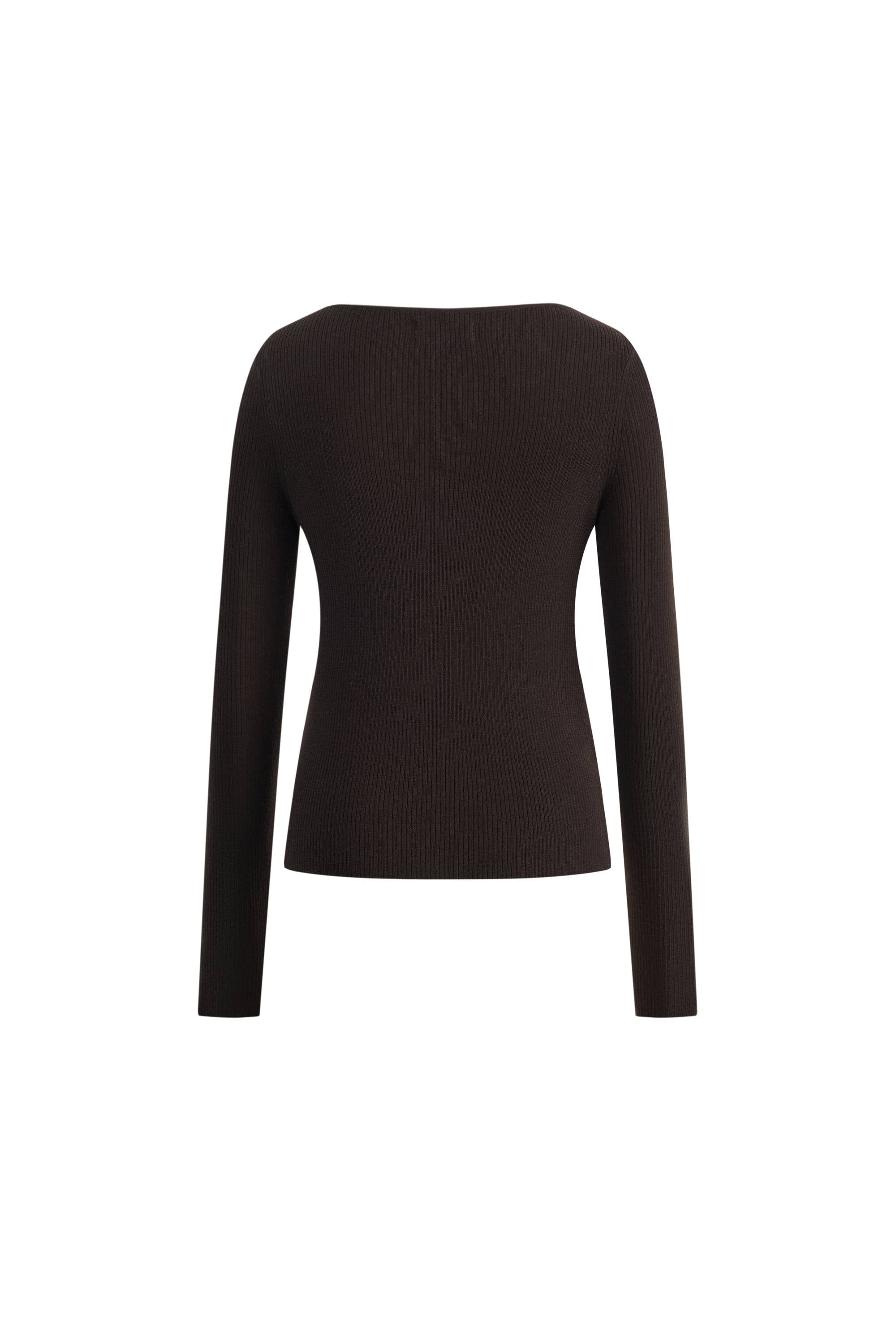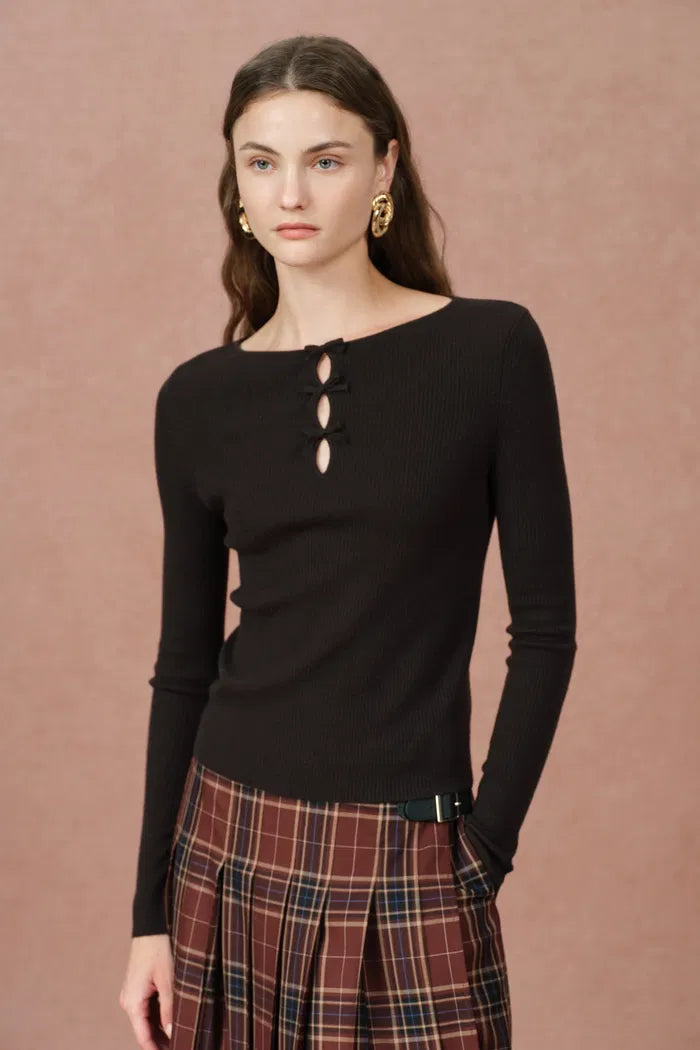 Eden Grey Bow Tie Fitted Top in Merino Wool with Stretch Knit