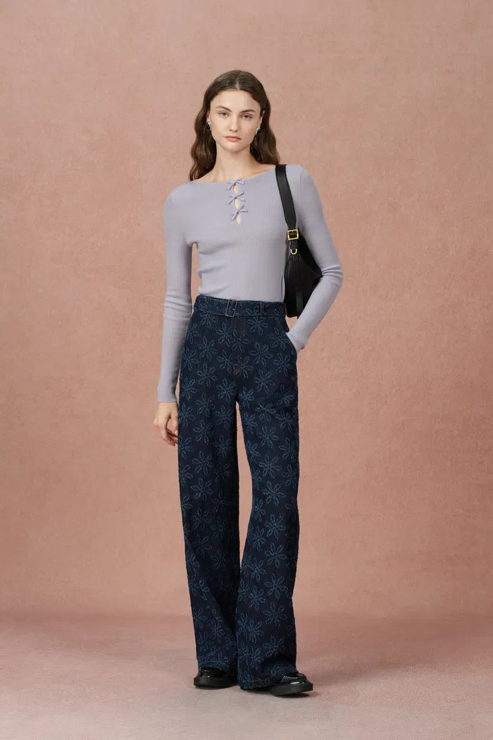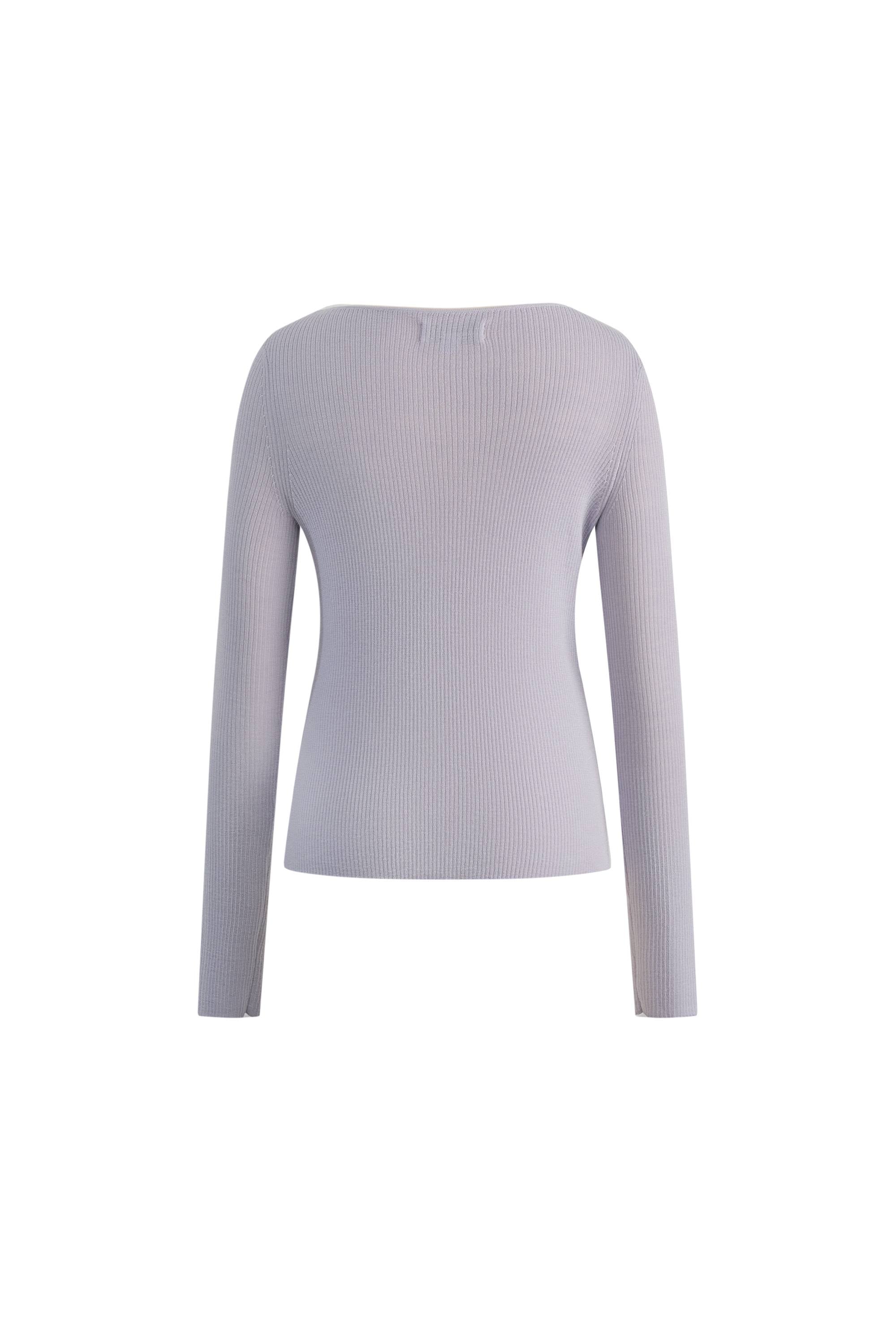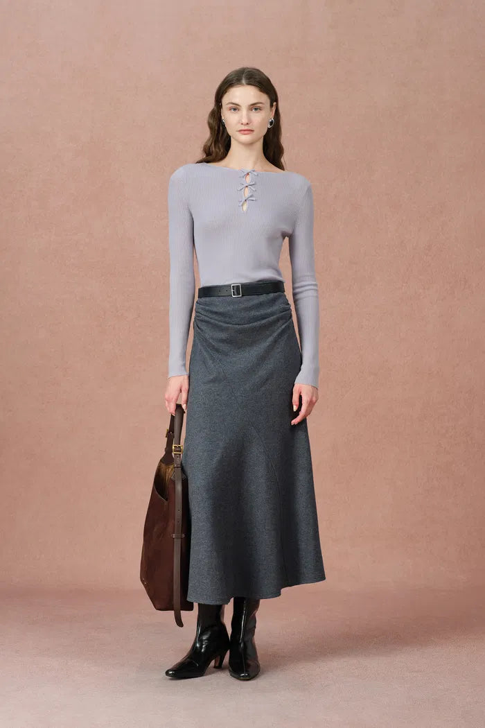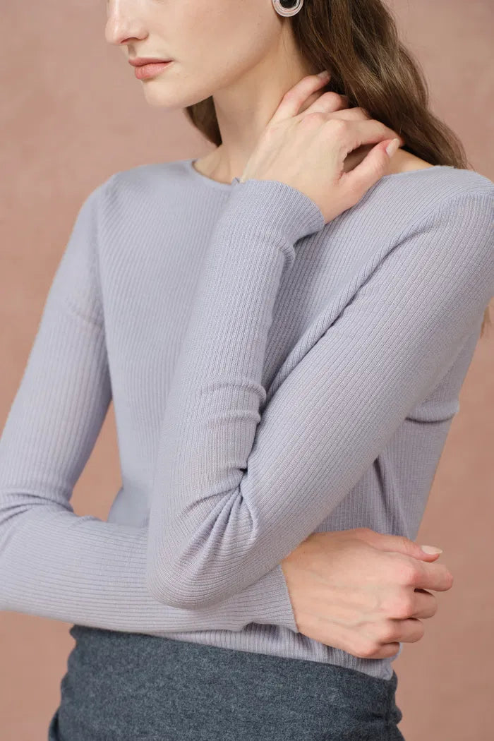 Eden Purple Bow Tie Fitted Top in Merino Wool with Stretch Knit